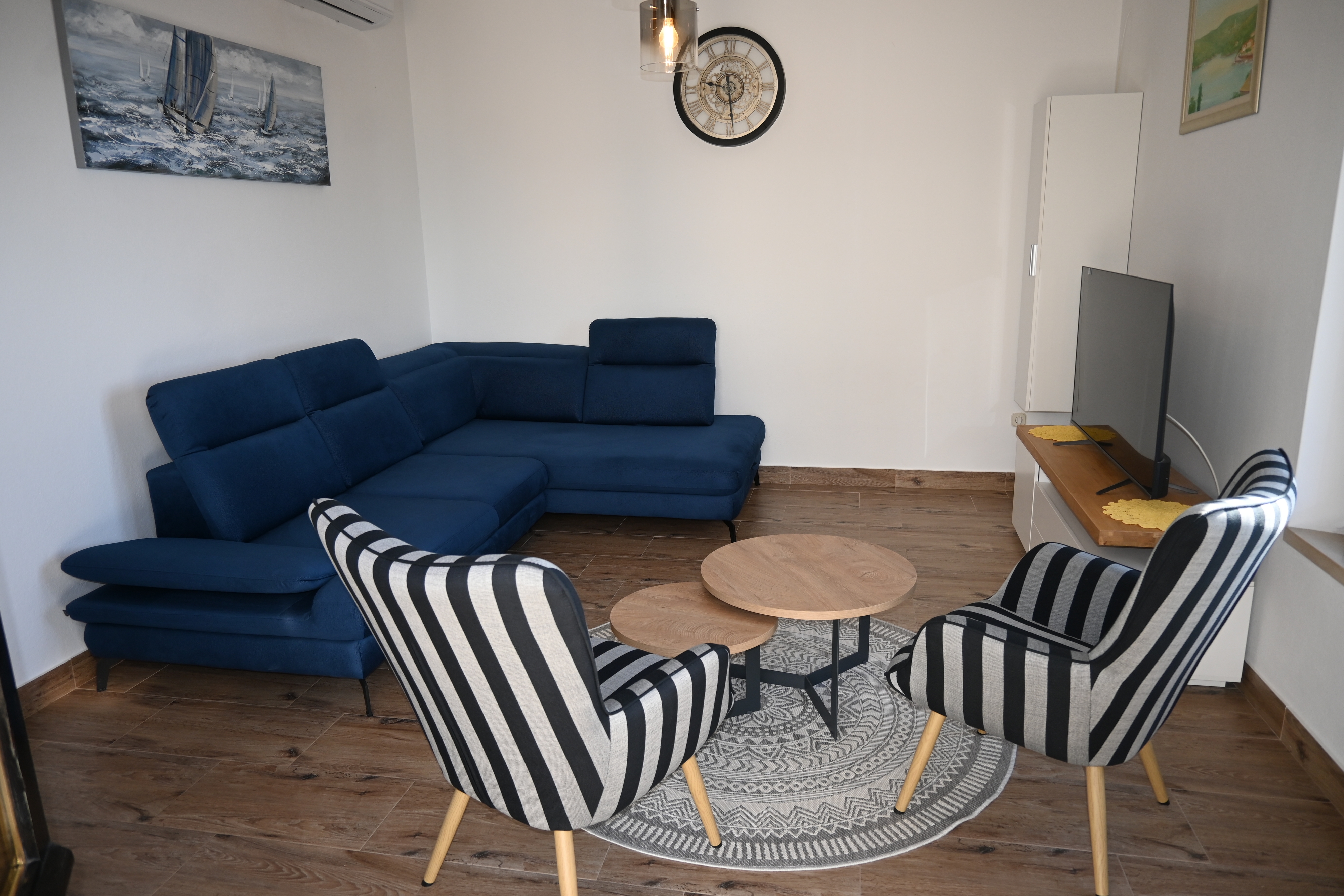 Apartment can accommodate 10 guests. Beds are situated in 4 sleeping rooms, but also in the living room, within 119m2. Guests can use a private terrace to enjoy the warm summer evenings. The apartment offers the sea view. For full enjoyment and relaxation there is a private barbecue for this accommodation guests only. During stay, there is a private pool for relaxation and pleasure. This accommodation unit welcomes pets at an additional charge. Some of the rooms of the accommodation unit are not connected with the rest of the unit. INCLUDED IN THE PRICE: tourist tax, final cleaning, air-conditioning, pool, parking, internet, boat mooring. OBLIGATORY ADDITIONAL COSTS: short stay fee (surcharge depending on a number of booked nights: 30% - 1, 20% - 2, 10% - 3). OPTIONAL ADDITIONAL COSTS: pets (€10.00 per night). The availability of additional services for your chosen dates of stay, as well as their prices (if none are listed) must be checked ahead of time. Any additional services not shown in the price calculation are payable directly to the property owner and only if used by the visitor. Discounts to the base price: free day 14=13 (for reservations of 14 or more days you get one free day for the stay until 31122026).