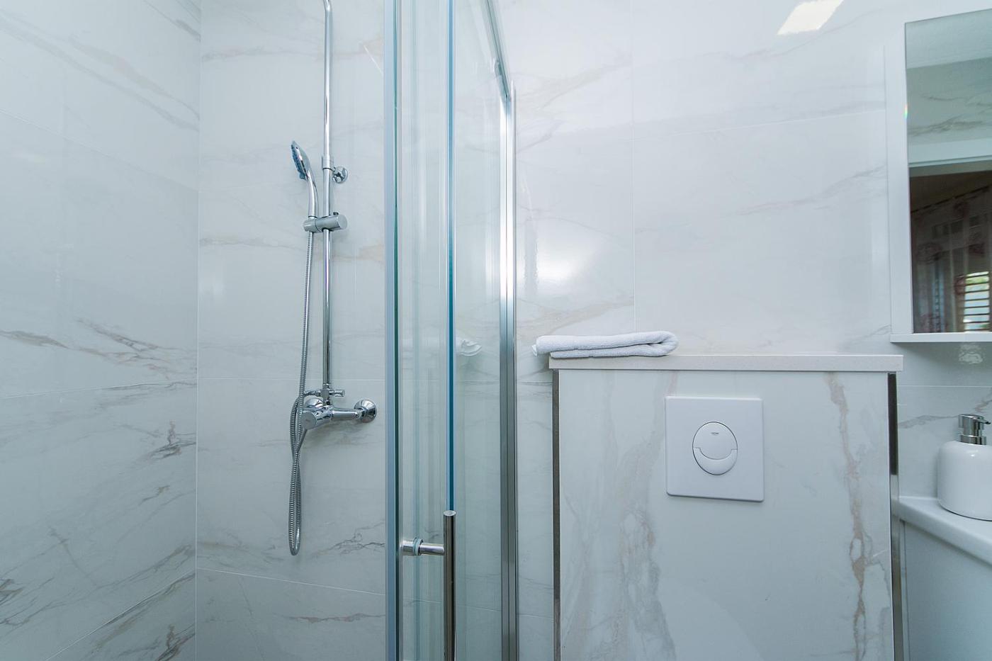 Two-Bedroom Apartment with Balcony. Featuring a private entrance, this air-conditioned apartment comprises 2 bedrooms and 2 bathrooms with a shower. Guests will find a stovetop, a refrigerator, kitchenware and an oven in the kitchen. The apartment also provides guests with a barbecue. Boasting a balcony, this apartment also provides a washing machine, a seating area and a TV with satellite channels. The unit offers 3 beds. ;