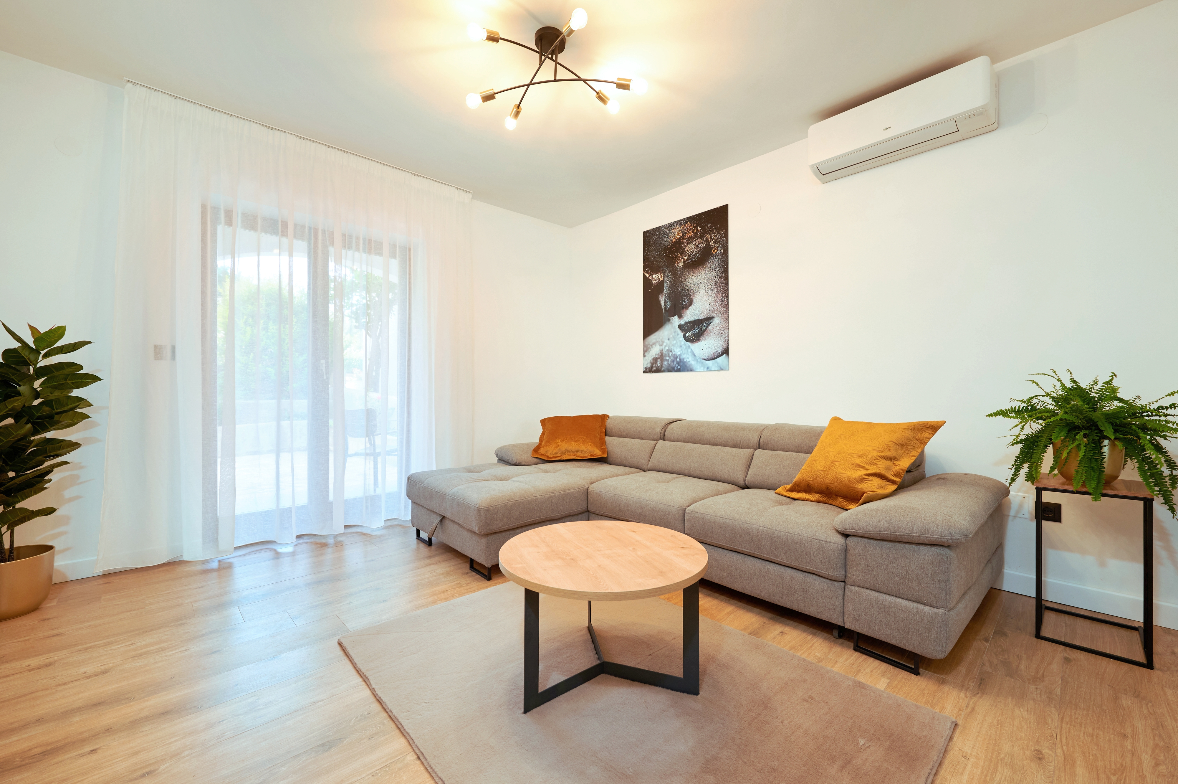 Apartment can accommodate 5 guests. Beds are situated in 2 sleeping rooms, but also in the living room, within 73m2. Guests can use a private terrace to enjoy the warm summer evenings. The apartment offers the sea view. Food can be prepared using barbecue which is shared with other guests too. INCLUDED IN THE PRICE: tourist tax, final cleaning, air-conditioning, parking, internet, baby cot, iron, ironing board, hairdryer, sunchairs. OBLIGATORY ADDITIONAL COSTS: short stay fee (surcharge depending on a number of booked nights: 30% - 1, 20% - 2, 10% - 3). The availability of additional services for your chosen dates of stay, as well as their prices (if none are listed) must be checked ahead of time. Any additional services not shown in the price calculation are payable directly to the property owner and only if used by the visitor.