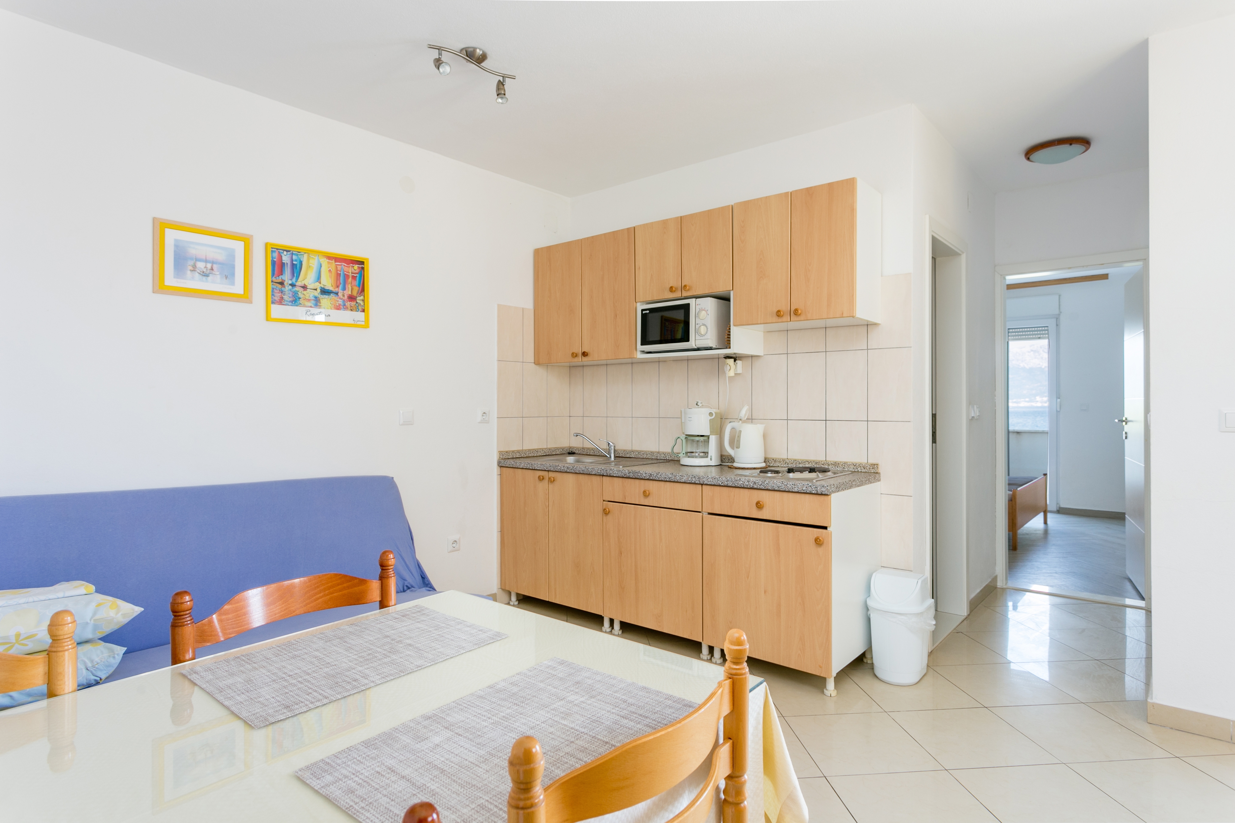 Apartment can accommodate 3 guests. Beds are situated in 1 sleeping rooms, but also in the living room, within 30m2. Guests can use a private balcony to enjoy the warm summer evenings. The apartment offers the sea view. Food can be prepared using barbecue which is shared with other guests too. INCLUDED IN THE PRICE: tourist tax, final cleaning, parking, internet, boat mooring, sunchairs. The availability of additional services for your chosen dates of stay, as well as their prices (if none are listed) must be checked ahead of time. Any additional services not shown in the price calculation are payable directly to the property owner and only if used by the visitor.