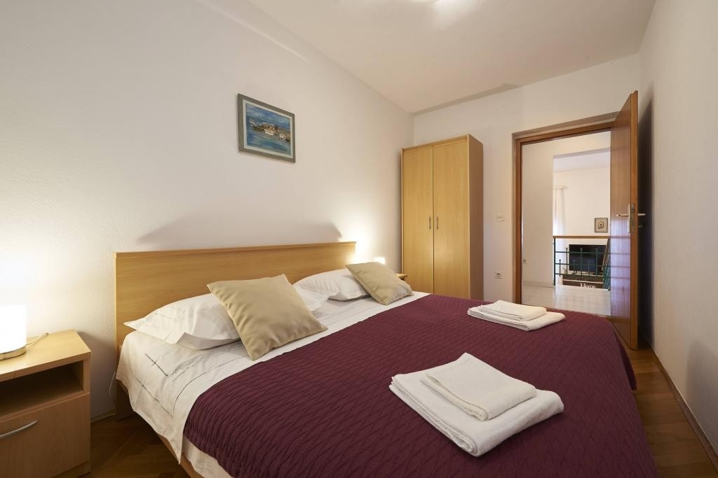 The house 25145 is located in Slatine, Čiovo - Central Dalmatia. The nearest beach is pebble. Other guests may be found in this houses other apartments during your stay. During your holiday, your hosts will also be present in the house. The house owner is under no obligation to accept additional persons and pets that were not stated in the reservation request and it is necessary to report them in advance.AMENITIES Courtyard (50m2, Sitting area), Parking lot (Number of parking spaces: 4, Distance from the house: In the courtyard), Barbecue: shared, WiFi Internet, Laundry service, Hairdryer, Iron, Ironing board, Sunchairs, Baby cot LOCATION AND ACCESS The facility is not located near the road Main road between the property and the beach Car access possible: Yes The facility is situated in relatively quiet surroundings DISTANCES Beach: 100 m Center: 5.5 km Shop: 650 m Urgent medical care: 6.5 km Pharmacy: 700 m Exchange office: 700 m ATMBank machine: 650 m Tourist info: 2 km Airport: 9 km Ferry port: 7 km Bus station: 6 km Gas station: 5 km Farmers market: 6 km