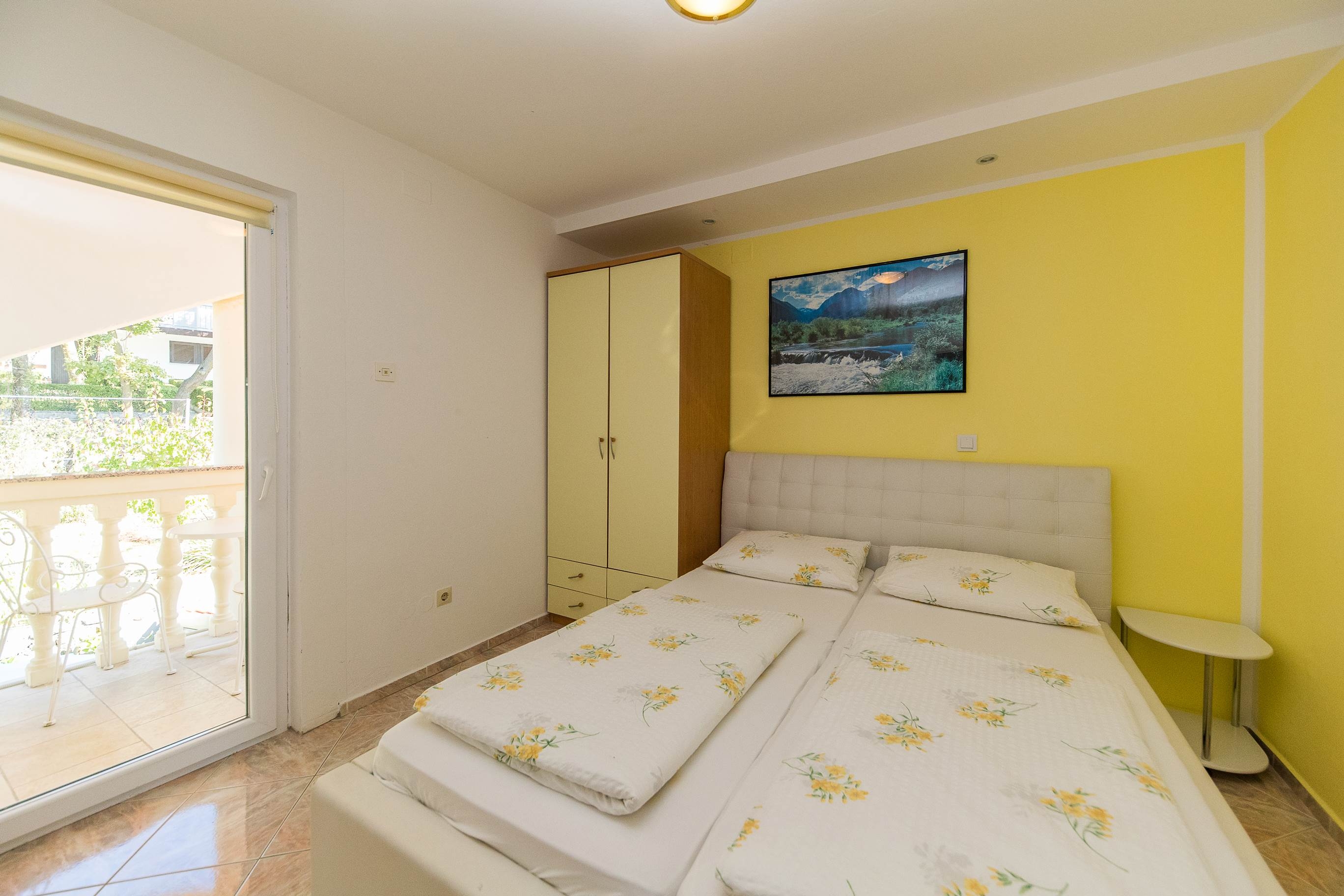 Apartment can accommodate 6 guests. Beds are situated in 3 sleeping rooms, within 69m2. Guests can use a private terrace to enjoy the warm summer evenings. The apartment offers the sea view. Food can be prepared using barbecue which is shared with other guests too. Shared pool is on disposal during stay. INCLUDED IN THE PRICE: tourist tax, final cleaning, air-conditioning, central heating, pool, parking, internet, iron, ironing board, hairdryer. OBLIGATORY ADDITIONAL COSTS: short stay fee (surcharge depending on a number of booked nights: 30% - 1, 20% - 2, 10% - 3). OPTIONAL ADDITIONAL COSTS: laundry (€5.00 washing). The availability of additional services for your chosen dates of stay, as well as their prices (if none are listed) must be checked ahead of time. Any additional services not shown in the price calculation are payable directly to the property owner and only if used by the visitor.