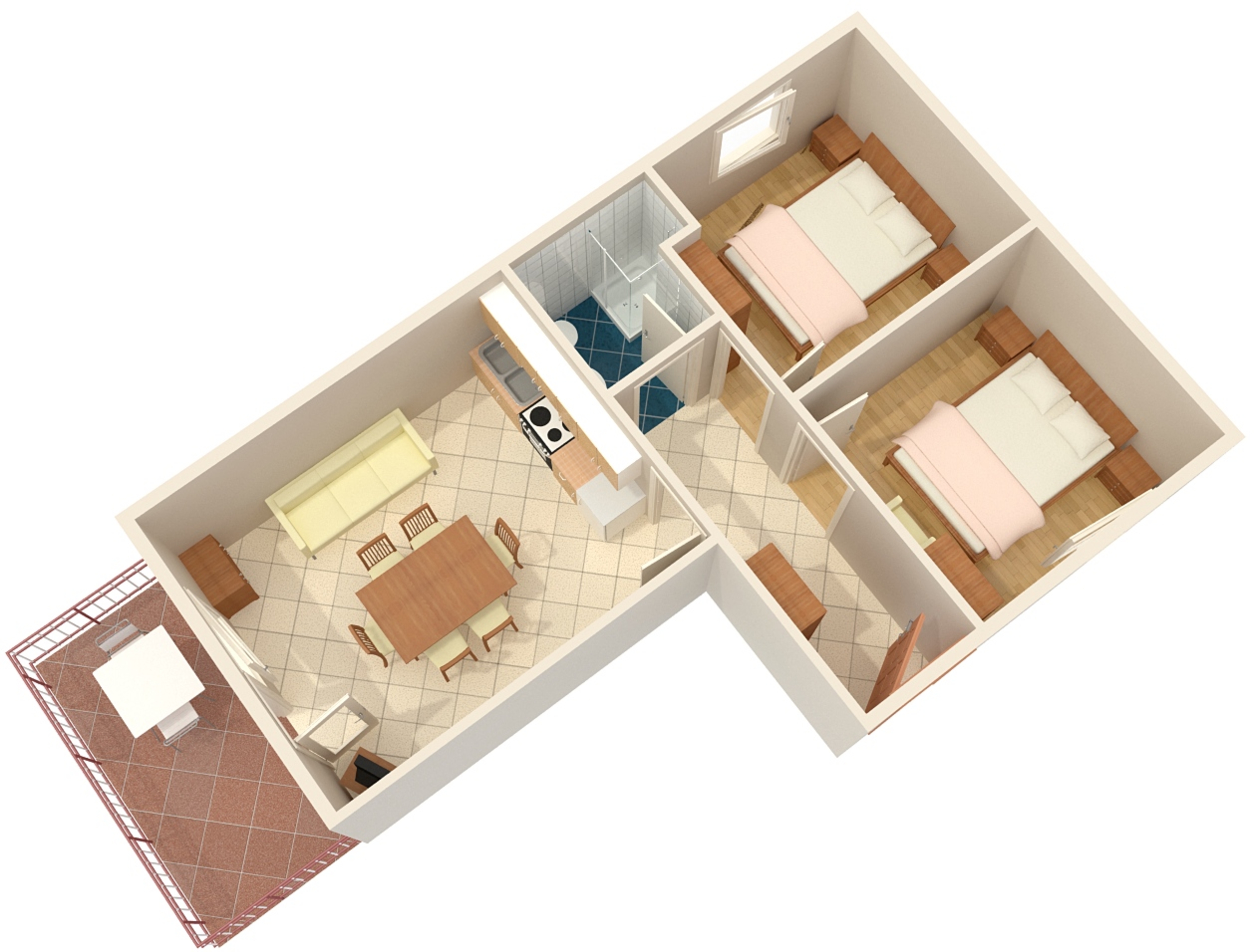 Apartment can accommodate 5 guests. Beds are situated in 2 sleeping rooms, but also in the dining room, within 48m2. Guests can use a private balcony to enjoy the warm summer evenings. The apartment offers the sea view. Food can be prepared using barbecue which is shared with other guests too. This accommodation unit welcomes pets at an additional charge. INCLUDED IN THE PRICE: tourist tax, final cleaning, parking, internet. OBLIGATORY ADDITIONAL COSTS: short stay fee (surcharge depending on a number of booked nights: 30% - 1, 20% - 2, 10% - 3). OPTIONAL ADDITIONAL COSTS: air-conditioning (€6.00 per night), pets (€6.00 per night). The availability of additional services for your chosen dates of stay, as well as their prices (if none are listed) must be checked ahead of time. Any additional services not shown in the price calculation are payable directly to the property owner and only if used by the visitor.