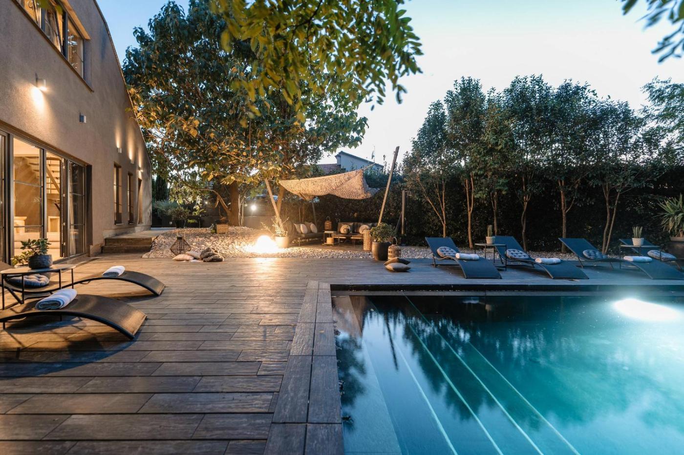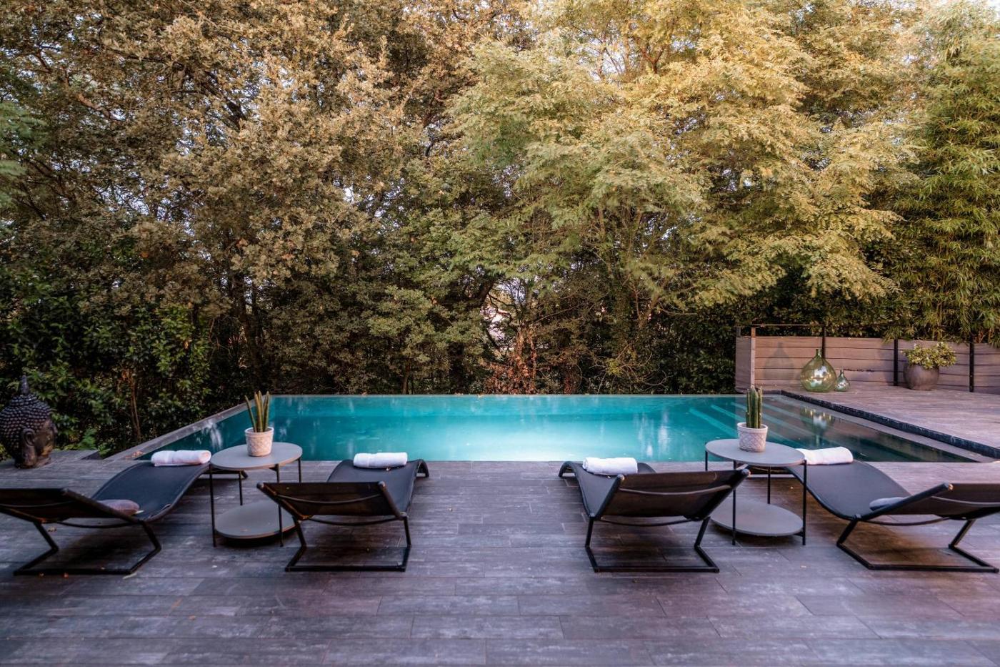 Guests can enjoy the outdoor swimming pool and garden at the villa.