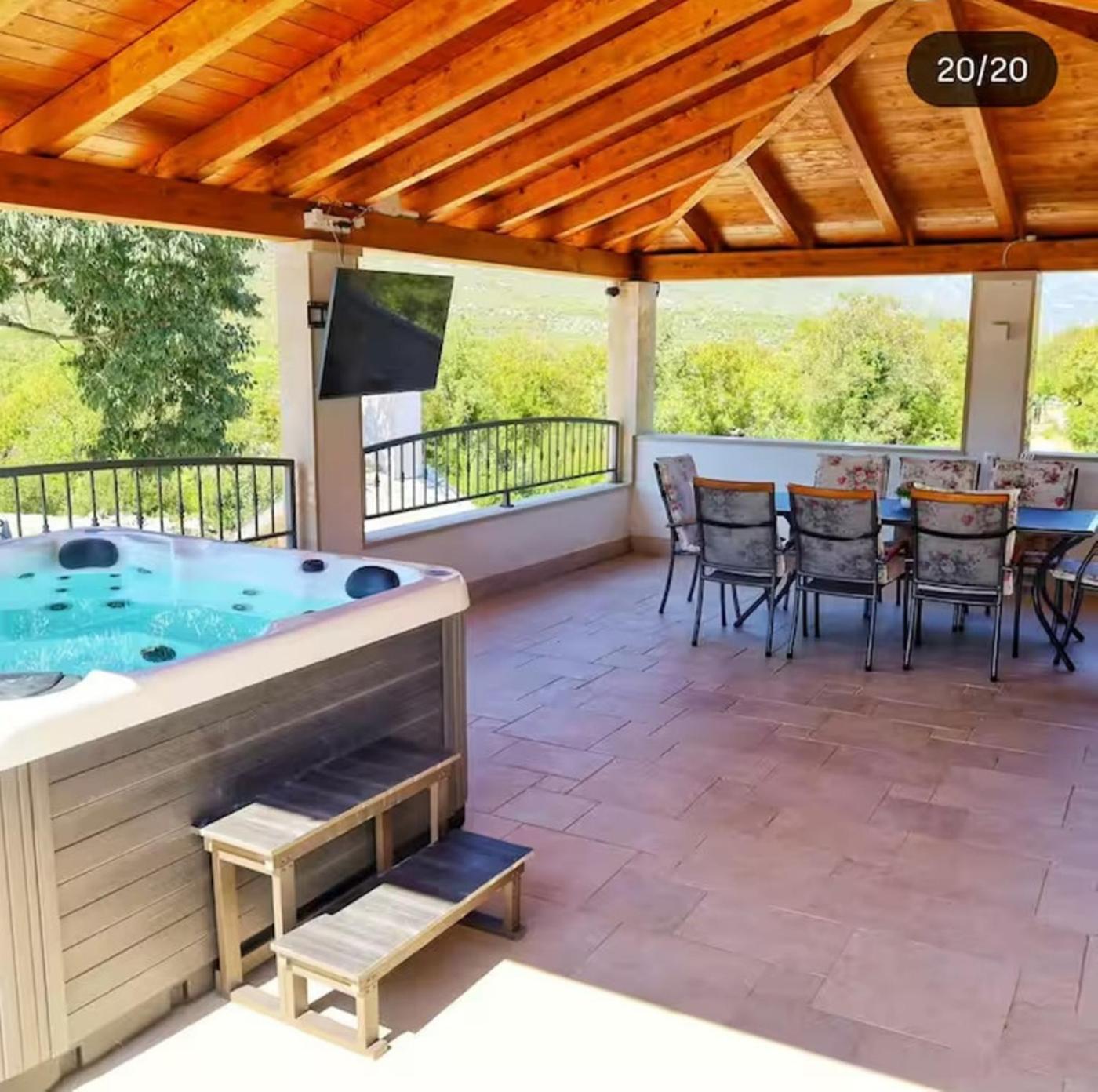 Featuring air-conditioned accommodation with a balcony, Dvori Stipanovi with heated pool and jacuzzi is located in Donje Rašćane. This holiday home has a private pool, a garden, barbecue facilities, free WiFi and free private parking. The accommodation provides airport transfers, while a bicycle rental service is also available.
