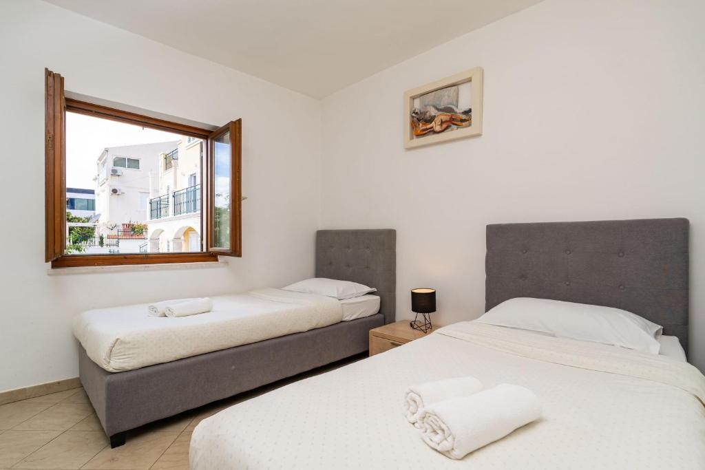 Apartment can accommodate 5 guests. Beds are situated in 2 sleeping rooms, but also in the living room, within 69m2. Guests can use a private terrace to enjoy the warm summer evenings. The apartment offers the sea view. INCLUDED IN THE PRICE: tourist tax, final cleaning, air-conditioning, internet, baby cot, iron, ironing board, hairdryer, sunchairs. The availability of additional services for your chosen dates of stay, as well as their prices (if none are listed) must be checked ahead of time. Any additional services not shown in the price calculation are payable directly to the property owner and only if used by the visitor.