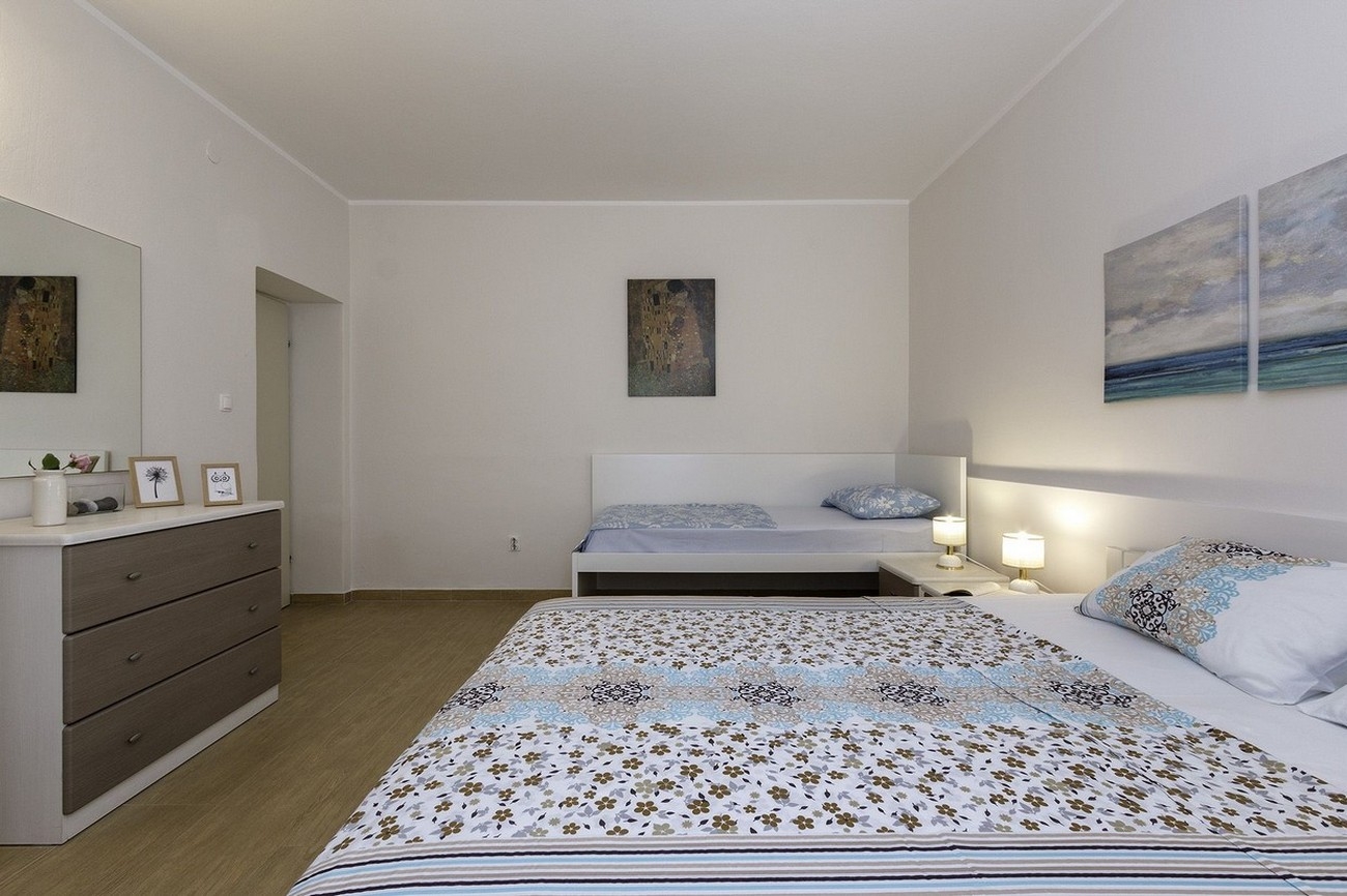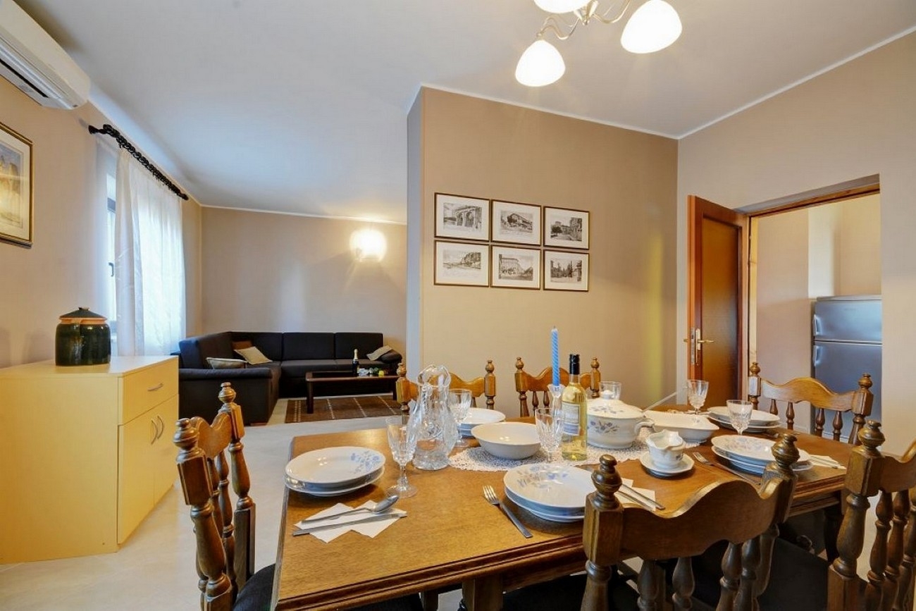 Apartment can accommodate 8 guests. Beds are situated in 3 sleeping rooms, within 95m2. Guests can use a private terrace to enjoy the warm summer evenings. For full enjoyment and relaxation there is a private barbecue for this accommodation guests only. INCLUDED IN THE PRICE: tourist tax, final cleaning, air-conditioning, parking, internet, baby cot, iron, ironing board, hairdryer. The availability of additional services for your chosen dates of stay, as well as their prices (if none are listed) must be checked ahead of time. Any additional services not shown in the price calculation are payable directly to the property owner and only if used by the visitor.