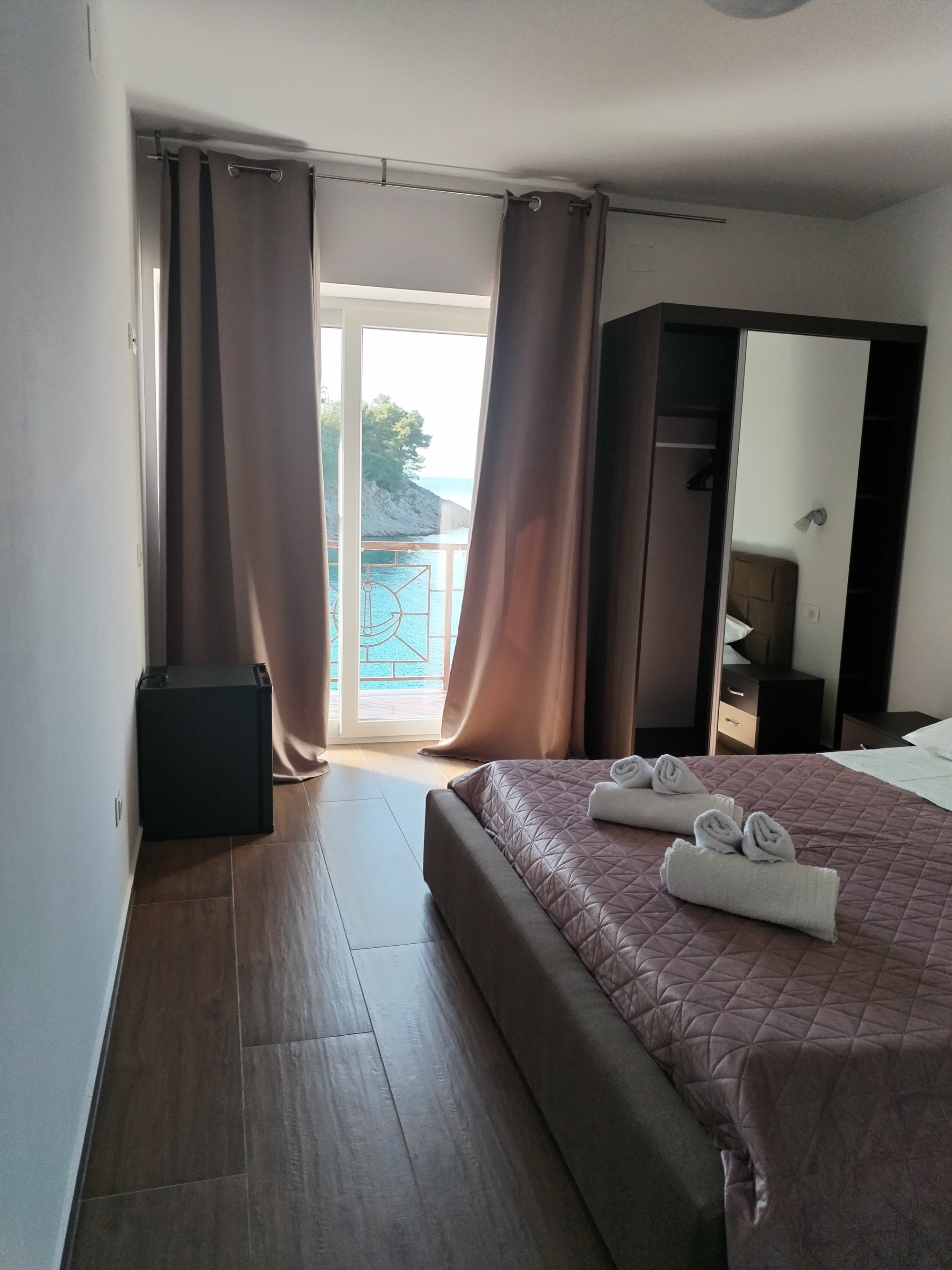 Room can accommodate 2 guests. Beds are situated in 1 sleeping rooms, within 15m2. Guests can use a private balcony to enjoy the warm summer evenings. The room offers the sea view. This accommodation unit welcomes pets at no additional costs. Reserved accommodation unit is a room with its own bathroom and there is no usage of kitchen. INCLUDED IN THE PRICE: tourist tax, final cleaning, air-conditioning, parking, internet, boat mooring, pets, baby cot, iron, ironing board, sunshade, sunchairs. OBLIGATORY ADDITIONAL COSTS: short stay fee (surcharge depending on a number of booked nights: 30% - 1, 20% - 2, 10% - 3). OPTIONAL ADDITIONAL COSTS: breakfast (€8.00, a 50% discount for children aged 4 to 12 years, Children up to age 4 free of charge), half-board (€24.00, a 50% discount for children aged 4 to 12 years, Children up to age 4 free of charge), full board (€40.00, a 50% discount for children aged 4 to 12 years, Children up to age 4 free of charge). The availability of additional services for your chosen dates of stay, as well as their prices (if none are listed) must be checked ahead of time. Any additional services not shown in the price calculation are payable directly to the property owner and only if used by the visitor.