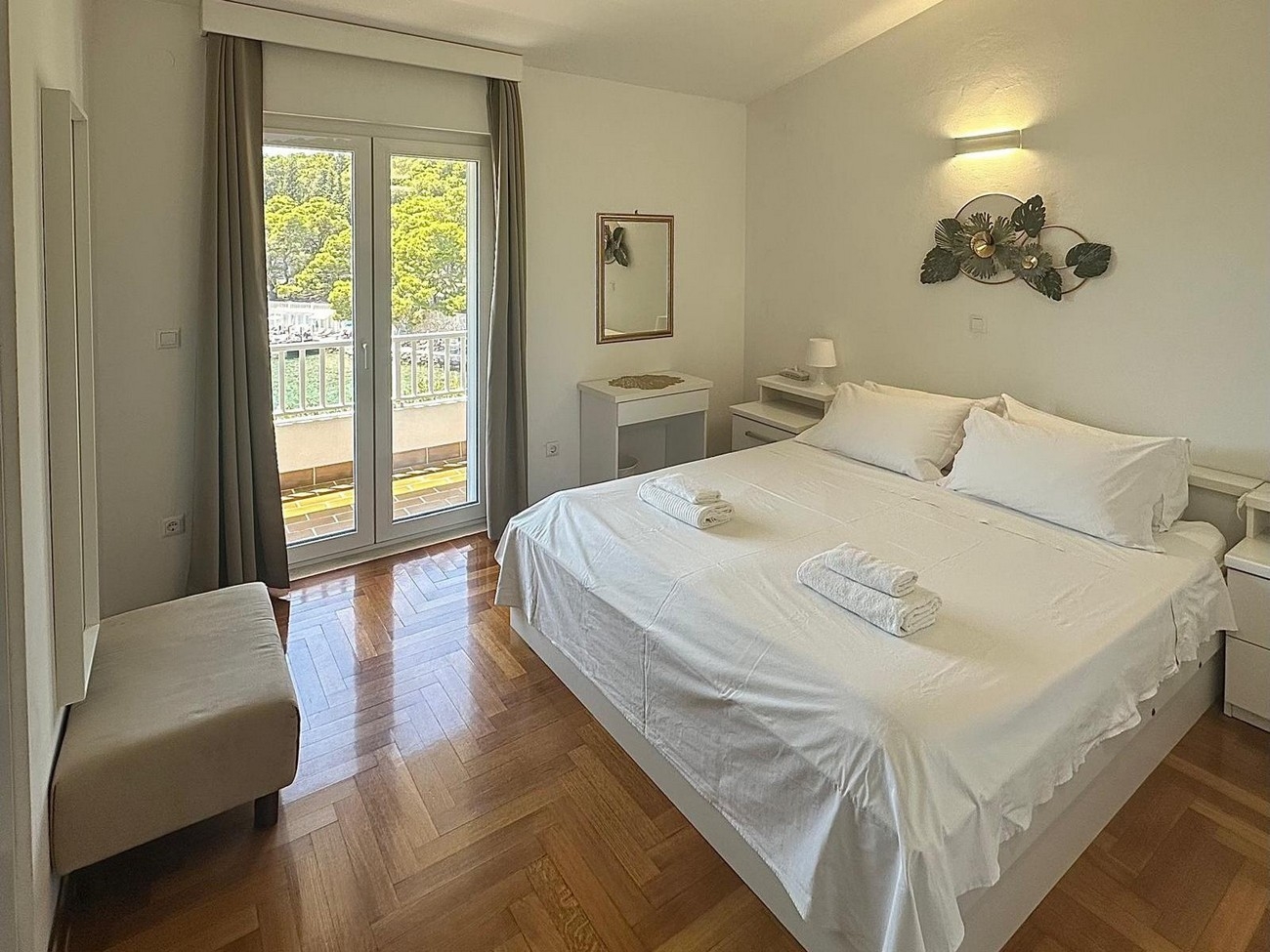 Apartment can accommodate 5 guests. Beds are situated in 2 sleeping rooms, but also in the living room, within 57m2. Guests can use a private terrace to enjoy the warm summer evenings. The apartment offers the sea view. Food can be prepared using barbecue which is shared with other guests too. INCLUDED IN THE PRICE: tourist tax, final cleaning, air-conditioning, parking, internet, baby cot, iron, ironing board, hairdryer, portable barbecue. OPTIONAL ADDITIONAL COSTS: laundry (€5.00 washing), additional bed (€10.00 per night). The availability of additional services for your chosen dates of stay, as well as their prices (if none are listed) must be checked ahead of time. Any additional services not shown in the price calculation are payable directly to the property owner and only if used by the visitor.