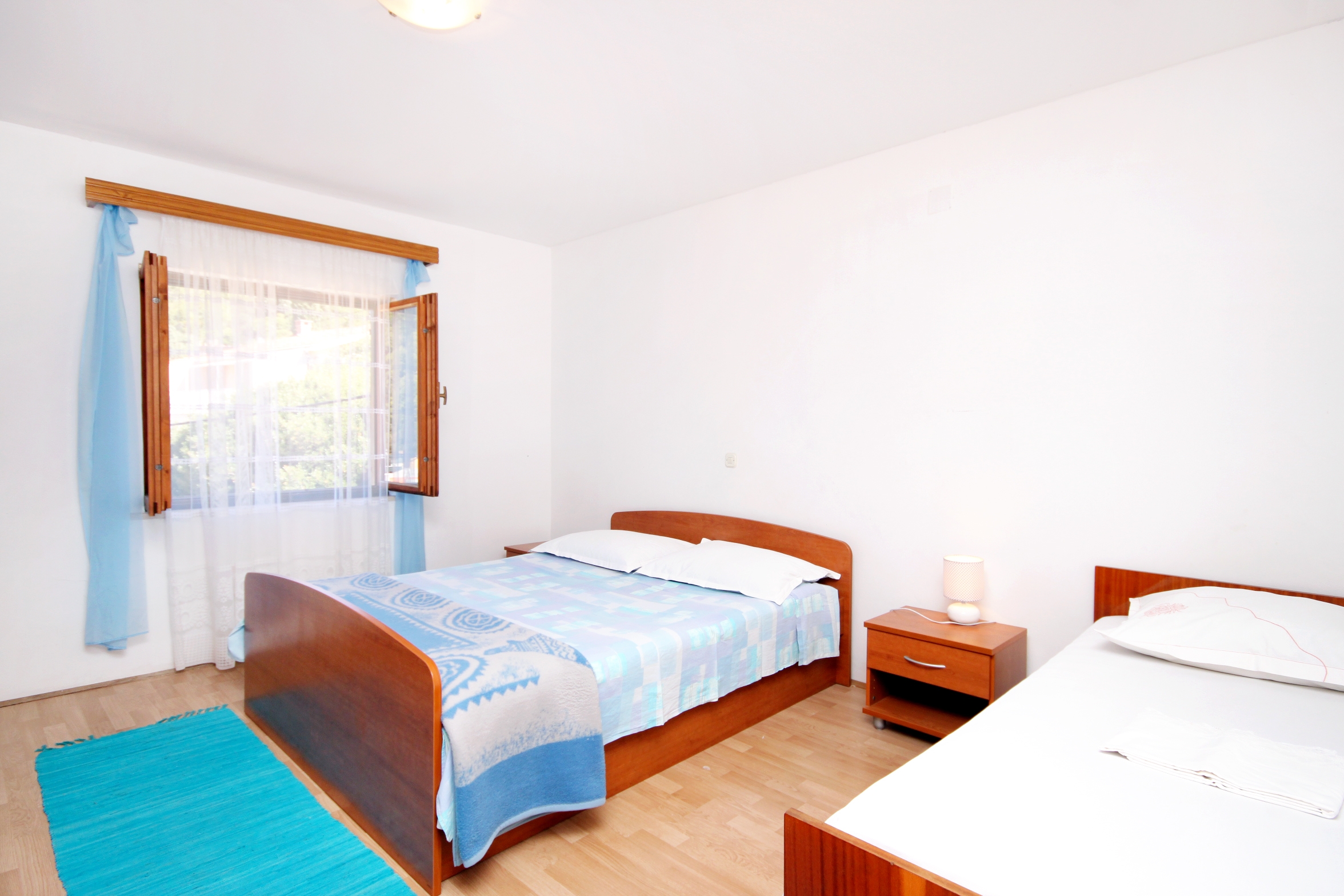 Apartment can accommodate 7 guests. Beds are situated in 3 sleeping rooms, within 73m2. Guests can use a private terrace to enjoy the warm summer evenings. The apartment offers the sea view. Food can be prepared using barbecue which is shared with other guests too. INCLUDED IN THE PRICE: tourist tax, final cleaning, air-conditioning, parking, boat mooring, baby cot, iron, ironing board, hairdryer, portable barbecue. OBLIGATORY ADDITIONAL COSTS: short stay fee (surcharge depending on a number of booked nights: 30% - 1, 20% - 2, 10% - 3). OPTIONAL ADDITIONAL COSTS: additional bed (€15.00 per night). The availability of additional services for your chosen dates of stay, as well as their prices (if none are listed) must be checked ahead of time. Any additional services not shown in the price calculation are payable directly to the property owner and only if used by the visitor.