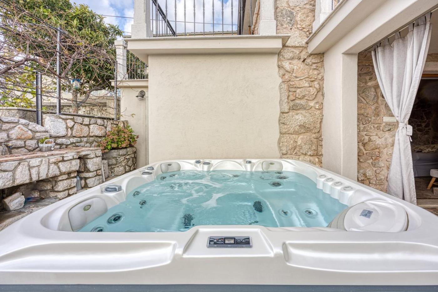 Villa with Private Pool. Guests will have a special experience as this villa offers a private pool, a hot tub and a fireplace. This air-conditioned villa includes 1 living room, 3 separate bedrooms and 2 bathrooms with a shower. Guests will find a stovetop, a refrigerator, a dishwasher and kitchenware in the well-fitted kitchen. The villa also features a barbecue. The villa has a washing machine, a tea and coffee maker, a dining area as well as a terrace with sea views. The unit has 4 beds.