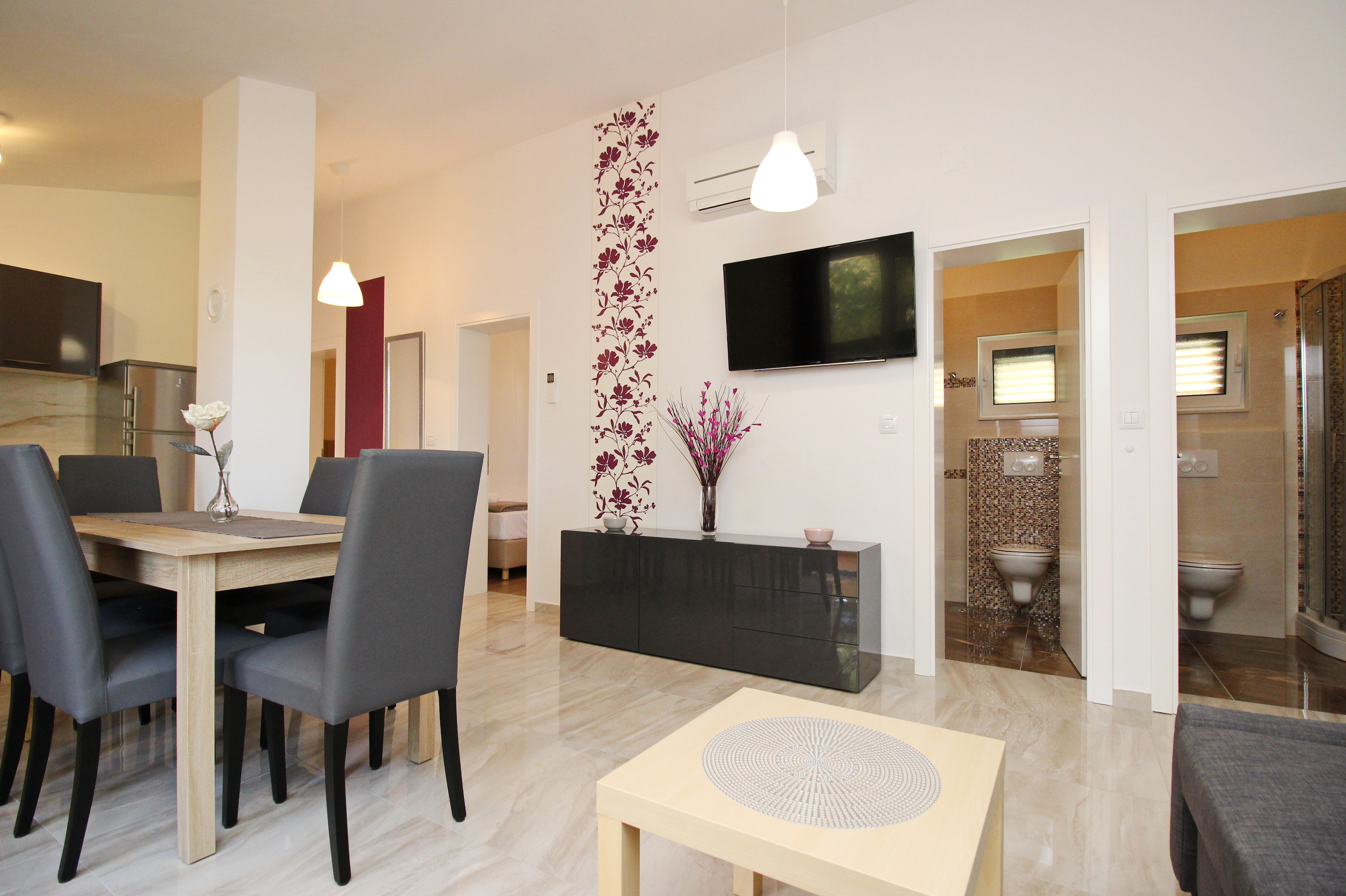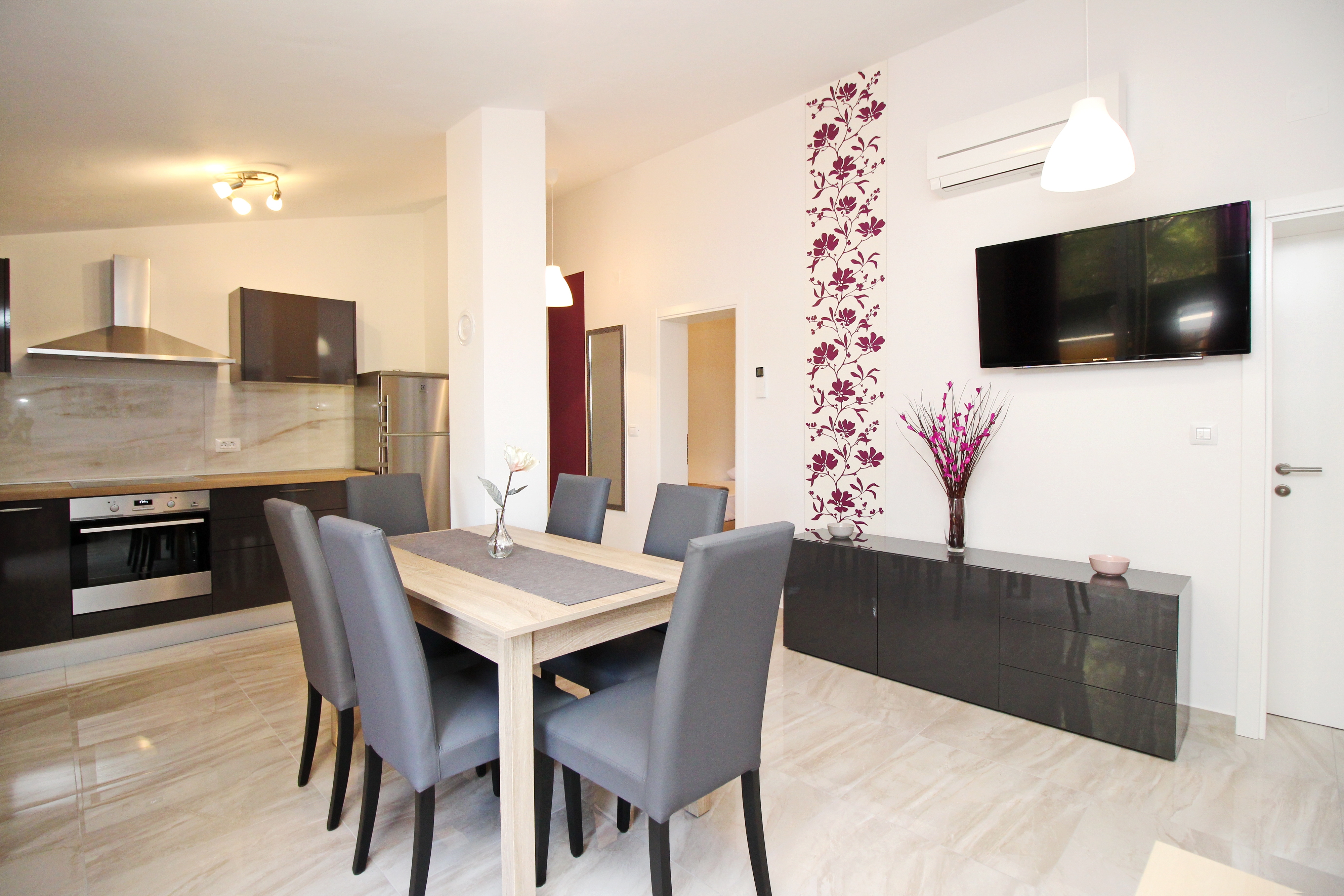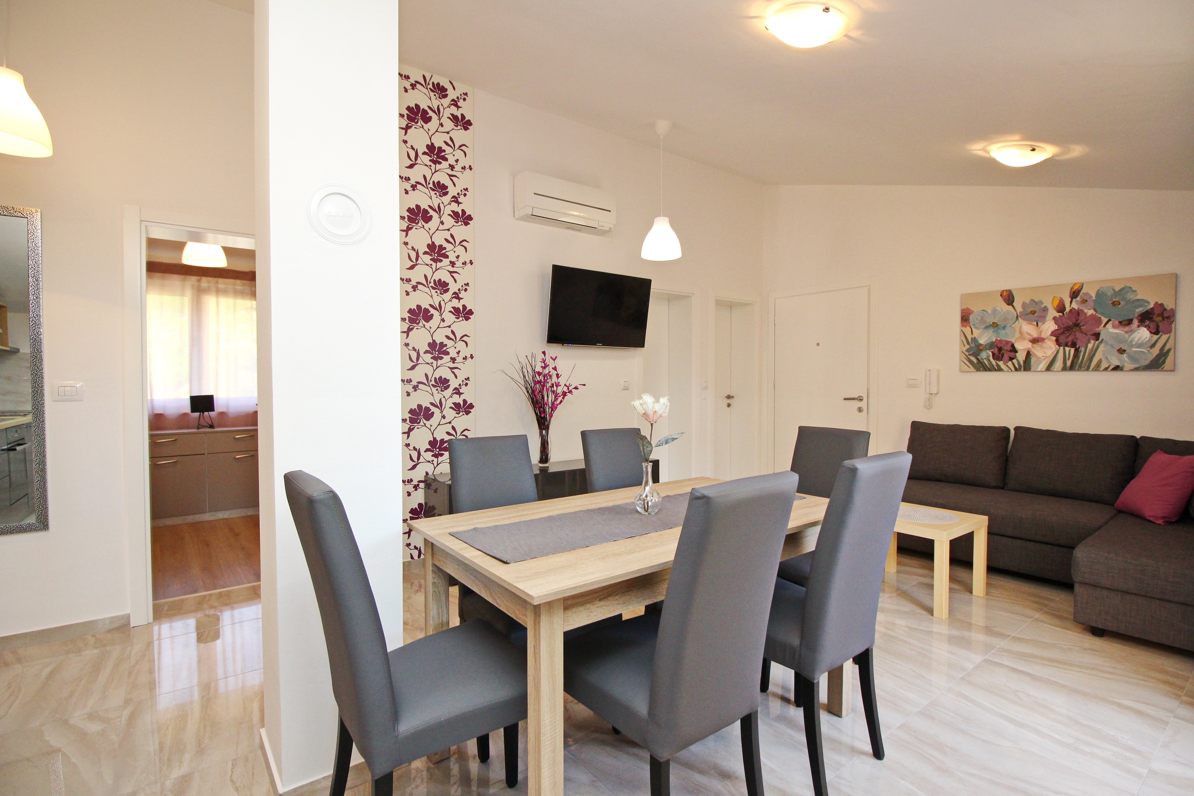 Apartment can accommodate 6 guests. Beds are situated in 3 sleeping rooms, within 70m2. Guests can use a private balcony to enjoy the warm summer evenings. Food can be prepared using barbecue which is shared with other guests too. INCLUDED IN THE PRICE: tourist tax, final cleaning, air-conditioning, parking, internet, hairdryer. OBLIGATORY ADDITIONAL COSTS: short stay fee (surcharge depending on a number of booked nights: 30% - 1, 20% - 2, 10% - 3). The availability of additional services for your chosen dates of stay, as well as their prices (if none are listed) must be checked ahead of time. Any additional services not shown in the price calculation are payable directly to the property owner and only if used by the visitor.