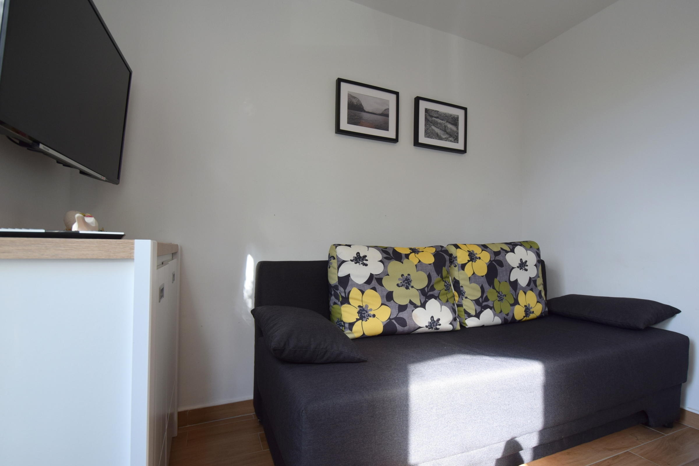 Apartment can accommodate 4 guests. Beds are situated in 1 sleeping rooms, but also in the living room, within 25m2. Guests can use a private terrace to enjoy the warm summer evenings. The apartment offers the sea view. Food can be prepared using barbecue which is shared with other guests too. This accommodation unit welcomes pets at an additional charge. INCLUDED IN THE PRICE: tourist tax, final cleaning, air-conditioning, parking, internet, portable barbecue. OBLIGATORY ADDITIONAL COSTS: short stay fee (surcharge depending on a number of booked nights: 30% - 1, 20% - 2, 10% - 3). OPTIONAL ADDITIONAL COSTS: pets (€10.00 per night). The availability of additional services for your chosen dates of stay, as well as their prices (if none are listed) must be checked ahead of time. Any additional services not shown in the price calculation are payable directly to the property owner and only if used by the visitor.