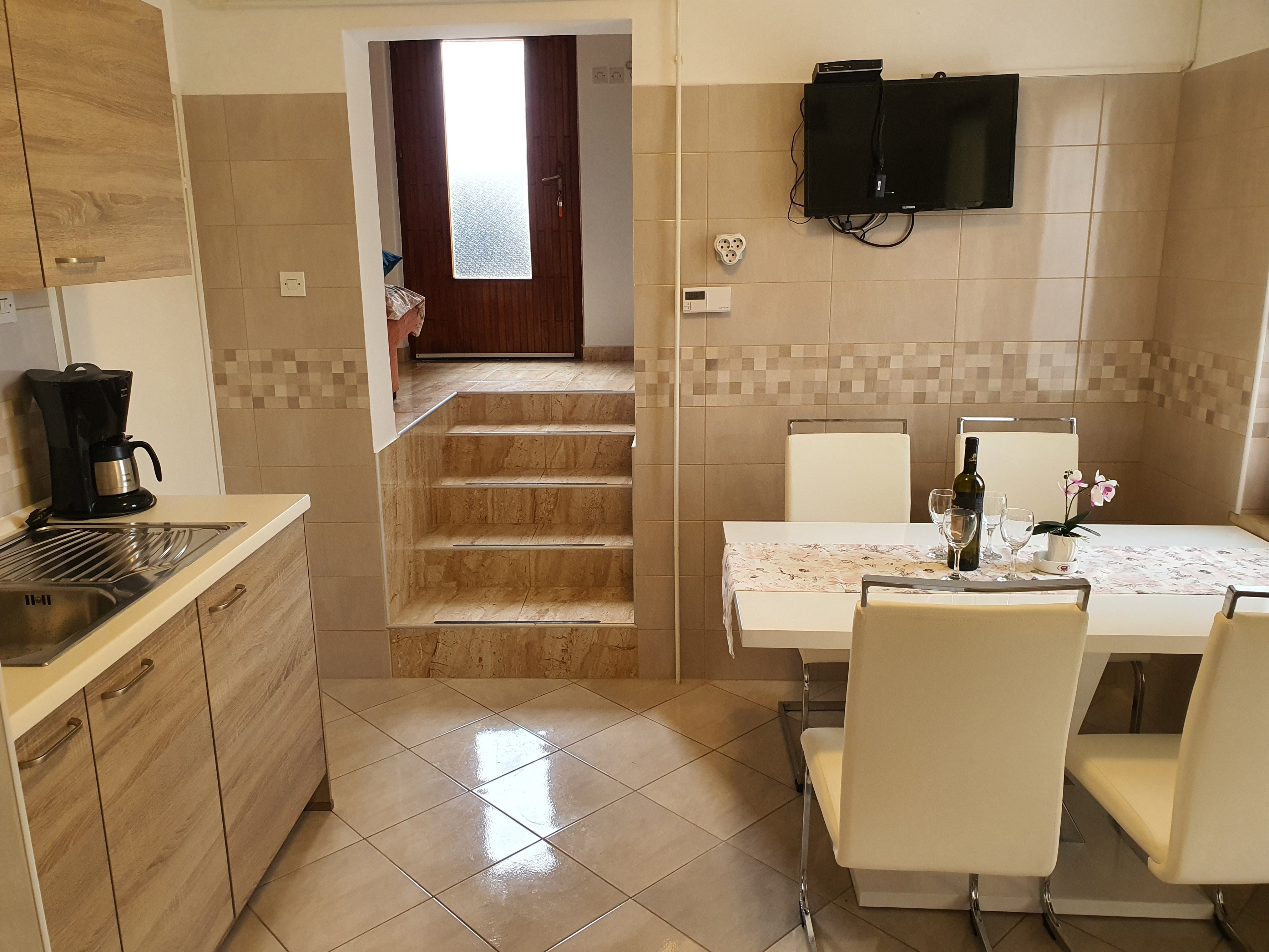 Apartment can accommodate 5 guests. Beds are situated in 2 sleeping rooms, but also in the living room, within 35m2. Guests can use a private terrace to enjoy the warm summer evenings. The apartment offers the sea view. Food can be prepared using barbecue which is shared with other guests too. INCLUDED IN THE PRICE: tourist tax, final cleaning, air-conditioning, parking, internet, hairdryer. OBLIGATORY ADDITIONAL COSTS: short stay fee (surcharge depending on a number of booked nights: 30% - 1, 20% - 2, 10% - 3). OPTIONAL ADDITIONAL COSTS: central heating (€5.00 per night). The availability of additional services for your chosen dates of stay, as well as their prices (if none are listed) must be checked ahead of time. Any additional services not shown in the price calculation are payable directly to the property owner and only if used by the visitor.