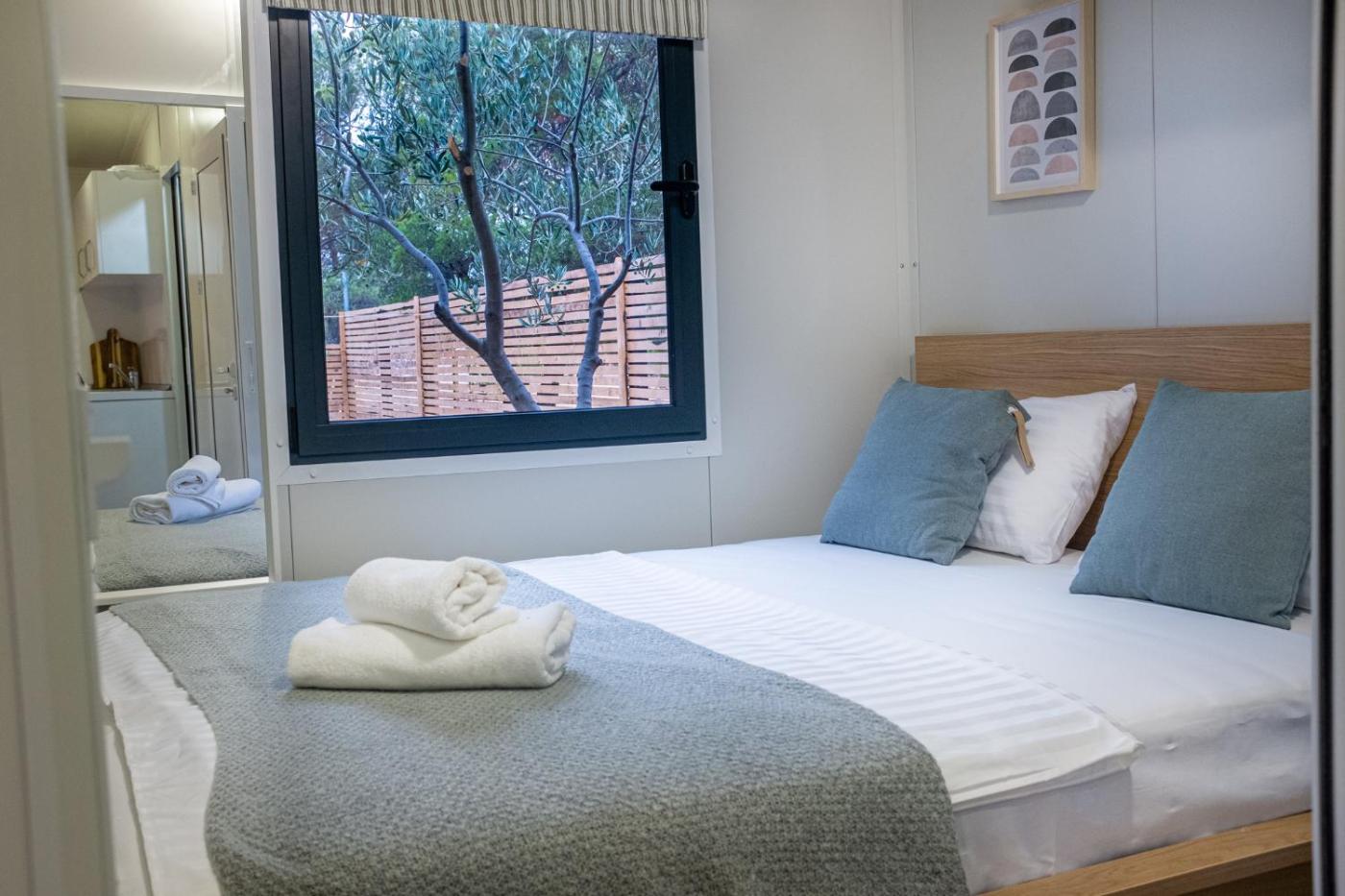Premium Two-Bedroom Mobile Home with Terrace. Featuring a private entrance, this air-conditioned mobile home comprises 1 living room, 2 separate bedrooms and 1 bathroom with a shower and a hairdryer. Meals can be prepared in the kitchen, which comes with a stovetop, a refrigerator and an electric kettle. Boasting a terrace with garden views, this mobile home also provides a seating area and a flat-screen TV with cable channels. The unit offers 4 beds. ;