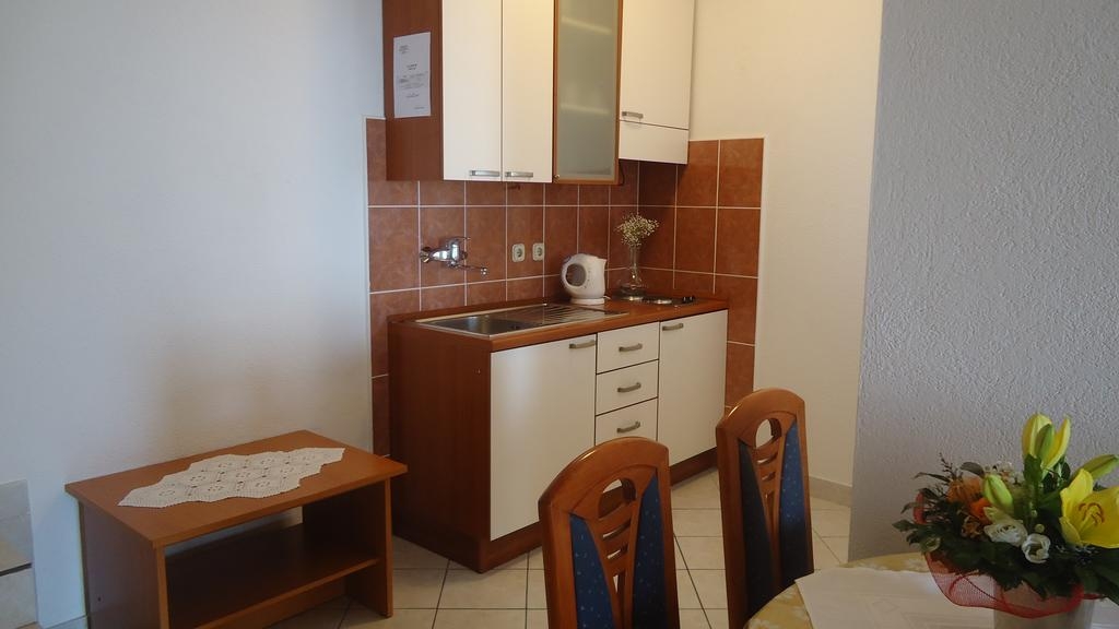 House 14881 in the town of Baška Voda, Makarska - Central Dalmatia has accommodation units of type Apartment (6) and is 20 m away from the sea. The nearest beach to this accommodation is a pebble beach. As the house is subdividedmultiple apartments, other guests may be present during your stay. The hosts reside in the house. The house owner is under no obligation to accept additional persons and pets that were not stated in the reservation request and it is necessary to report them in advance.AMENITIES Garage, (Number of parking spaces: 3), Barbecue: shared, WiFi Internet, Hairdryer, Portable barbecue, Sunshade LOCATION AND ACCESS Facility is situated near a local road Local road between the property and the beach Number of stairs from the property to the beach: 10 Car access possible: Yes The facility is situated in relatively quiet surroundings DISTANCES Sea: 20 m Beach: 20 m Center: 1 km Shop: 600 m Urgent medical care: 1.3 km Pharmacy: 700 m Exchange office: 350 m ATMBank machine: 650 m Tourist info: 600 m