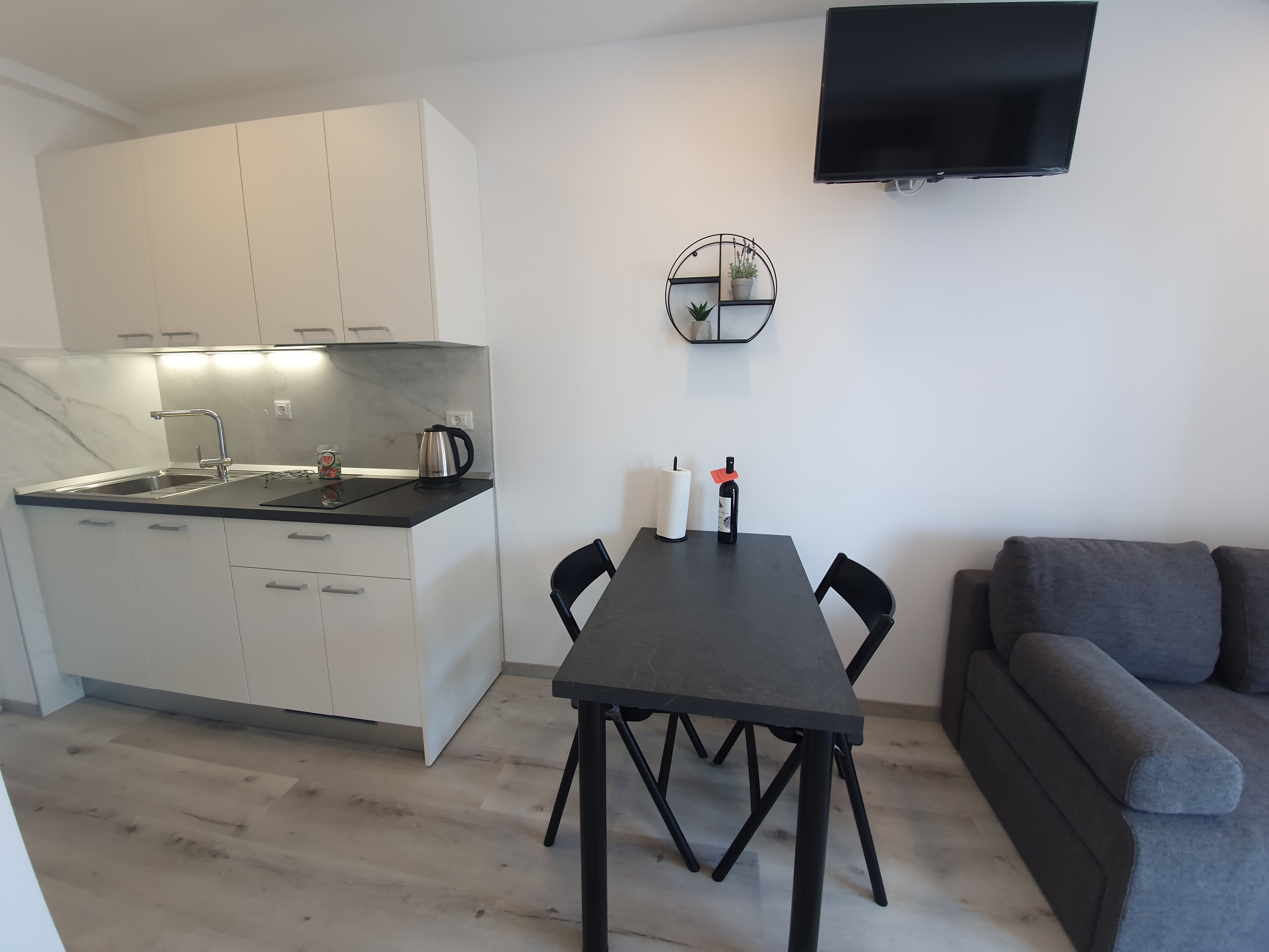 Studio flat can accommodate 2 guests. Beds are situated in 1 sleeping rooms, within 24m2. Guests can use a private terrace to enjoy the warm summer evenings. The studio offers the sea view. Food can be prepared using barbecue which is shared with other guests too. INCLUDED IN THE PRICE: tourist tax, final cleaning, air-conditioning, parking, internet, laundry, baby cot, iron, ironing board, hairdryer. OPTIONAL ADDITIONAL COSTS: additional bed (€15.00 per night). The availability of additional services for your chosen dates of stay, as well as their prices (if none are listed) must be checked ahead of time. Any additional services not shown in the price calculation are payable directly to the property owner and only if used by the visitor.