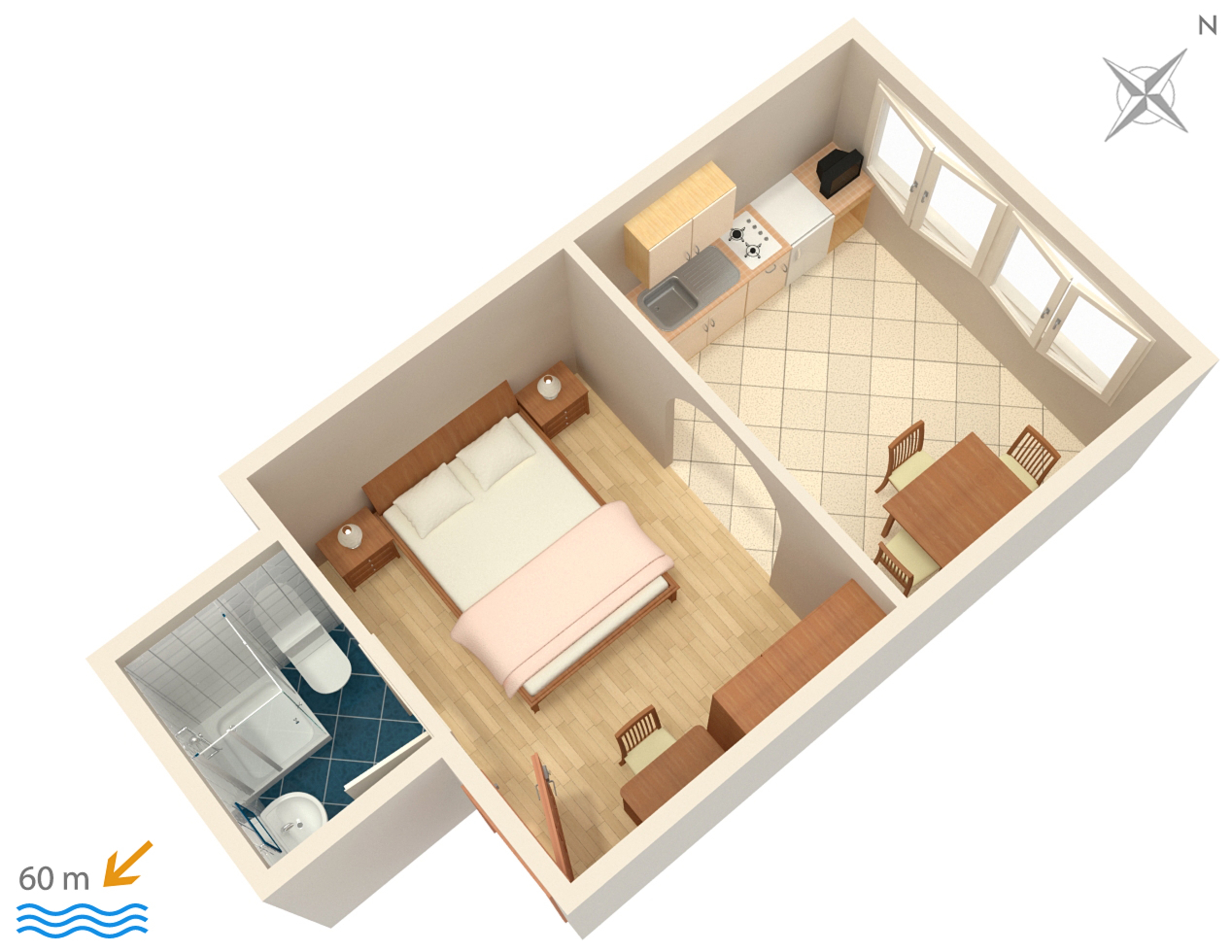 Studio flat can accommodate 2 guests. Beds are situated in 1 sleeping rooms, within 24m2. Food can be prepared using barbecue which is shared with other guests too. There is no balcony or terrace in the reserved accommodation unit. INCLUDED IN THE PRICE: tourist tax, final cleaning, air-conditioning, parking, internet, iron, ironing board, hairdryer. OBLIGATORY ADDITIONAL COSTS: short stay fee (surcharge depending on a number of booked nights: 30% - 1, 20% - 2, 10% - 3). The availability of additional services for your chosen dates of stay, as well as their prices (if none are listed) must be checked ahead of time. Any additional services not shown in the price calculation are payable directly to the property owner and only if used by the visitor.