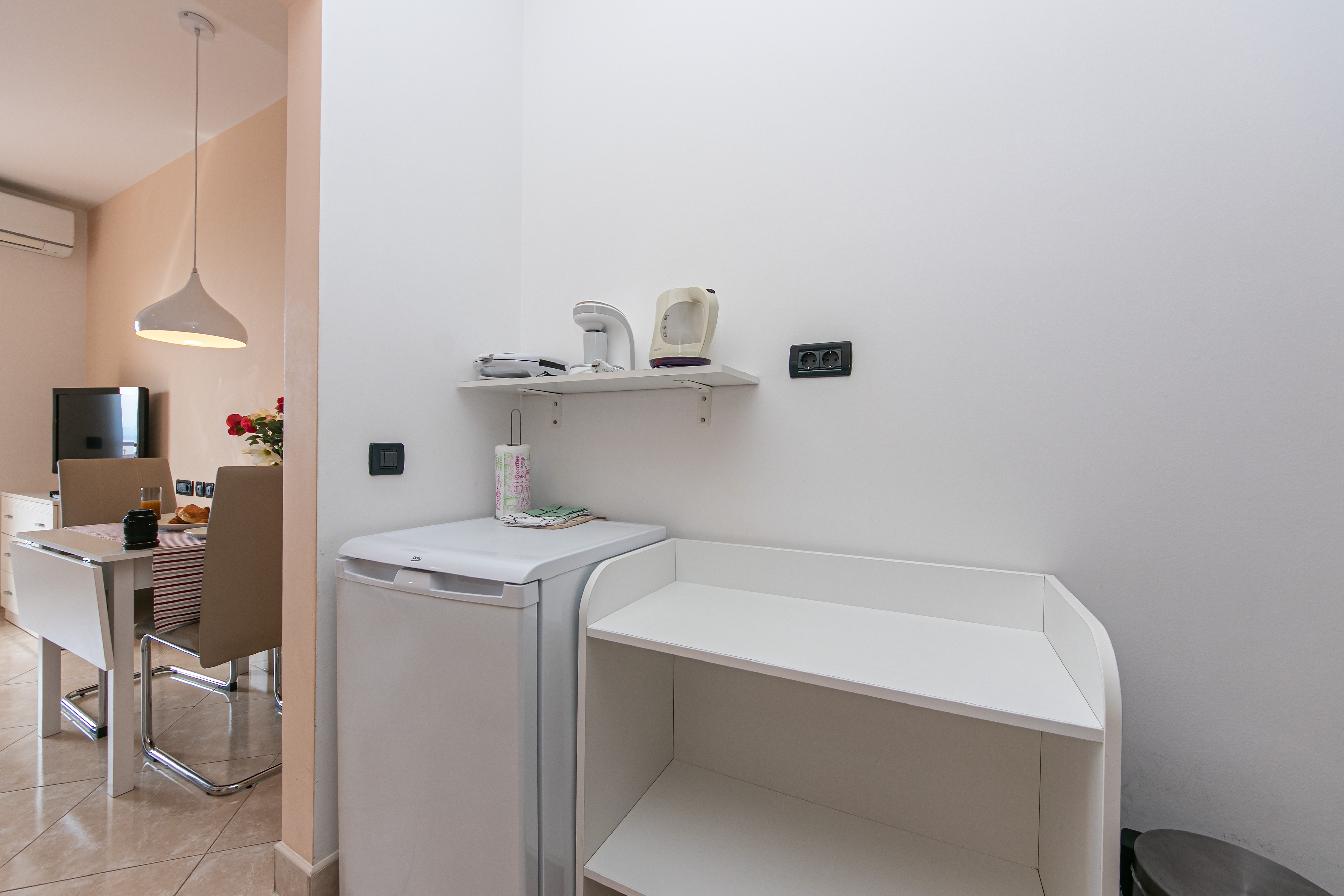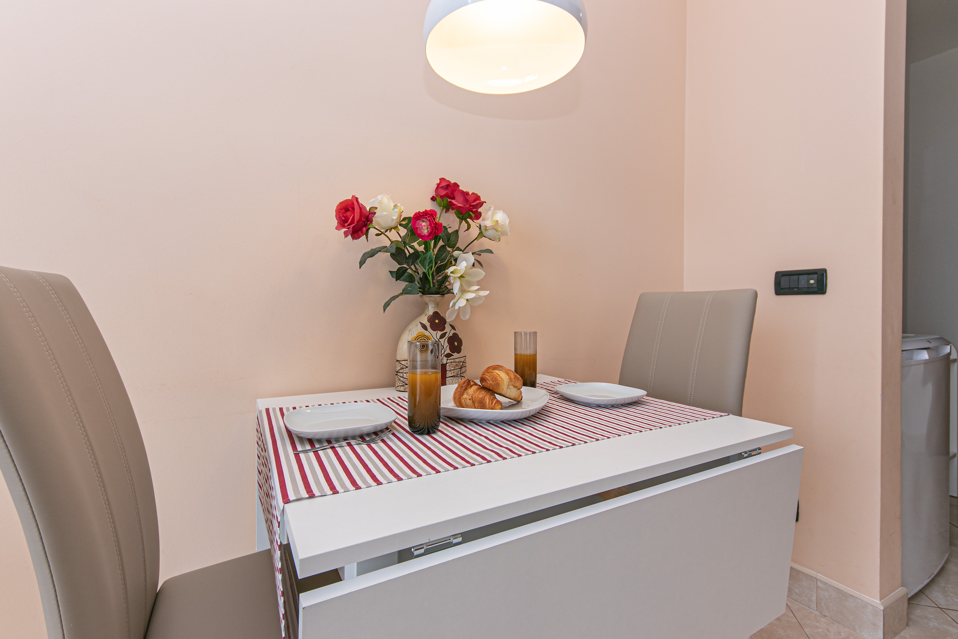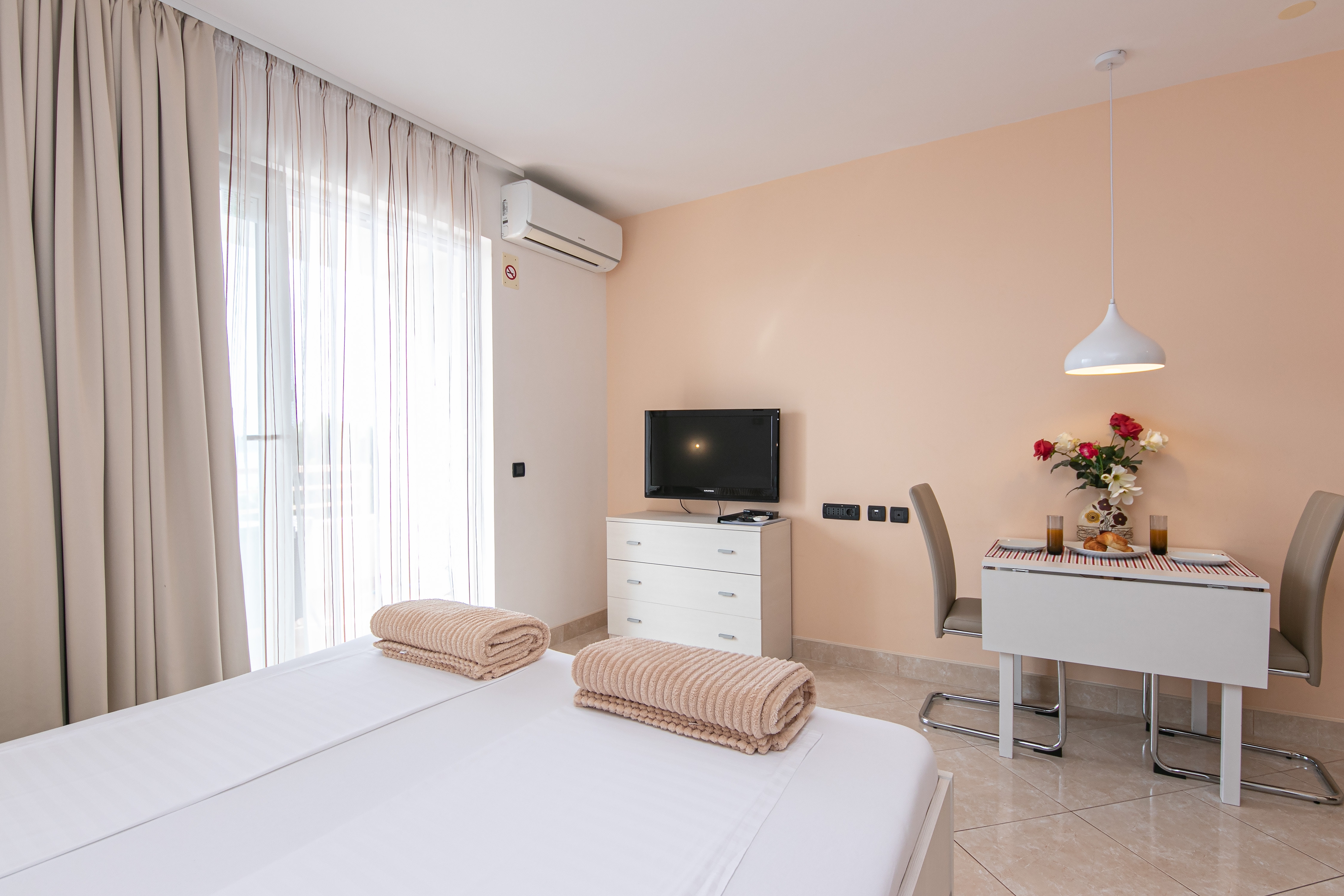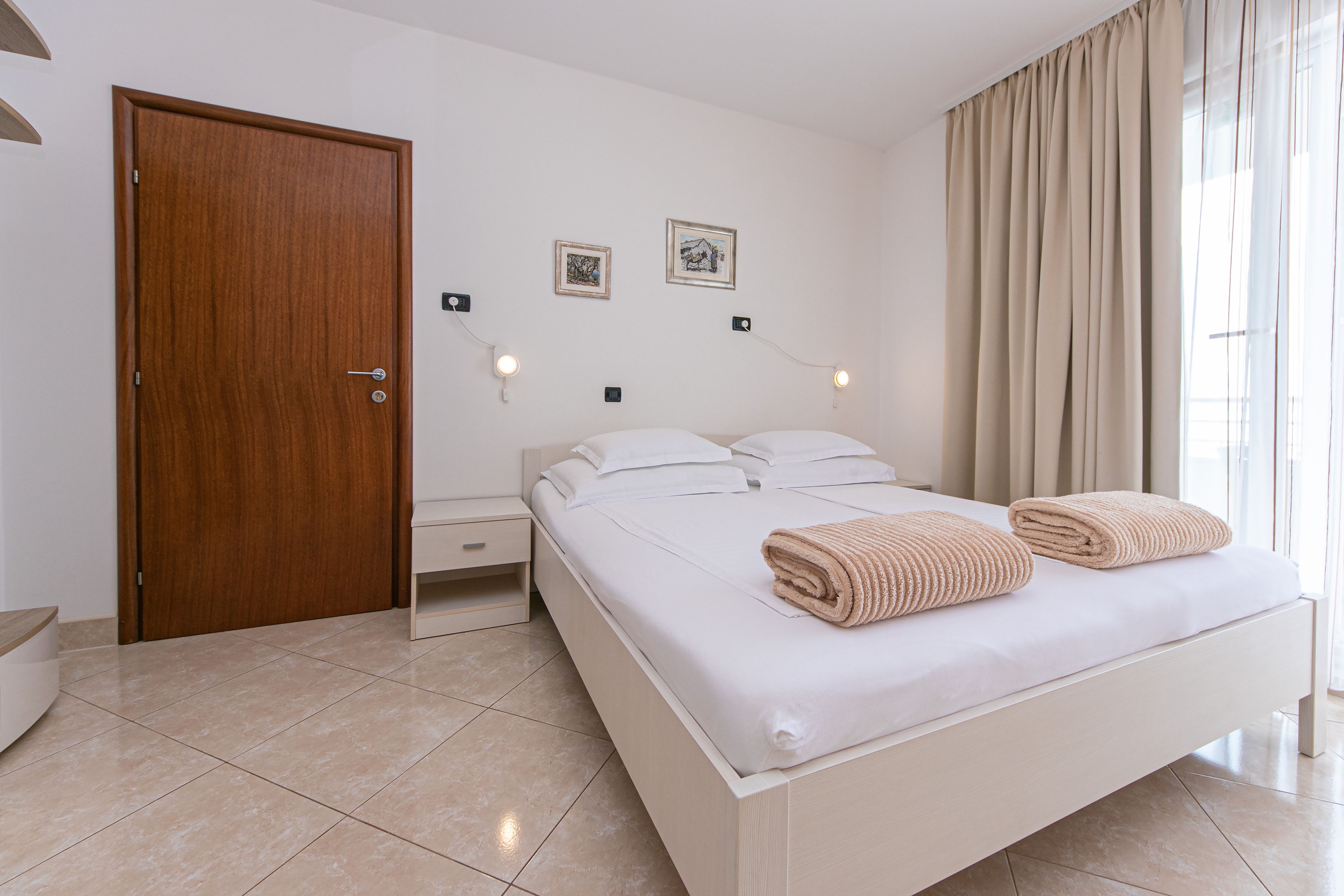 Studio flat can accommodate 2 guests. Beds are situated in 1 sleeping rooms, within 24m2. Guests can use a private terrace to enjoy the warm summer evenings. The studio offers the sea view. Food can be prepared using barbecue which is shared with other guests too. Shared pool is on disposal during stay. This accommodation unit welcomes pets at an additional charge. INCLUDED IN THE PRICE: tourist tax, final cleaning, air-conditioning, pool, parking, internet, laundry, baby cot, iron, ironing board, hairdryer. OPTIONAL ADDITIONAL COSTS: pets (€10.00 per night). The availability of additional services for your chosen dates of stay, as well as their prices (if none are listed) must be checked ahead of time. Any additional services not shown in the price calculation are payable directly to the property owner and only if used by the visitor. Discounts to the base price: free day 14=13 (for reservations of 14 or more days you get one free day for the stay until 31122026).