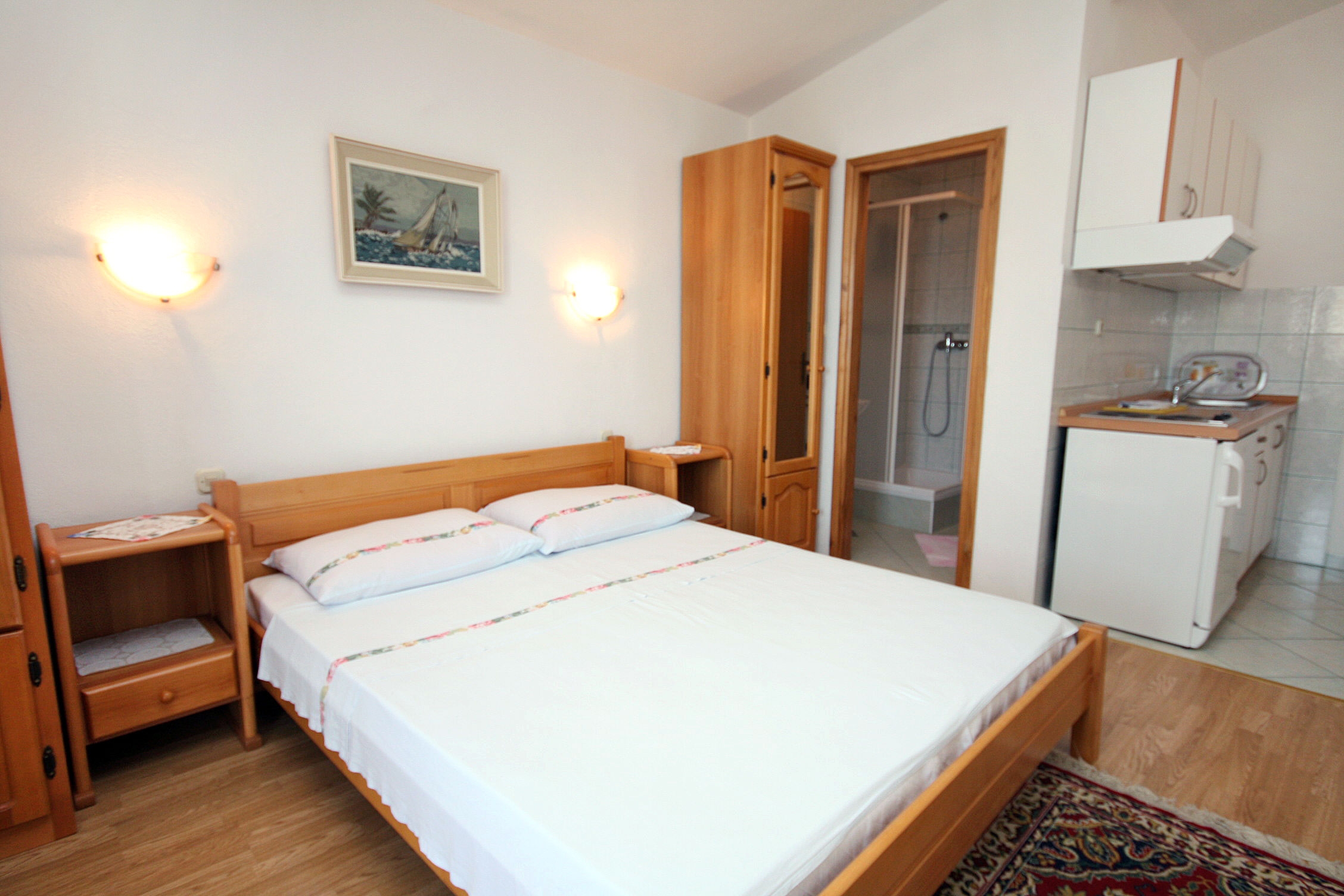 Studio flat can accommodate 2 guests. Beds are situated in 1 sleeping rooms, within 21m2. The studio offers the sea view. Food can be prepared using barbecue which is shared with other guests too. Reserved accommodation unit has a shared terrace. INCLUDED IN THE PRICE: tourist tax, final cleaning, air-conditioning, parking, internet, baby cot, iron, hairdryer. OBLIGATORY ADDITIONAL COSTS: short stay fee (surcharge depending on a number of booked nights: 30% - 1, 20% - 2, 10% - 3). OPTIONAL ADDITIONAL COSTS: laundry (€10.00 washing). The availability of additional services for your chosen dates of stay, as well as their prices (if none are listed) must be checked ahead of time. Any additional services not shown in the price calculation are payable directly to the property owner and only if used by the visitor.