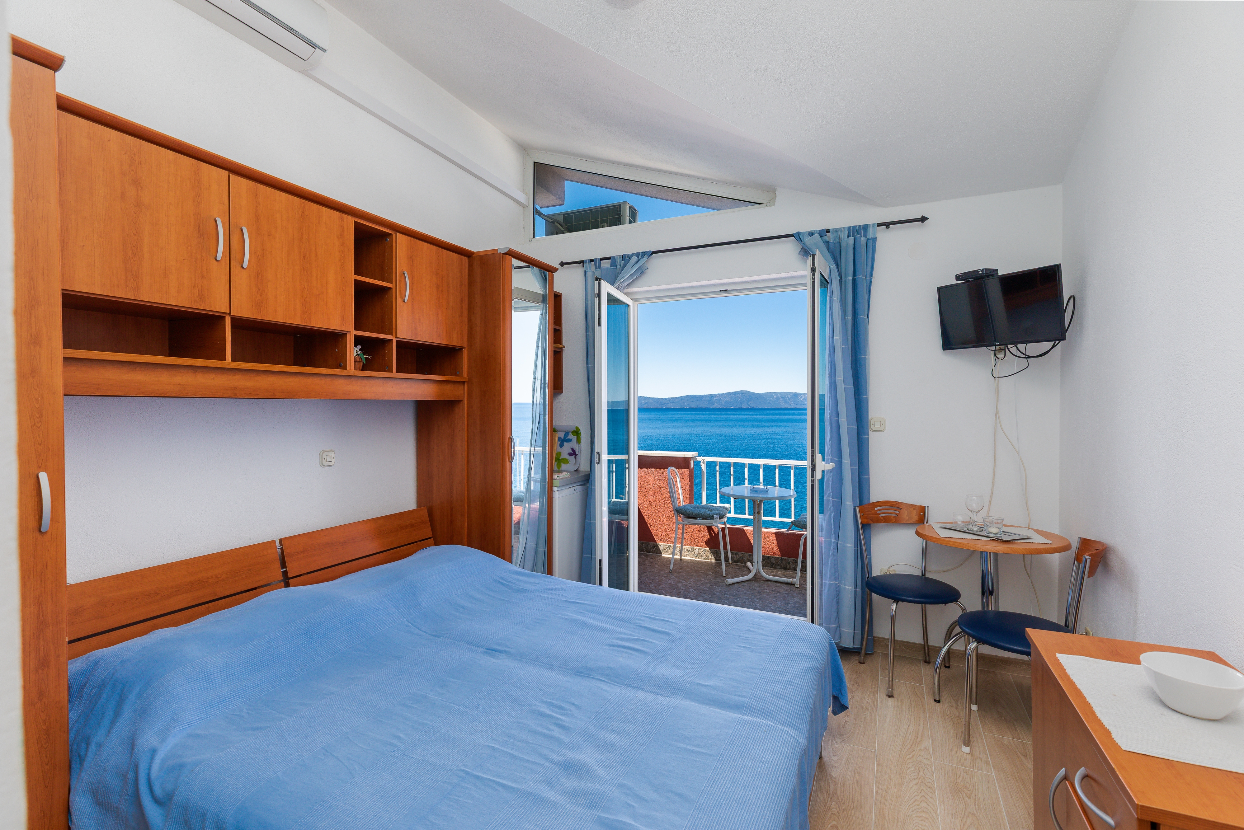 Room can accommodate 2 guests. Beds are situated in 1 sleeping rooms, within 13m2. Guests can use a private balcony to enjoy the warm summer evenings. The room offers the sea view. Food can be prepared using barbecue which is shared with other guests too. Reserved accommodation unit is a room with its own bathroom and there is no usage of kitchen. INCLUDED IN THE PRICE: tourist tax, final cleaning, air-conditioning, parking, internet, baby cot, iron, ironing board, hairdryer. OBLIGATORY ADDITIONAL COSTS: short stay fee (surcharge depending on a number of booked nights: 30% - 1, 20% - 2, 10% - 3). The availability of additional services for your chosen dates of stay, as well as their prices (if none are listed) must be checked ahead of time. Any additional services not shown in the price calculation are payable directly to the property owner and only if used by the visitor. Discounts to the base price: free day 14=13 (for reservations of 14 or more days you get one free day for the stay until 31122026).