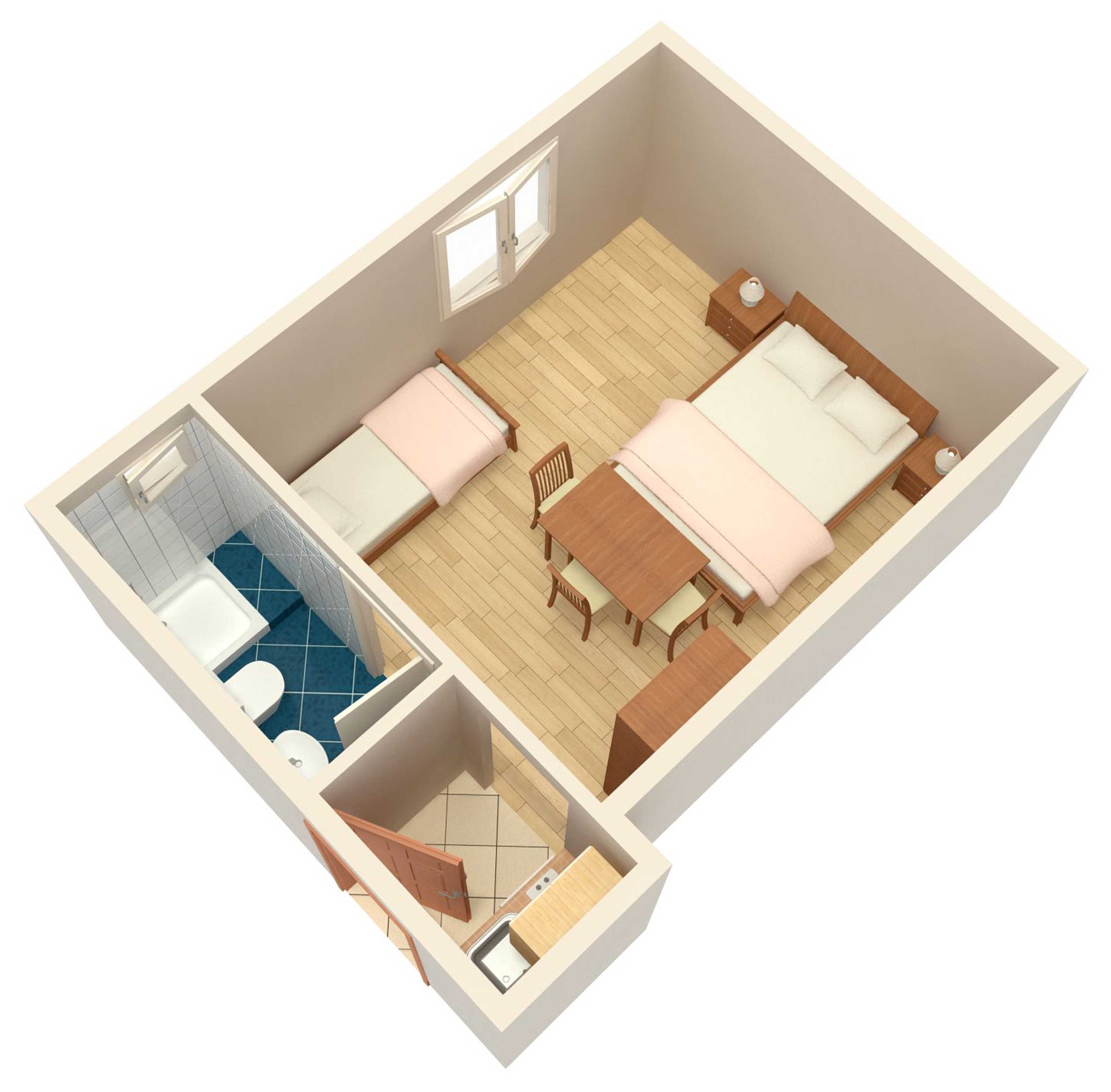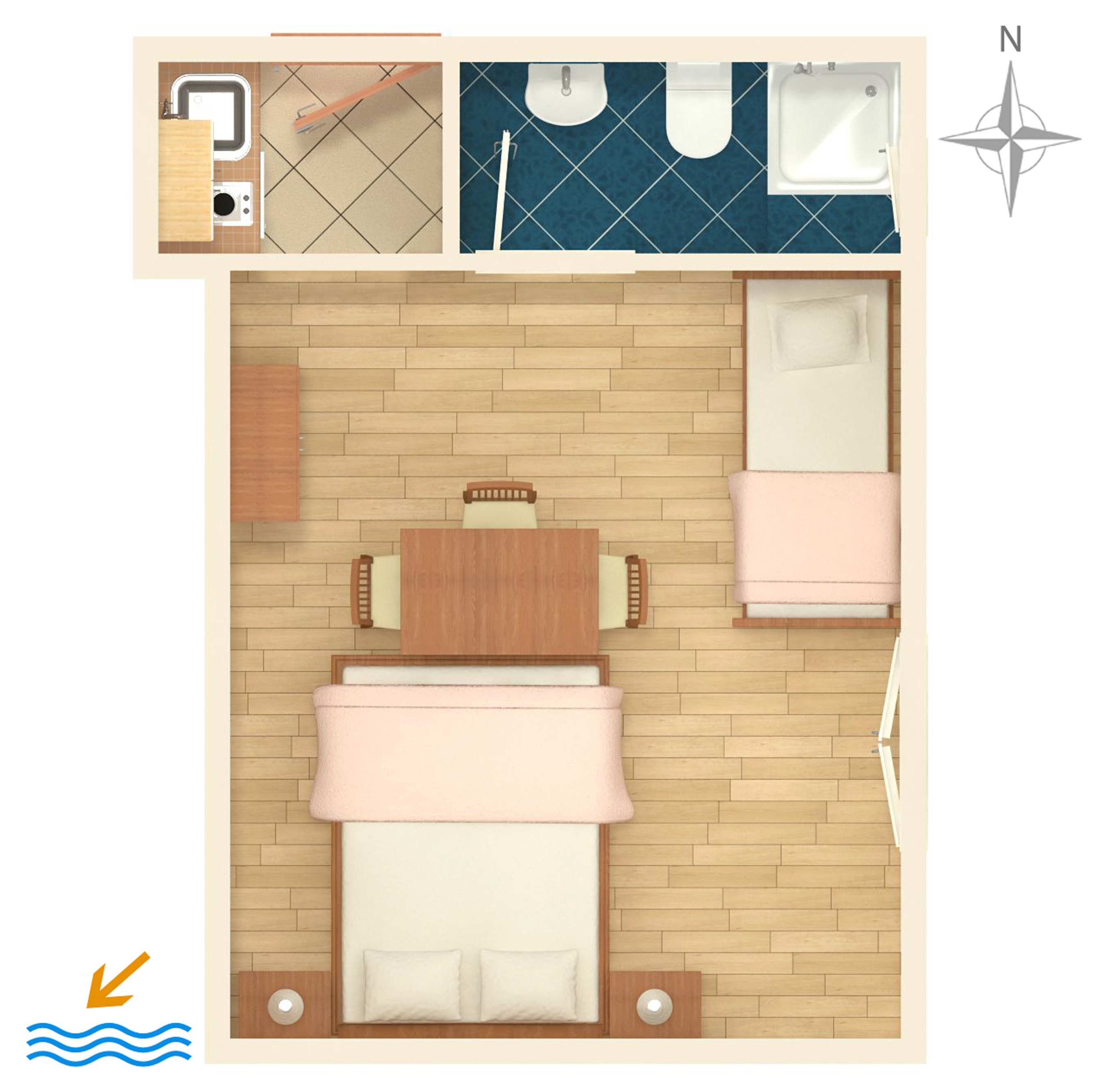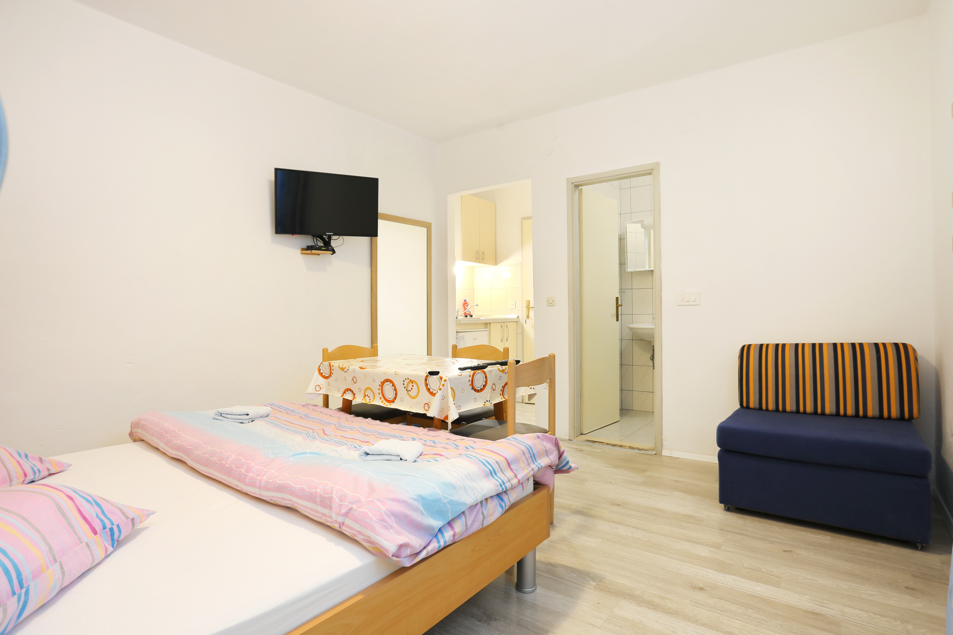 Studio flat can accommodate 3 guests. Beds are situated in 1 sleeping rooms, within 19m2. Food can be prepared using barbecue which is shared with other guests too. There is no balcony or terrace in the reserved accommodation unit. INCLUDED IN THE PRICE: tourist tax, final cleaning, air-conditioning, parking, internet, ironing board. OBLIGATORY ADDITIONAL COSTS: short stay fee (surcharge depending on a number of booked nights: 30% - 1, 20% - 2, 10% - 3). The availability of additional services for your chosen dates of stay, as well as their prices (if none are listed) must be checked ahead of time. Any additional services not shown in the price calculation are payable directly to the property owner and only if used by the visitor. Discounts to the base price: free day 14=13 (for reservations of 14 or more days you get one free day for the stay until 31122026).