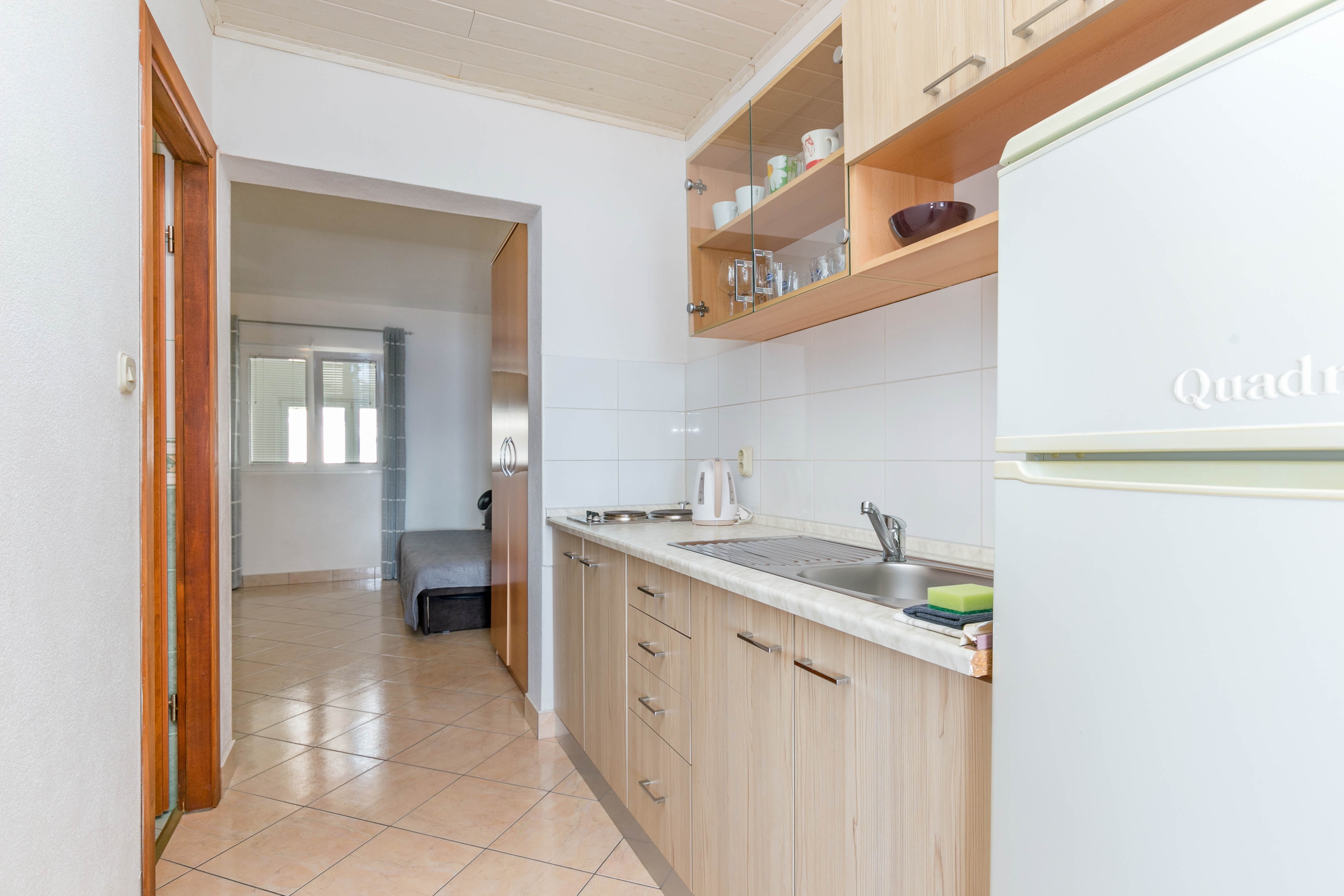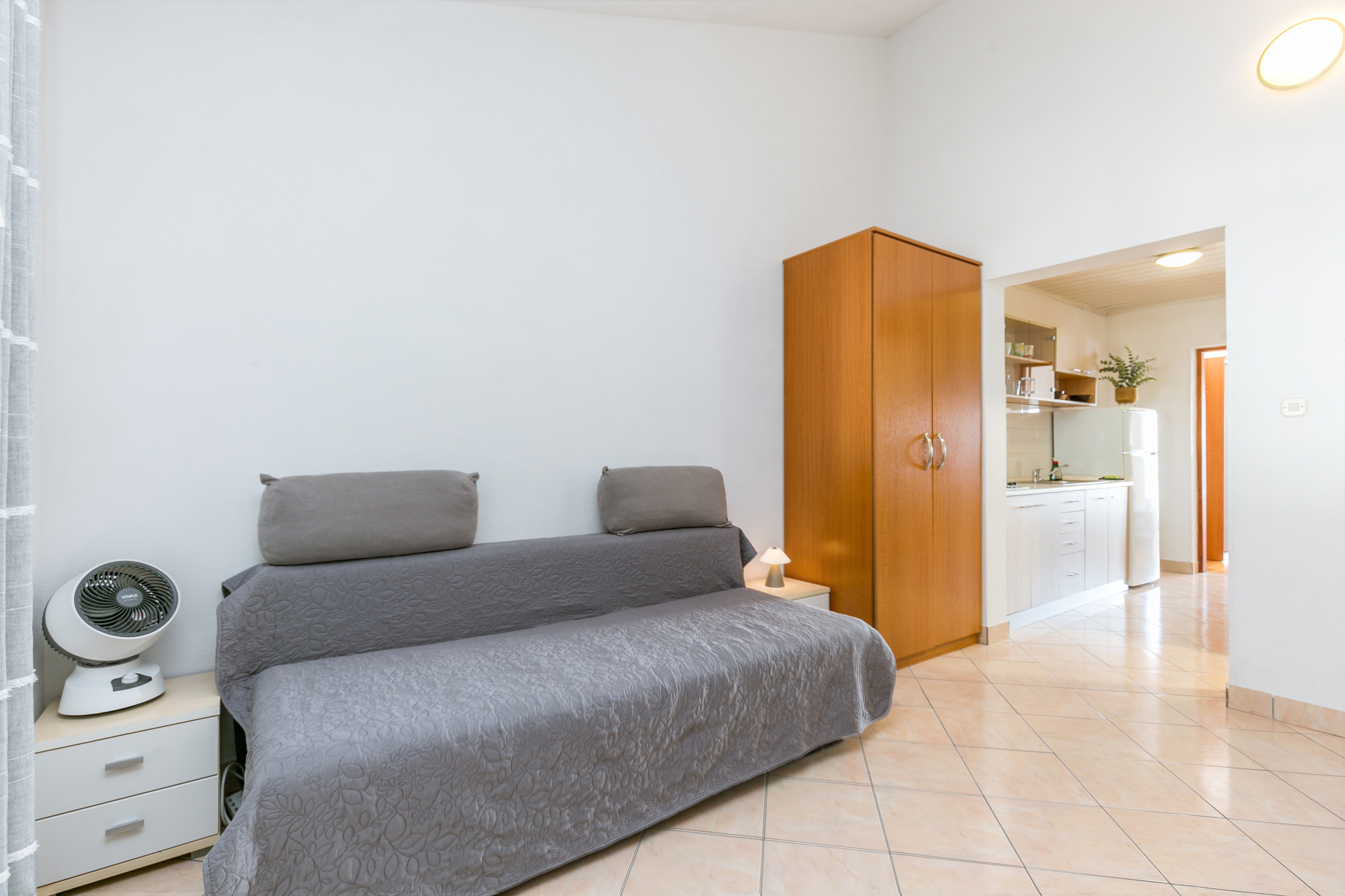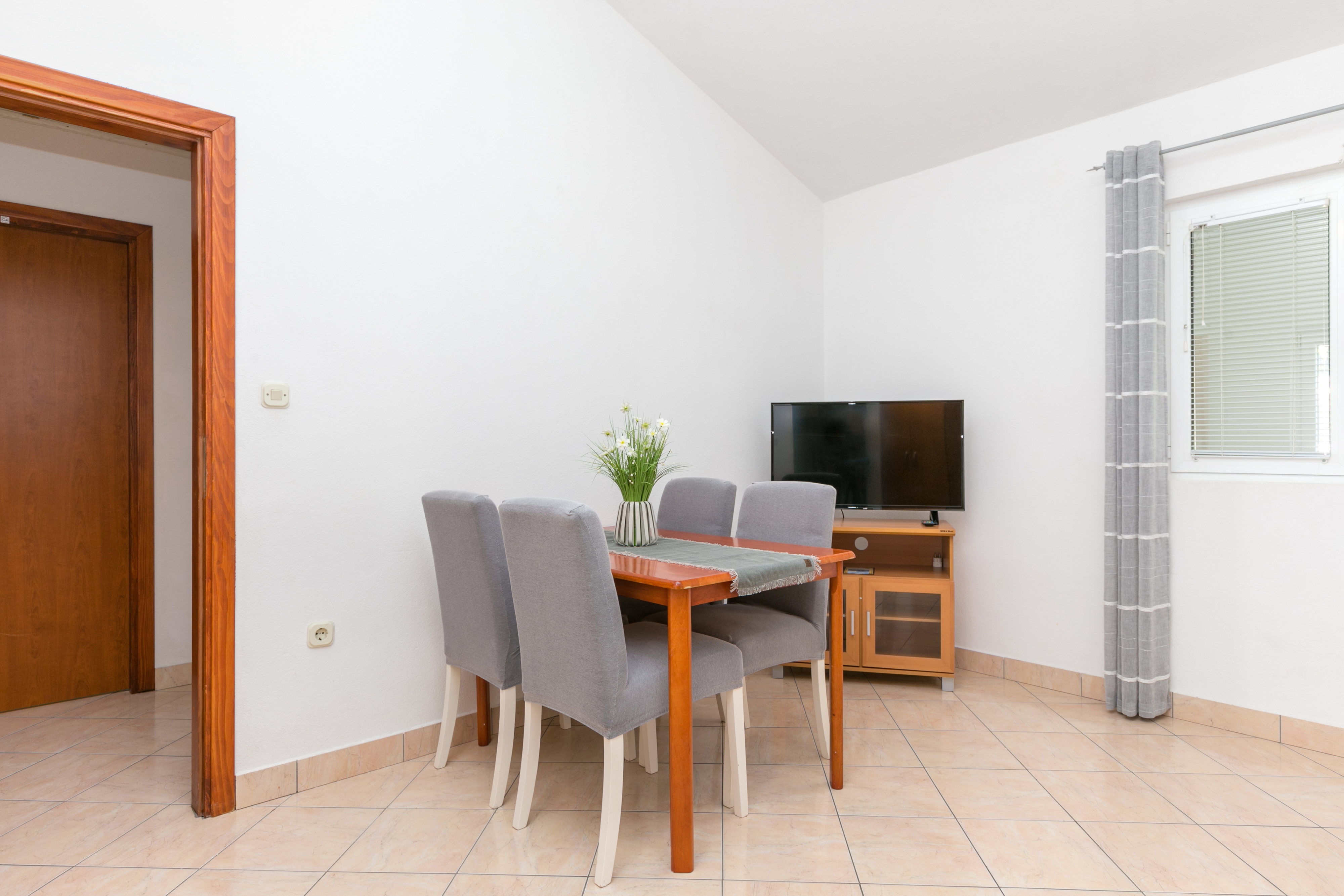 Apartment can accommodate 5 guests. Beds are situated in 1 sleeping rooms, but also in the living room, within 35m2. Guests can use a private balcony to enjoy the warm summer evenings. The apartment offers the sea view. Food can be prepared using barbecue which is shared with other guests too. INCLUDED IN THE PRICE: tourist tax, final cleaning, air-conditioning, parking, internet, laundry, baby cot, iron, ironing board. OBLIGATORY ADDITIONAL COSTS: short stay fee (surcharge depending on a number of booked nights: 30% - 1, 20% - 2, 10% - 3). The availability of additional services for your chosen dates of stay, as well as their prices (if none are listed) must be checked ahead of time. Any additional services not shown in the price calculation are payable directly to the property owner and only if used by the visitor. Discounts to the base price: free day 14=13 (for reservations of 14 or more days you get one free day for the stay until 31122026).