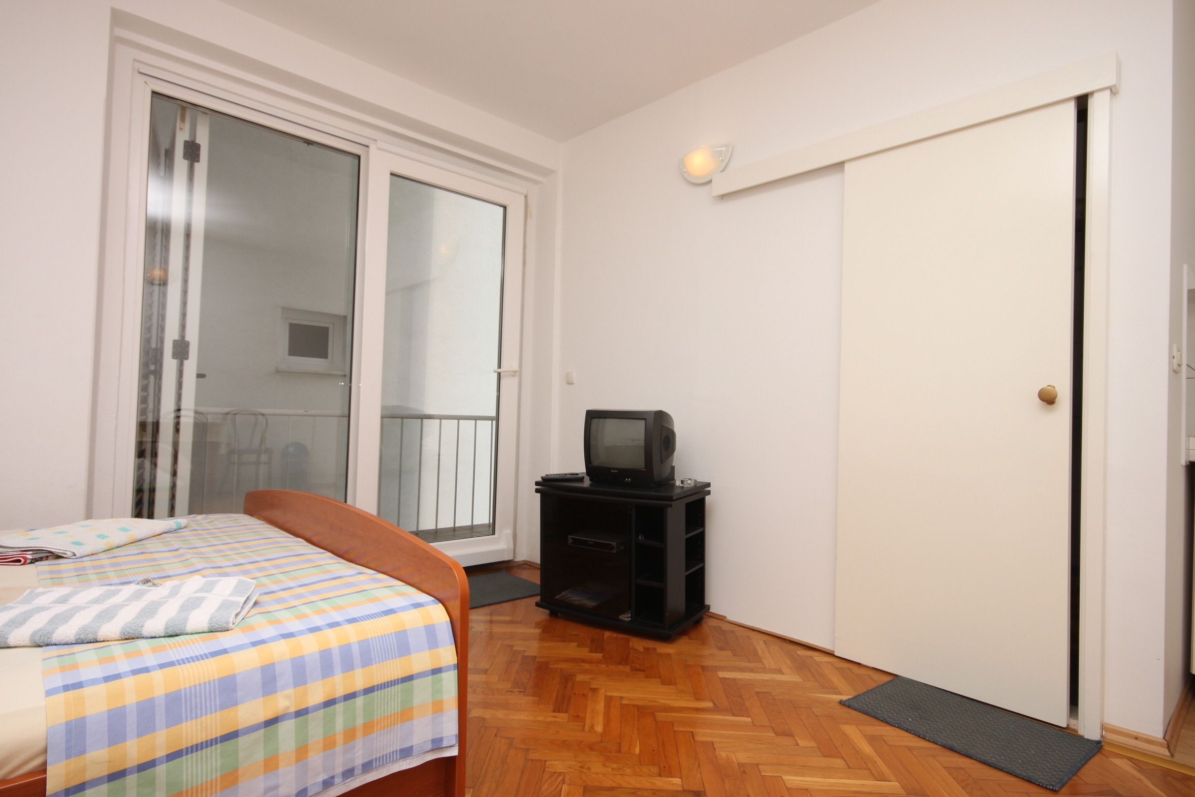 Studio flat can accommodate 2 guests. Beds are situated in 1 sleeping rooms, within 21m2. Guests can use a private balcony to enjoy the warm summer evenings. Food can be prepared using barbecue which is shared with other guests too. INCLUDED IN THE PRICE: tourist tax, final cleaning, air-conditioning, parking, internet, baby cot, iron, ironing board, hairdryer. OBLIGATORY ADDITIONAL COSTS: short stay fee (surcharge depending on a number of booked nights: 30% - 1, 20% - 2, 10% - 3). OPTIONAL ADDITIONAL COSTS: laundry (€5.00 washing), additional bed (€10.00 per night). The availability of additional services for your chosen dates of stay, as well as their prices (if none are listed) must be checked ahead of time. Any additional services not shown in the price calculation are payable directly to the property owner and only if used by the visitor.