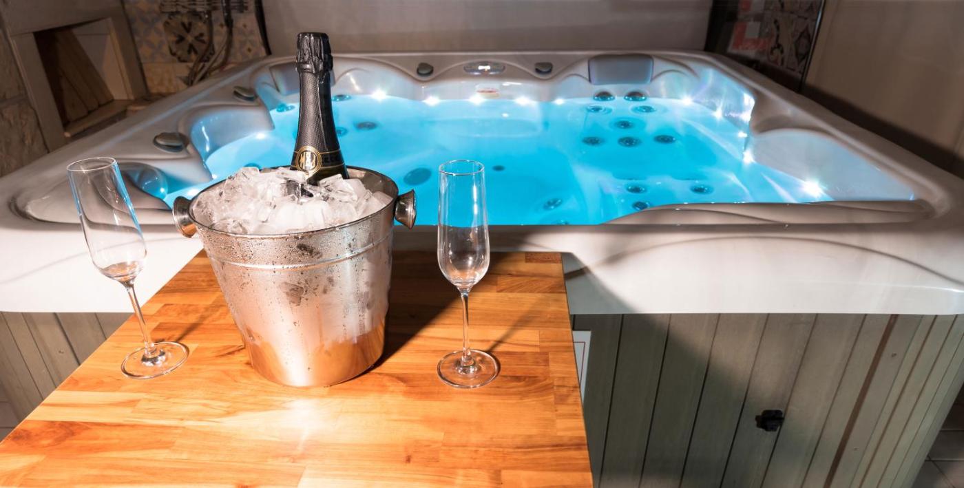 Four-Bedroom House. This holiday home features a hot tub and a fireplace. Boasting a private entrance, this air-conditioned holiday home features 1 living room, 4 separate bedrooms and 2 bathrooms with a shower and a bidet. Guests will find a stovetop, a refrigerator, a dishwasher and kitchenware in the well-fitted kitchen. The holiday home also comes with a barbecue. The spacious holiday home features a washing machine, soundproof walls, a tea and coffee maker, a flat-screen TV with cable channels, as well as sea views. The unit has 4 beds.