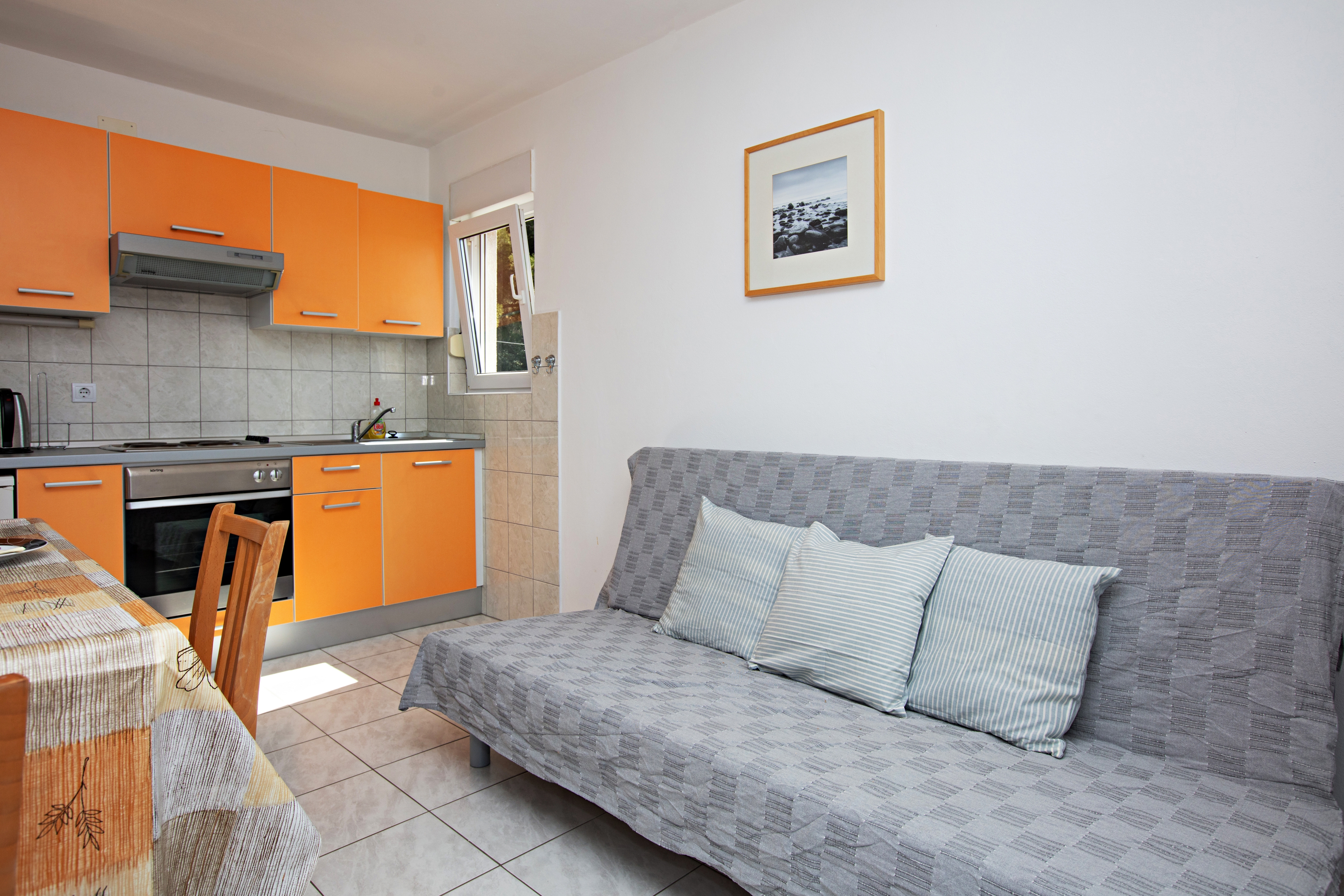 Apartment can accommodate 3 guests. Beds are situated in 1 sleeping rooms, but also in the living room, within 41m2. Guests can use a private balcony to enjoy the warm summer evenings. The apartment offers the sea view. This accommodation unit welcomes pets at no additional costs. INCLUDED IN THE PRICE: tourist tax, final cleaning, air-conditioning, parking, garage, internet, pets, iron, ironing board, hairdryer. OBLIGATORY ADDITIONAL COSTS: short stay fee (surcharge depending on a number of booked nights: 30% - 1, 20% - 2, 10% - 3). The availability of additional services for your chosen dates of stay, as well as their prices (if none are listed) must be checked ahead of time. Any additional services not shown in the price calculation are payable directly to the property owner and only if used by the visitor.