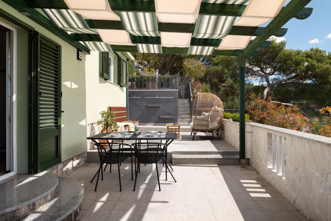 The villa features a barbecue and a garden, which can be enjoyed by guests if the weather permits.