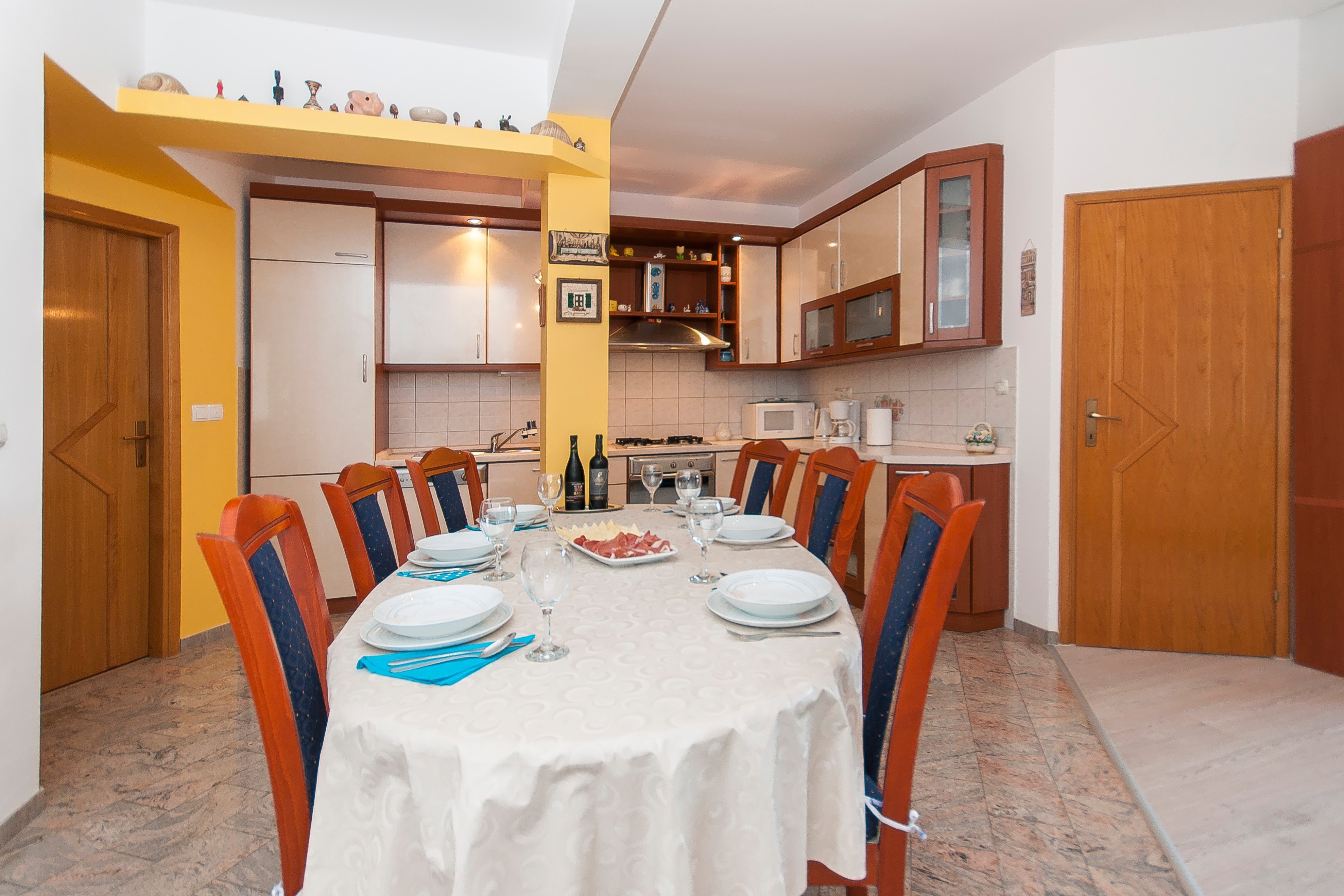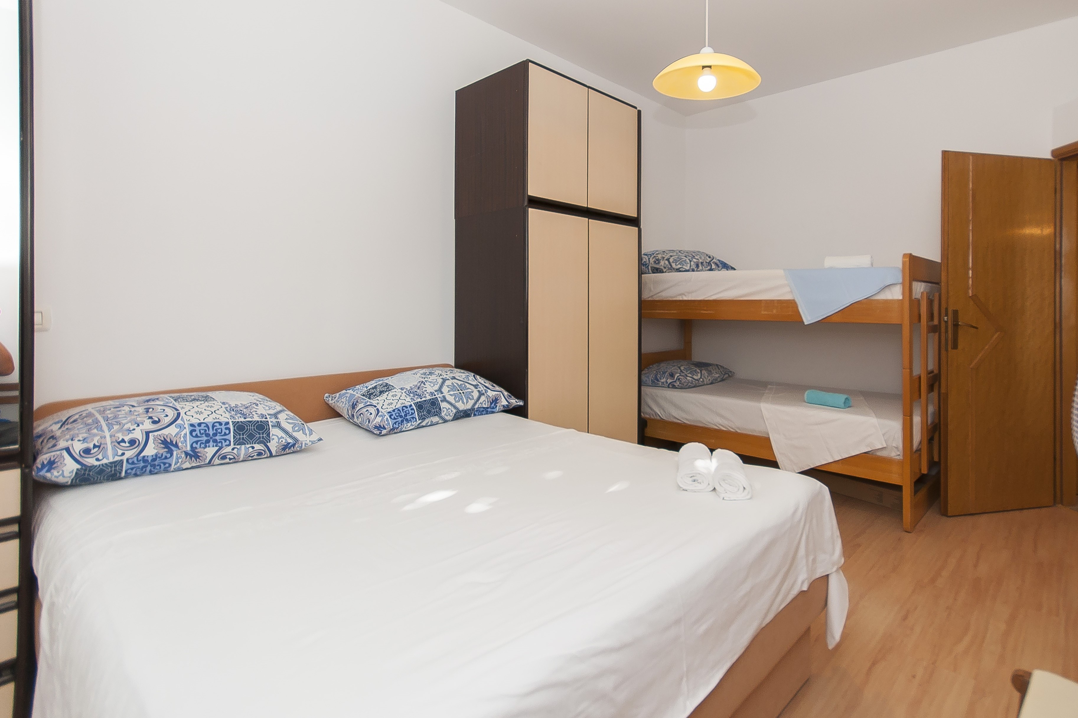 House can accommodate 8 guests. Beds are situated in 3 sleeping rooms, within 79m2. Guests can use a private balcony to enjoy the warm summer evenings. The house offers the sea view. Food can be prepared using barbecue which is shared with other guests too. This accommodation unit welcomes pets at no additional costs. INCLUDED IN THE PRICE: tourist tax, final cleaning, air-conditioning, parking, internet, pets, baby cot, iron, ironing board, hairdryer, portable barbecue. OBLIGATORY ADDITIONAL COSTS: short stay fee (surcharge depending on a number of booked nights: 30% - 1, 20% - 2, 10% - 3). The availability of additional services for your chosen dates of stay, as well as their prices (if none are listed) must be checked ahead of time. Any additional services not shown in the price calculation are payable directly to the property owner and only if used by the visitor. Discounts to the base price: free day 14=13 (for reservations of 14 or more days you get one free day for the stay until 31122026).