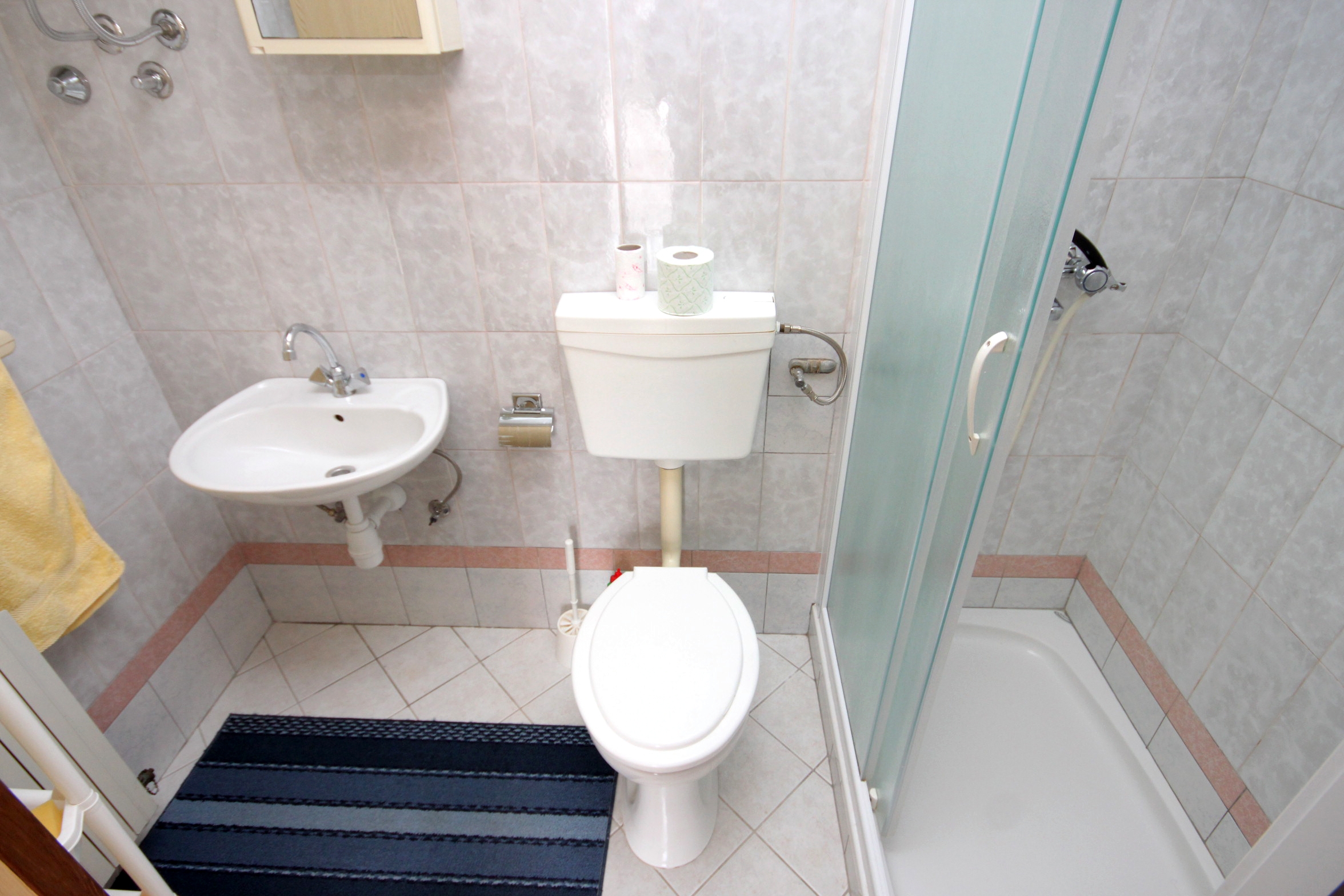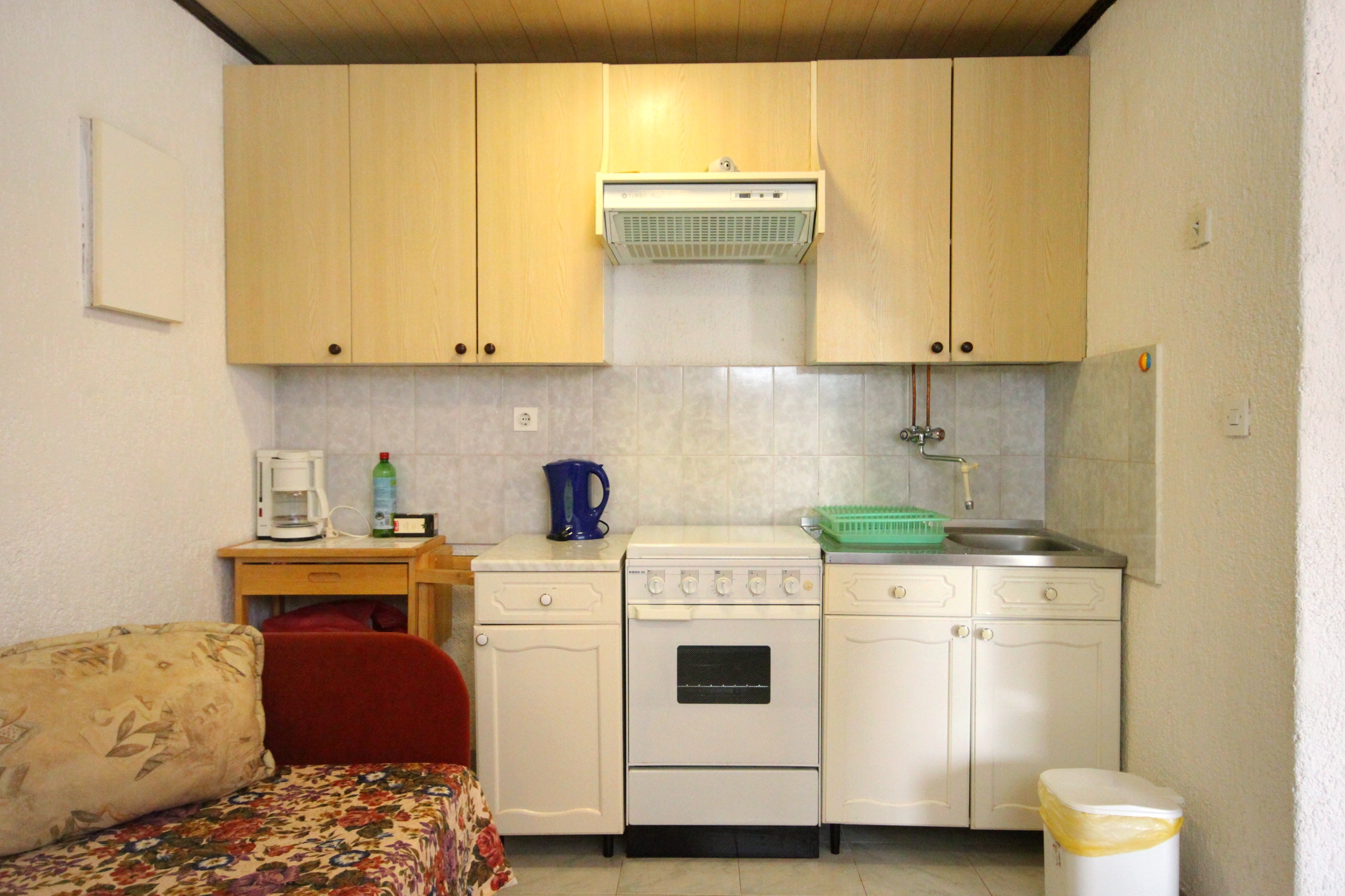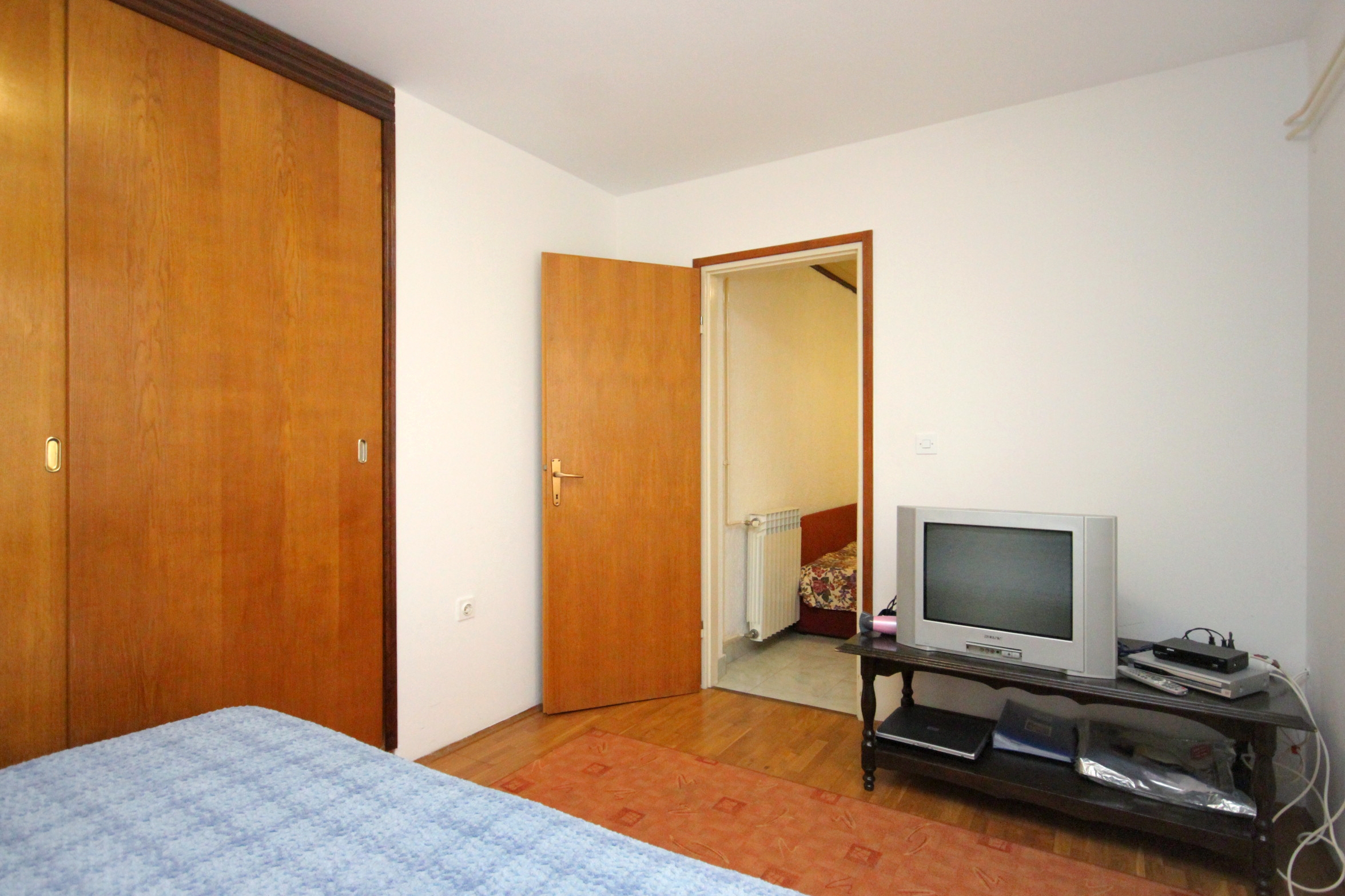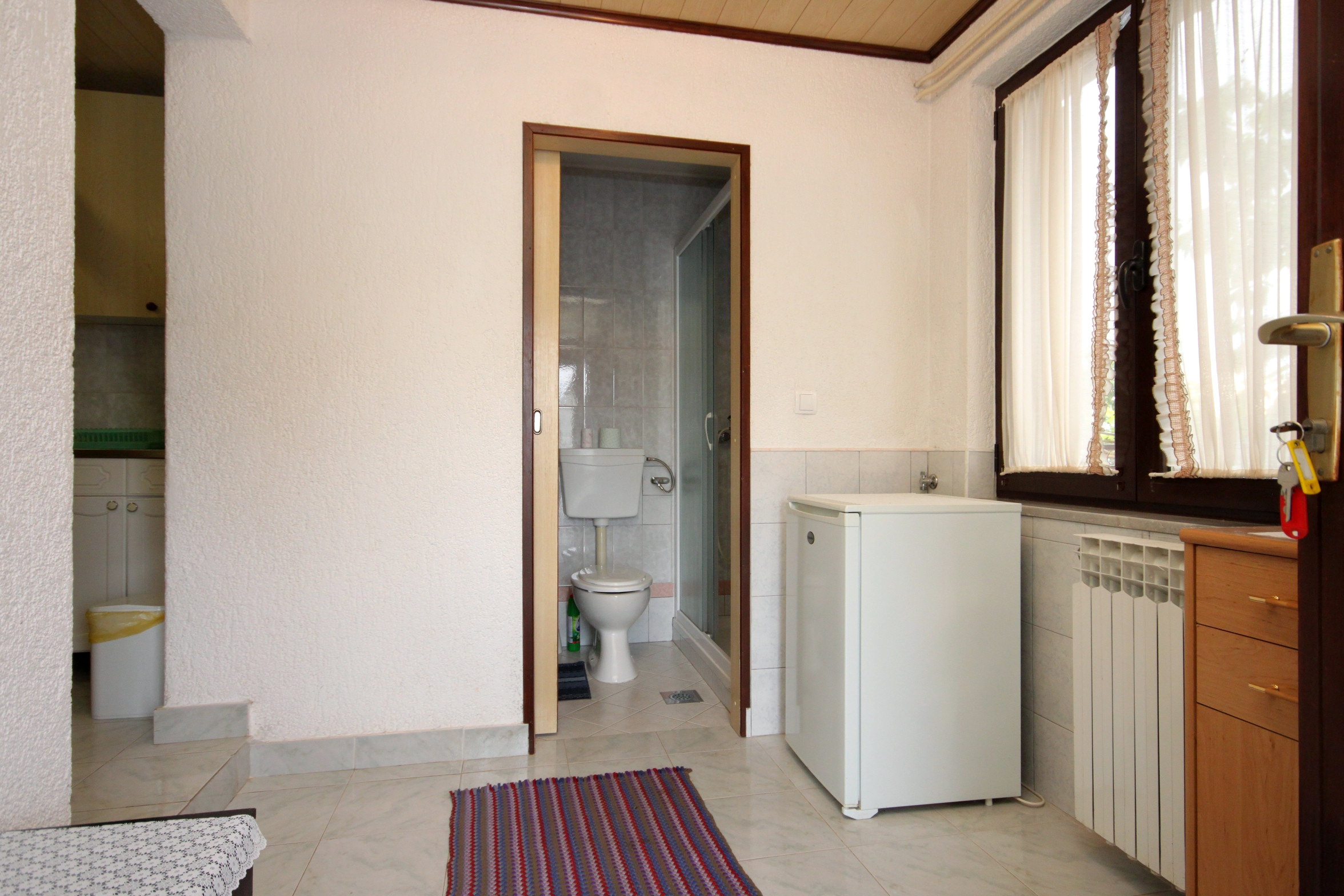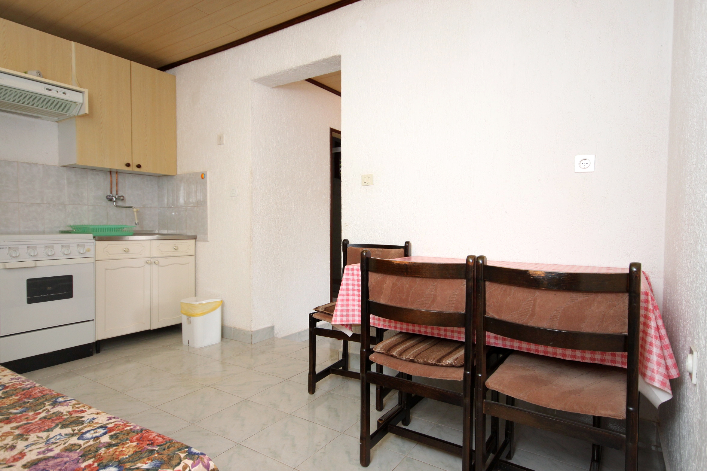 Apartment can accommodate 3 guests. Beds are situated in 1 sleeping rooms, but also in the dining room, within 30m2. Guests can use a private terrace to enjoy the warm summer evenings. Food can be prepared using barbecue which is shared with other guests too. This accommodation unit welcomes pets at an additional charge. INCLUDED IN THE PRICE: tourist tax, final cleaning, central heating, parking, internet, baby cot, iron, ironing board, hairdryer, portable barbecue, sunchairs. OBLIGATORY ADDITIONAL COSTS: short stay fee (surcharge depending on a number of booked nights: 30% - 1, 20% - 2, 10% - 3). OPTIONAL ADDITIONAL COSTS: breakfast (€7.00, a 50% discount for children aged 4 to 12 years, Children up to age 4 free of charge), air-conditioning (€7.00 per night), laundry (€5.00 washing), pets (€5.00 per night). The availability of additional services for your chosen dates of stay, as well as their prices (if none are listed) must be checked ahead of time. Any additional services not shown in the price calculation are payable directly to the property owner and only if used by the visitor.