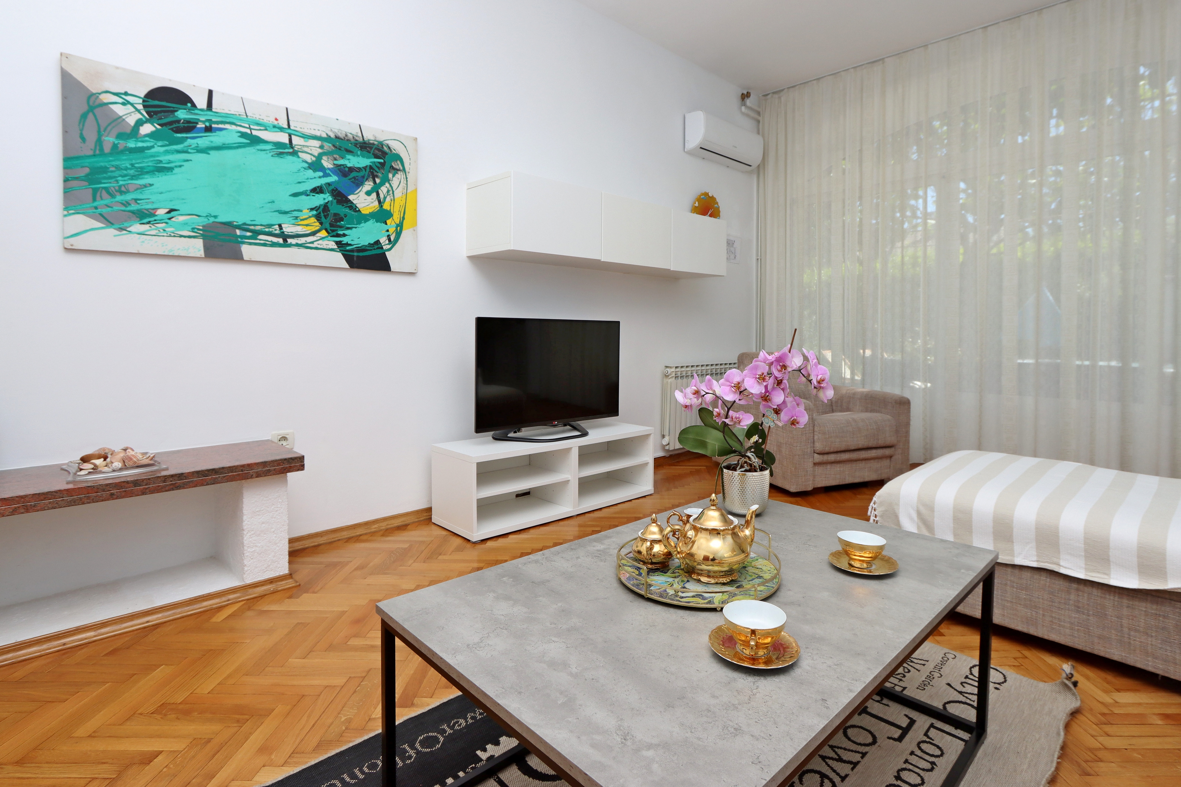 Apartment can accommodate 6 guests. Beds are situated in 3 sleeping rooms, within 90m2. Guests can use a private terrace to enjoy the warm summer evenings. Food can be prepared using barbecue which is shared with other guests too. INCLUDED IN THE PRICE: tourist tax, final cleaning, air-conditioning, central heating, parking, internet, hairdryer, sunchairs. The availability of additional services for your chosen dates of stay, as well as their prices (if none are listed) must be checked ahead of time. Any additional services not shown in the price calculation are payable directly to the property owner and only if used by the visitor.