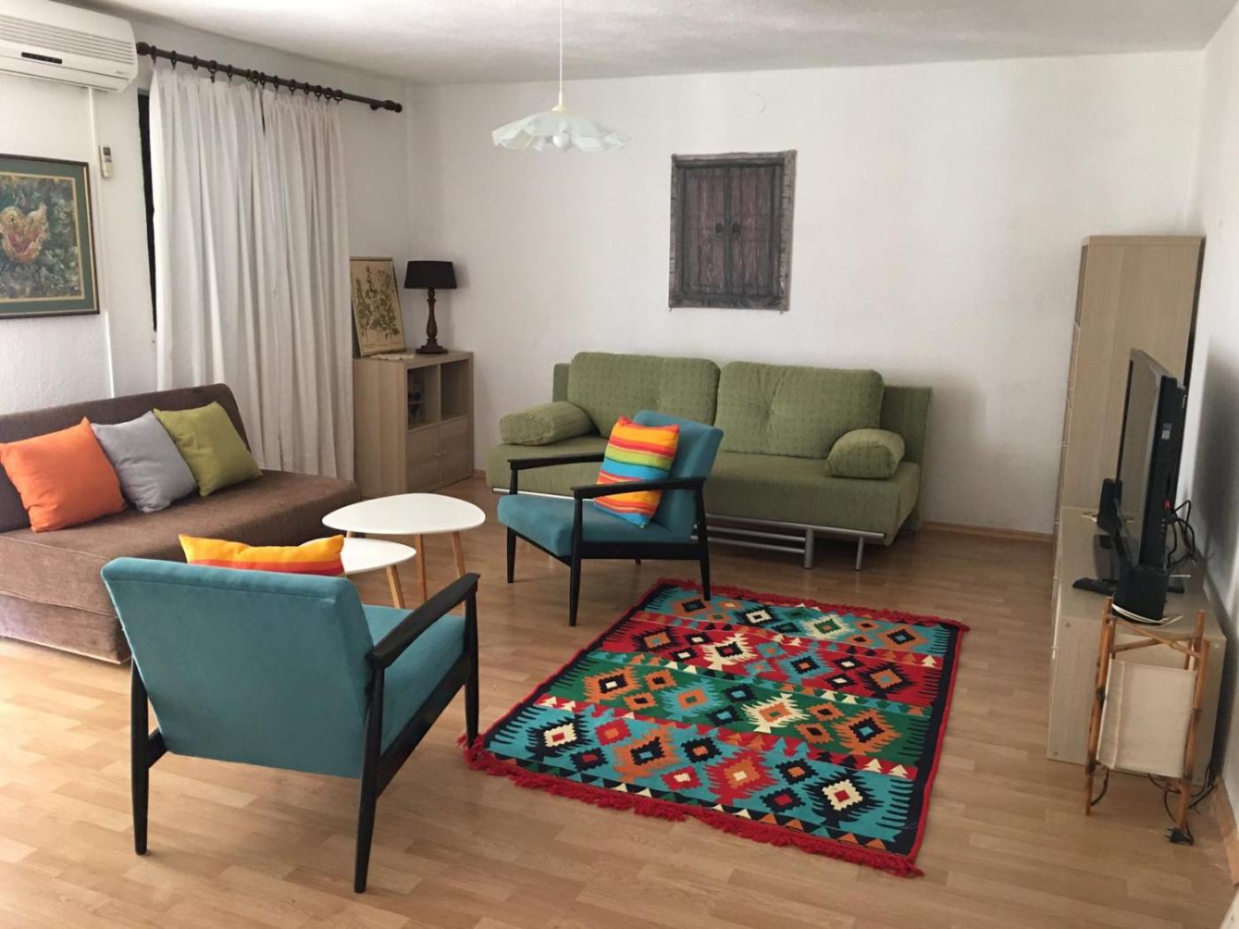 Two-Bedroom Apartment. Boasting a private entrance, this air-conditioned apartment includes 1 living room, 2 separate bedrooms and 1 bathroom with a bath or a shower and a hairdryer. Guests will find a stovetop, a refrigerator, kitchenware and an oven in the well-equipped kitchen. The apartment also features a barbecue. The spacious apartment offers a washing machine, a seating area, a wardrobe as well as a terrace with garden views. The unit has 5 beds.