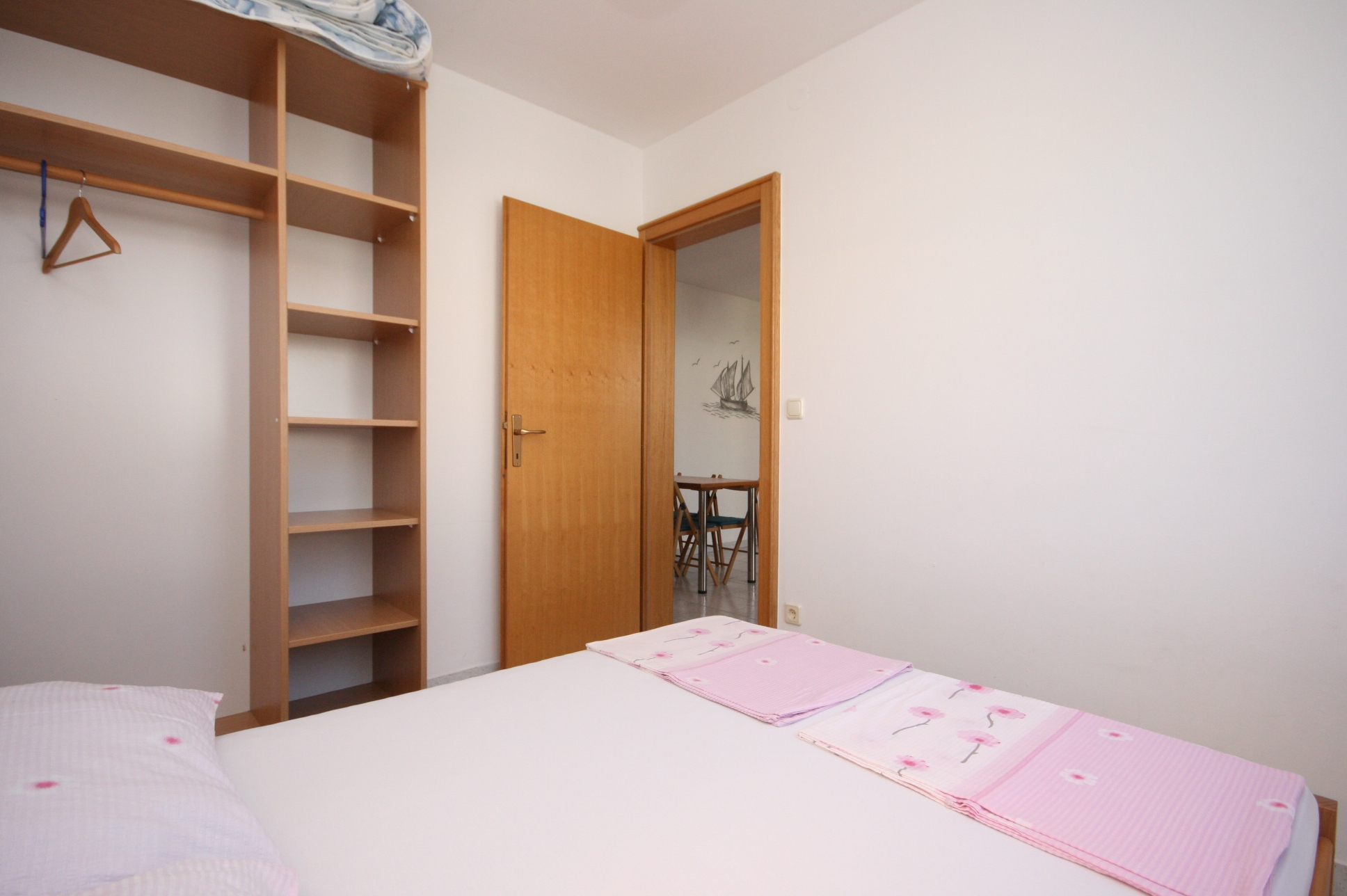 Apartment can accommodate 4 guests. Beds are situated in 1 sleeping rooms, but also in the living room, within 31m2. Guests can use a private terrace to enjoy the warm summer evenings. Food can be prepared using barbecue which is shared with other guests too. This accommodation unit welcomes pets at no additional costs. INCLUDED IN THE PRICE: tourist tax, final cleaning, air-conditioning, parking, internet, laundry, pets, additional bed, hairdryer, portable barbecue, sunshade. OBLIGATORY ADDITIONAL COSTS: short stay fee (surcharge depending on a number of booked nights: 30% - 1, 20% - 2, 10% - 3). The availability of additional services for your chosen dates of stay, as well as their prices (if none are listed) must be checked ahead of time. Any additional services not shown in the price calculation are payable directly to the property owner and only if used by the visitor. Discounts to the base price: free day 14=13 (for reservations of 14 or more days you get one free day for the stay until 31122026).