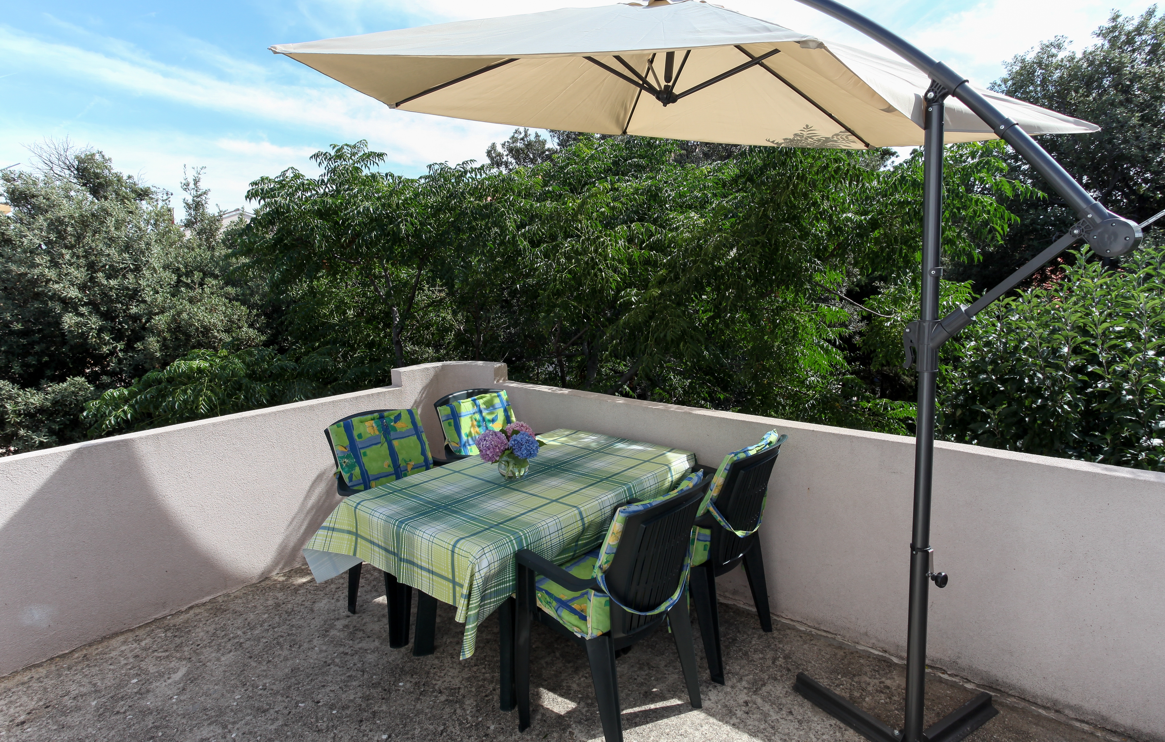 Apartment can accommodate 4 guests. Beds are situated in 2 sleeping rooms, within 42m2. Food can be prepared using barbecue which is shared with other guests too. This accommodation unit welcomes pets at an additional charge. Reserved accommodation unit has a shared terrace. INCLUDED IN THE PRICE: tourist tax, final cleaning, air-conditioning, parking, internet, laundry, baby cot, iron, ironing board. OPTIONAL ADDITIONAL COSTS: pets (€5.00 per night). The availability of additional services for your chosen dates of stay, as well as their prices (if none are listed) must be checked ahead of time. Any additional services not shown in the price calculation are payable directly to the property owner and only if used by the visitor.