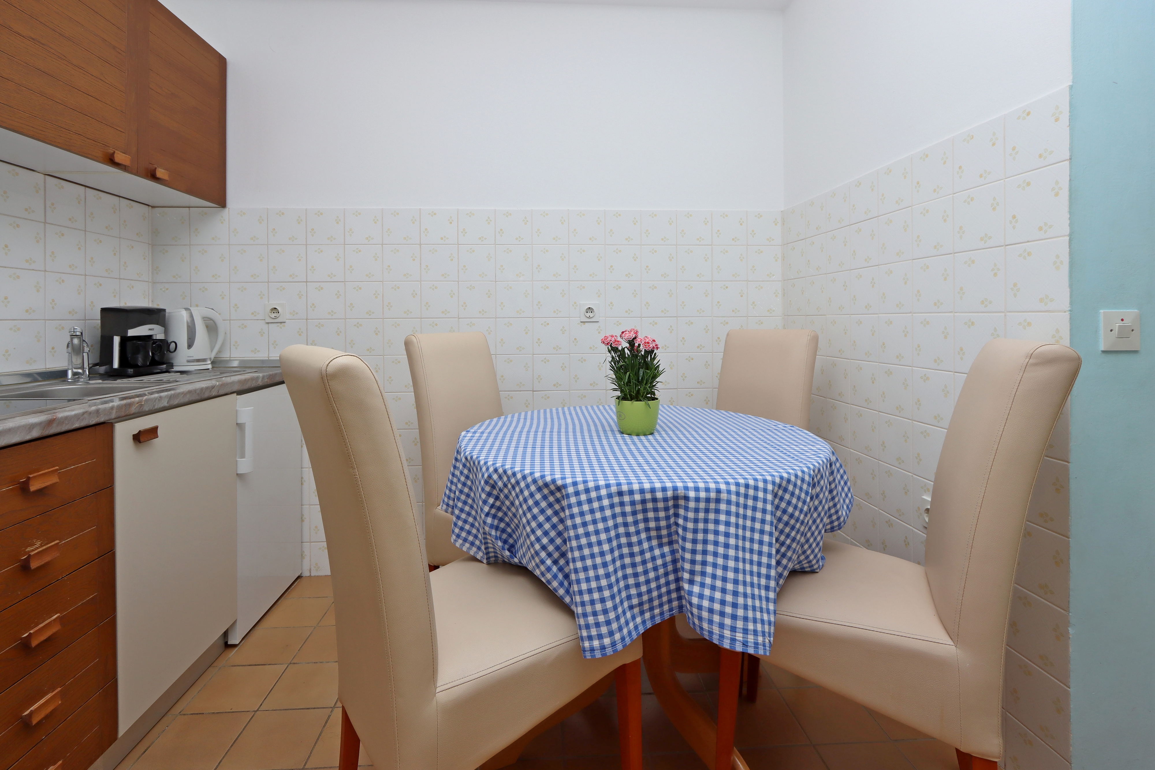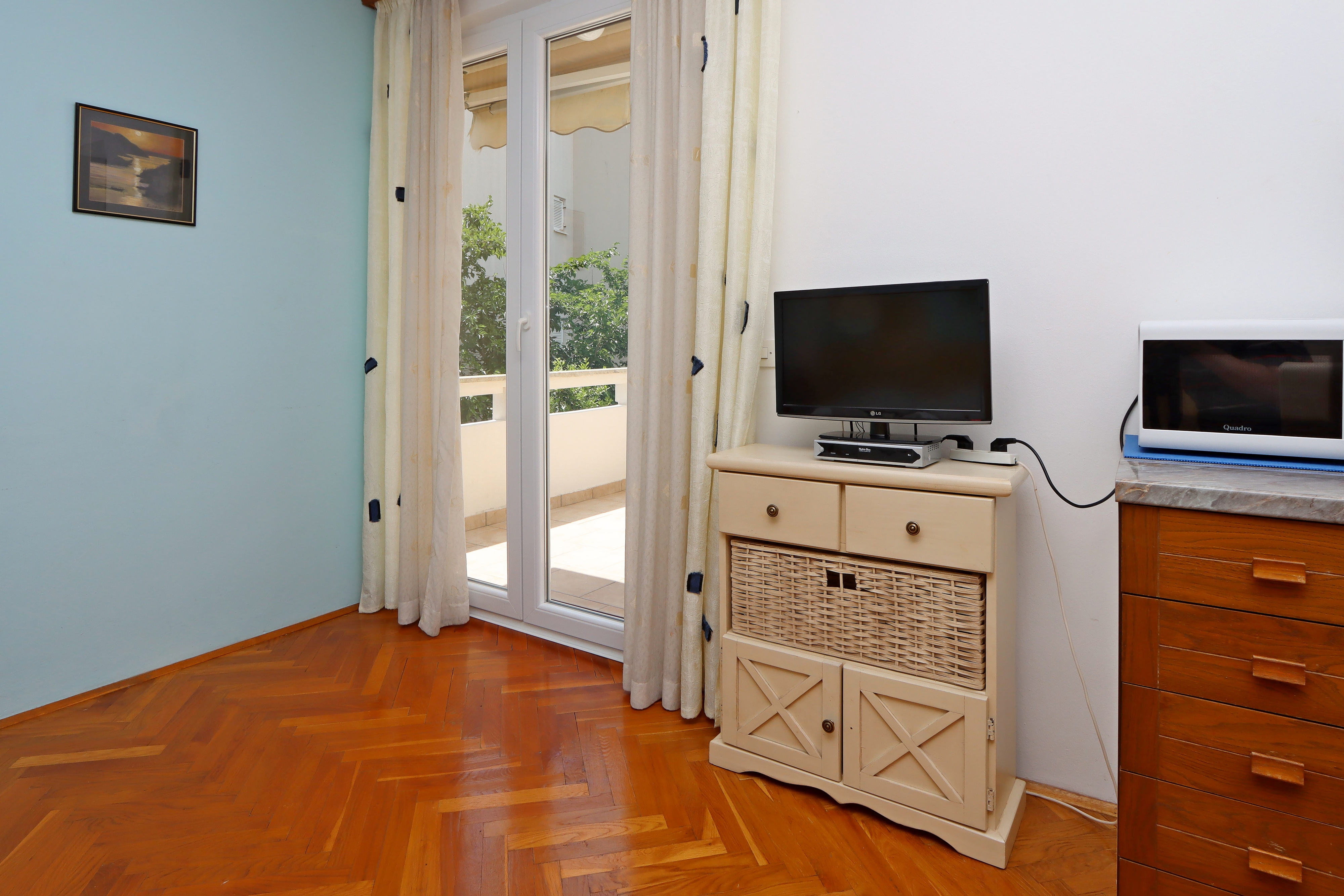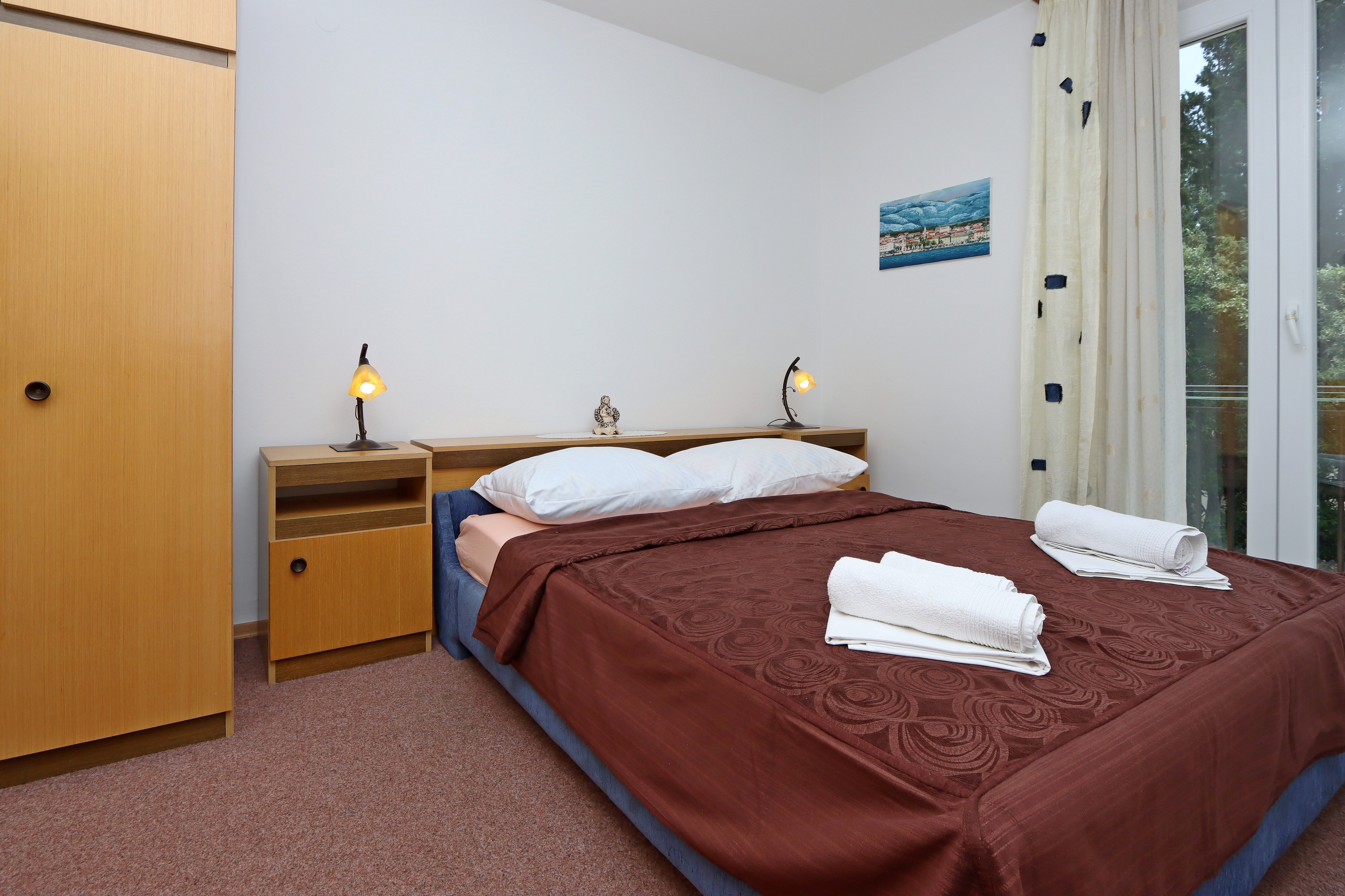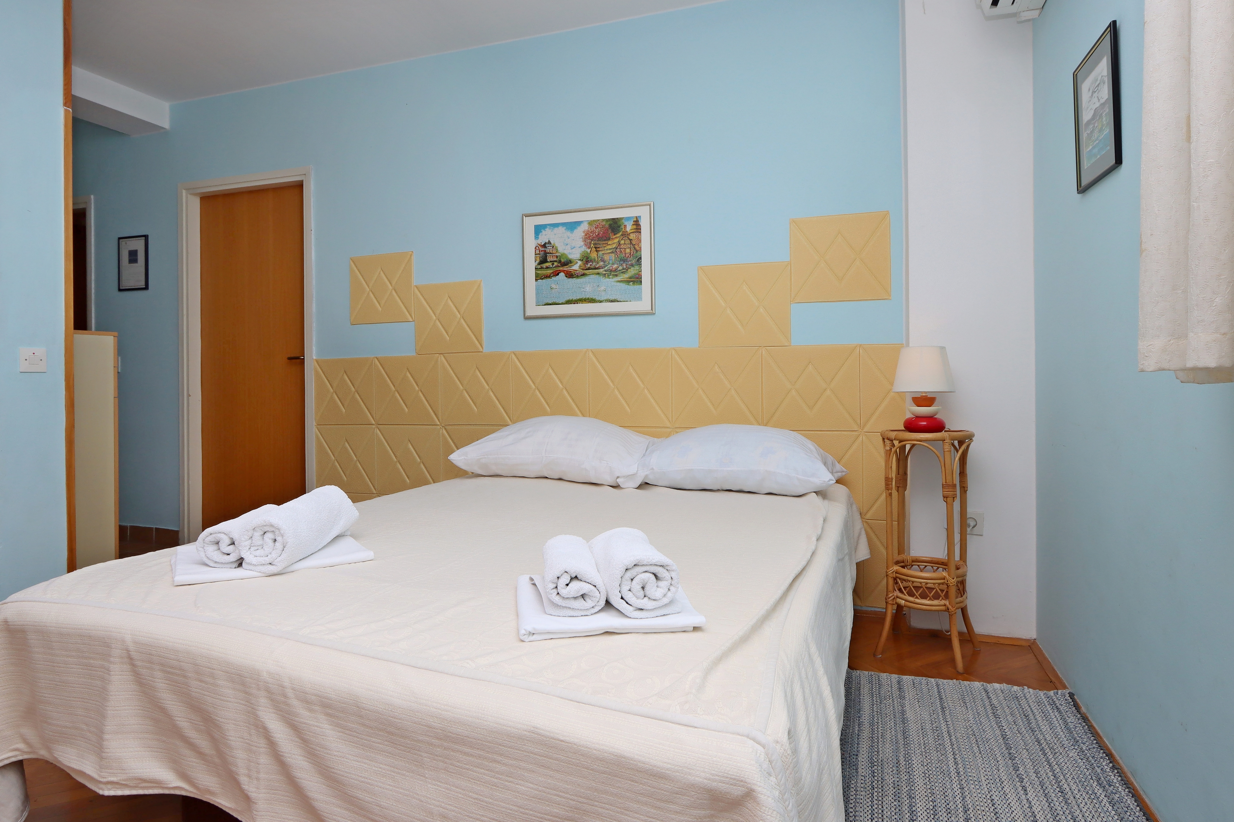 Apartment can accommodate 4 guests. Beds are situated in 1 sleeping rooms, but also in the living room, within 37m2. Guests can use a private terrace to enjoy the warm summer evenings. Food can be prepared using barbecue which is shared with other guests too. Shared pool is on disposal during stay. For the booked accommodation unit the deposit is paid directly to the owner upon check-in (deposit amount is displayed on the website) INCLUDED IN THE PRICE: tourist tax, final cleaning, air-conditioning, pool, parking, internet, baby cot, iron, ironing board. OBLIGATORY ADDITIONAL COSTS: deposit (€200.00 one-time payment), short stay fee (surcharge depending on a number of booked nights: 30% - 1, 20% - 2, 10% - 3). OPTIONAL ADDITIONAL COSTS: laundry (€10.00 washing). The availability of additional services for your chosen dates of stay, as well as their prices (if none are listed) must be checked ahead of time. Any additional services not shown in the price calculation are payable directly to the property owner and only if used by the visitor.