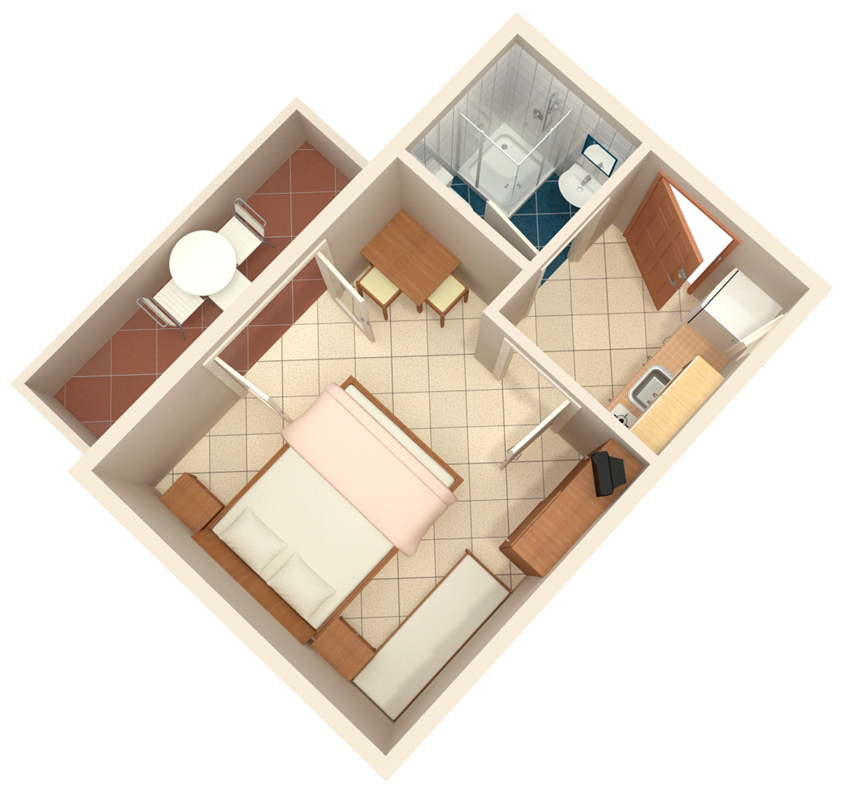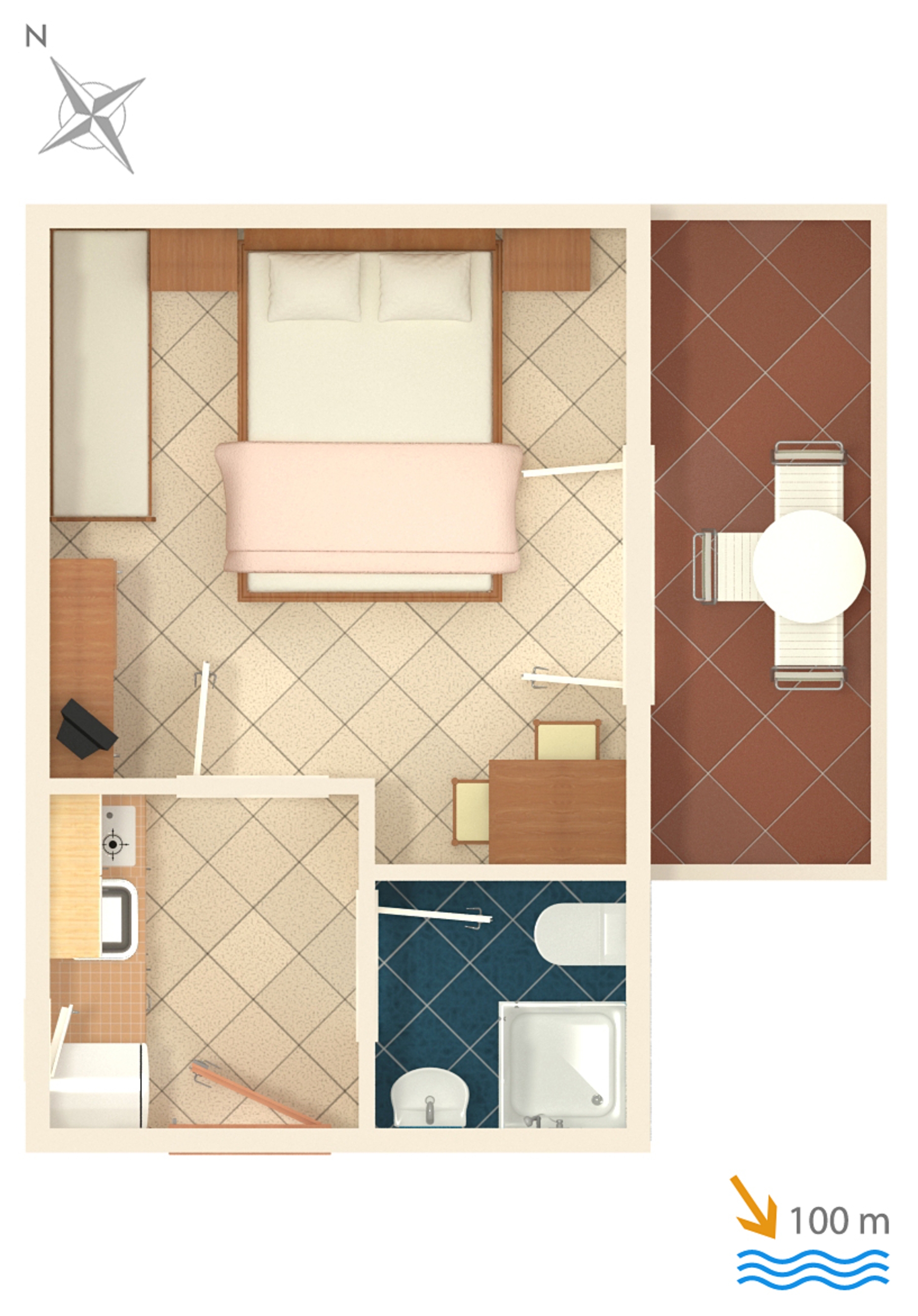 Apartment can accommodate 2 guests. Beds are situated in 1 sleeping rooms, within 20m2. Guests can use a private terrace to enjoy the warm summer evenings. Food can be prepared using barbecue which is shared with other guests too. INCLUDED IN THE PRICE: tourist tax, final cleaning, air-conditioning, parking, internet, baby cot, iron, ironing board, hairdryer. OBLIGATORY ADDITIONAL COSTS: short stay fee (surcharge depending on a number of booked nights: 30% - 1, 20% - 2, 10% - 3). OPTIONAL ADDITIONAL COSTS: laundry (€5.00 washing). The availability of additional services for your chosen dates of stay, as well as their prices (if none are listed) must be checked ahead of time. Any additional services not shown in the price calculation are payable directly to the property owner and only if used by the visitor.