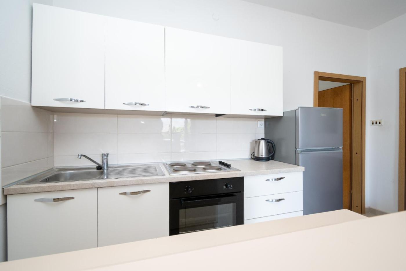 Two-Bedroom Apartment with Terrace and Sea View. Featuring a private entrance, this air-conditioned apartment consists of 2 bedrooms and 1 bathroom with a shower. Guests can make meals in the kitchen that is equipped with a stovetop, a refrigerator, kitchenware and an oven. Boasting a terrace with sea views, this apartment also provides a seating area and a TV. The unit offers 2 beds.