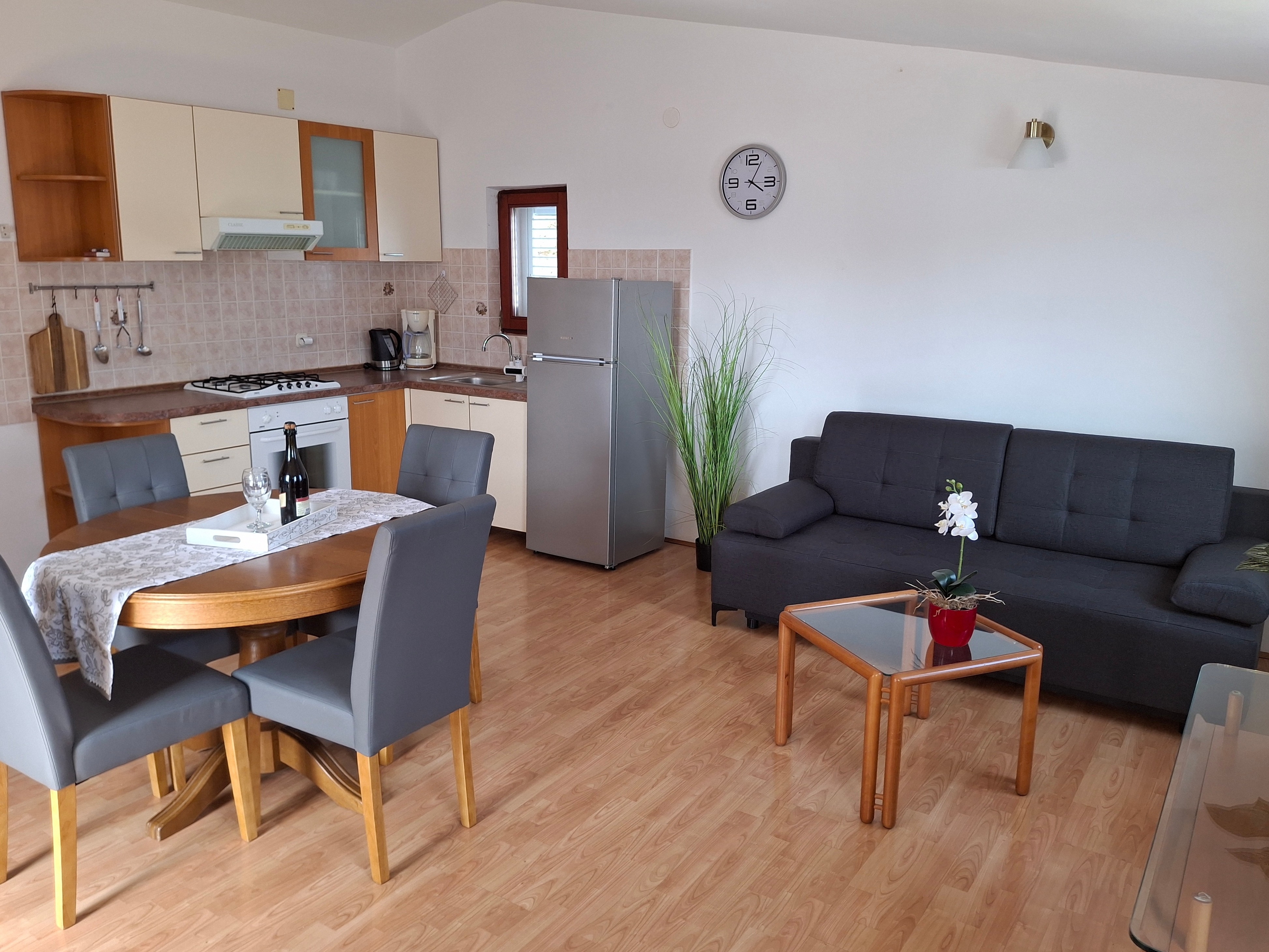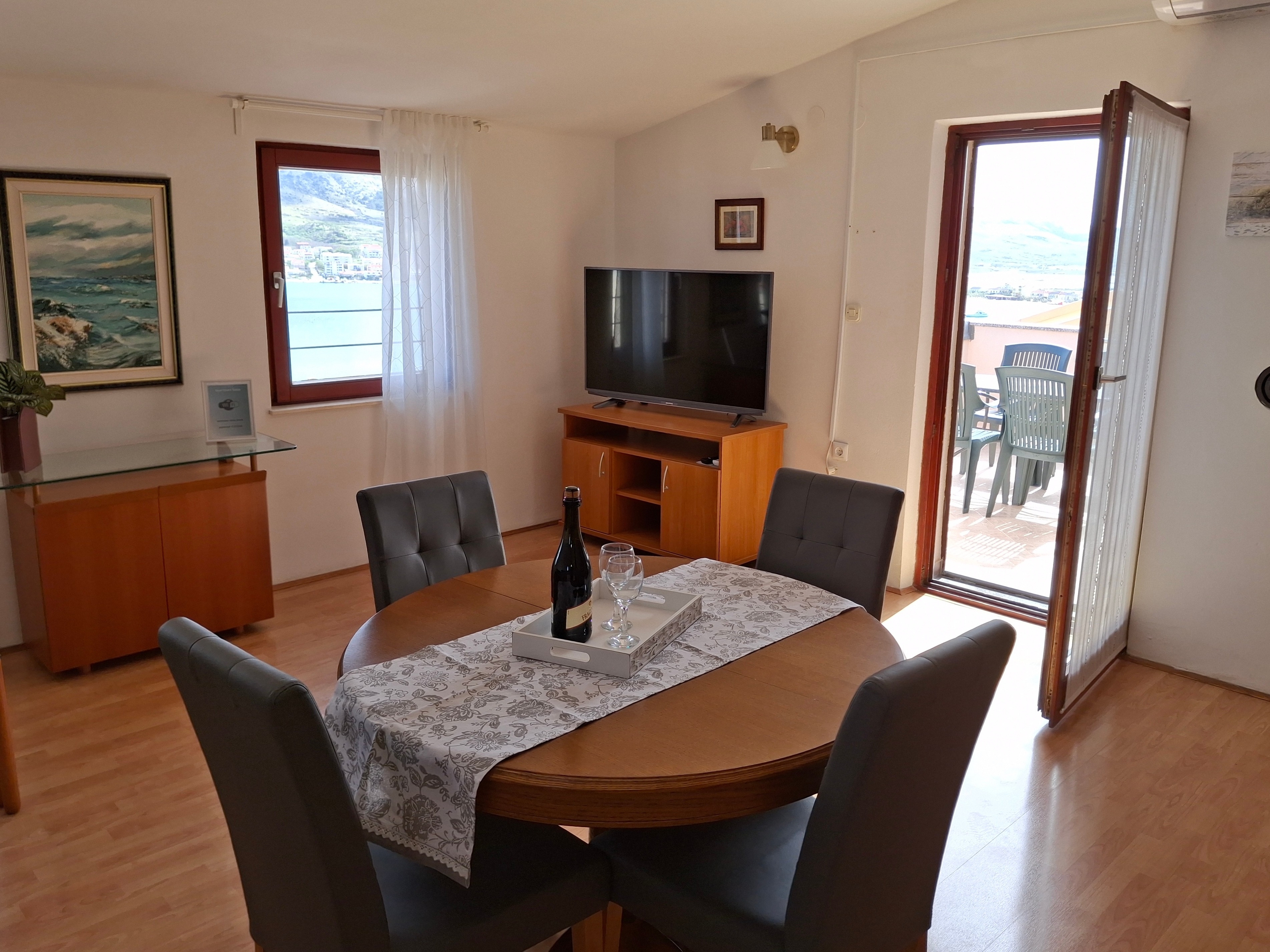 Apartment can accommodate 4 guests. Beds are situated in 2 sleeping rooms, within 49m2. Guests can use a private terrace to enjoy the warm summer evenings. The apartment offers the sea view. Food can be prepared using barbecue which is shared with other guests too. INCLUDED IN THE PRICE: tourist tax, final cleaning, air-conditioning, parking, internet, hairdryer. The availability of additional services for your chosen dates of stay, as well as their prices (if none are listed) must be checked ahead of time. Any additional services not shown in the price calculation are payable directly to the property owner and only if used by the visitor. Discounts to the base price: free day 14=13 (for reservations of 14 or more days you get one free day for the stay until 31122026).
