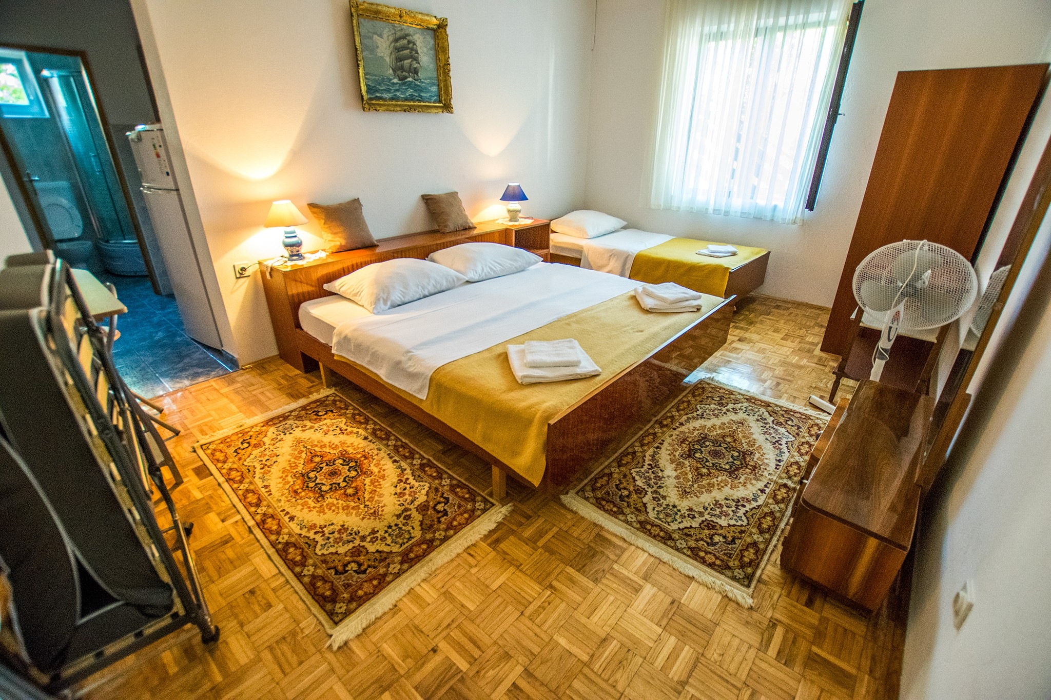 Studio flat can accommodate 3 guests. Beds are situated in 1 sleeping rooms, within 19m2. Food can be prepared using barbecue which is shared with other guests too. Reserved accommodation unit has a shared terrace. INCLUDED IN THE PRICE: tourist tax, final cleaning, air-conditioning, parking, internet. The availability of additional services for your chosen dates of stay, as well as their prices (if none are listed) must be checked ahead of time. Any additional services not shown in the price calculation are payable directly to the property owner and only if used by the visitor.