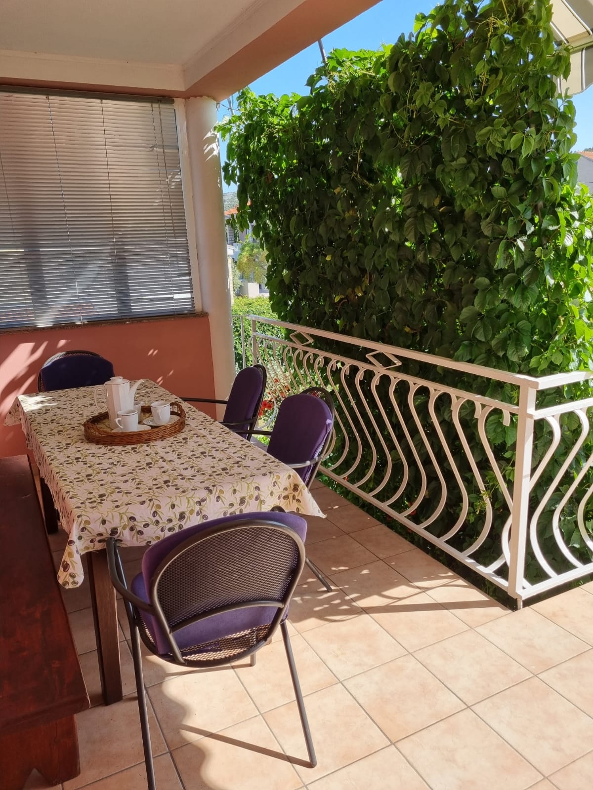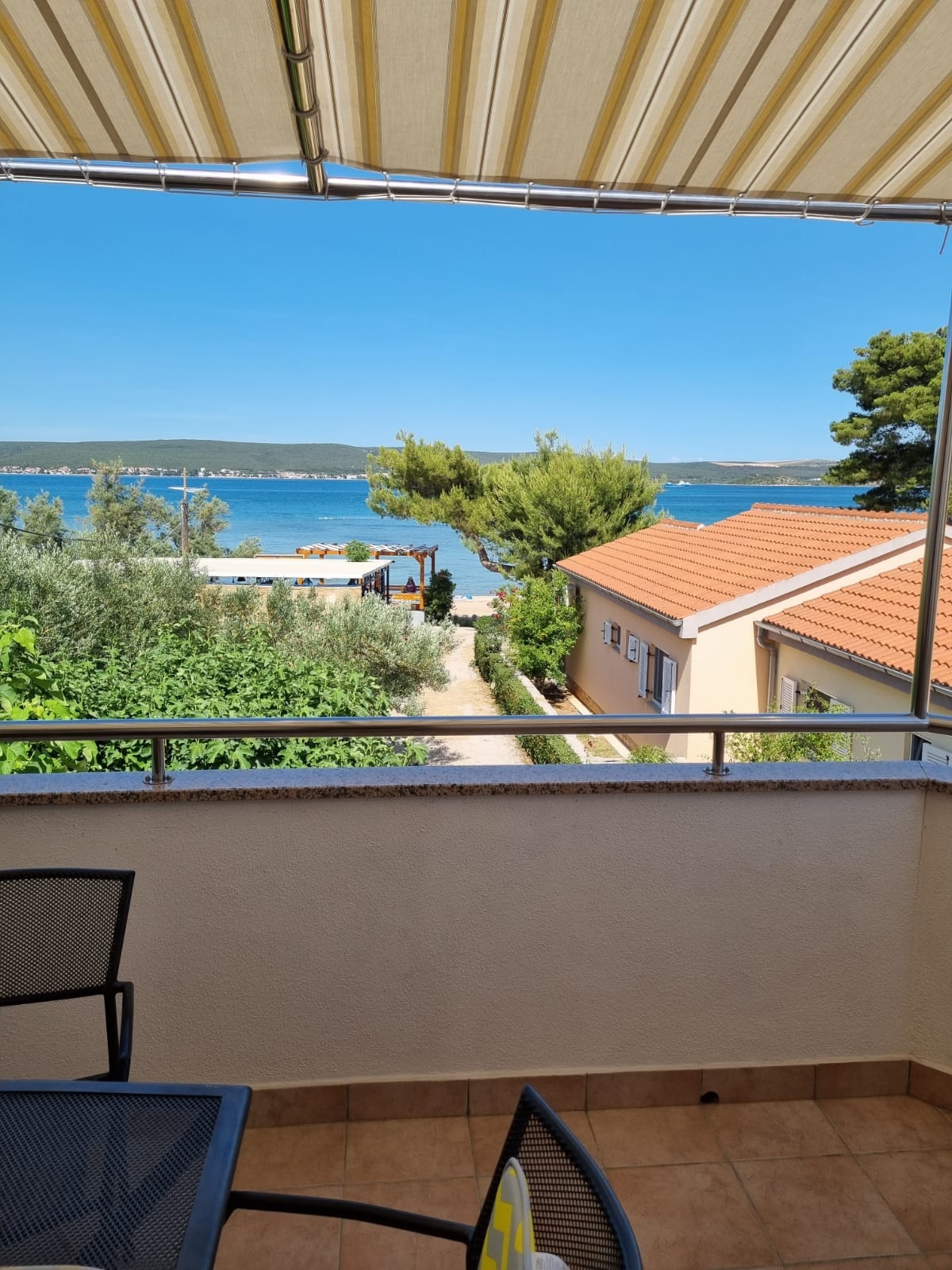 Apartment can accommodate 4 guests. Beds are situated in 2 sleeping rooms, within 50m2. Guests can use a private terrace to enjoy the warm summer evenings. The apartment offers the sea view. Food can be prepared using barbecue which is shared with other guests too. Other guests or hosts pass through the terrace of the booked accommodation unit. INCLUDED IN THE PRICE: tourist tax, final cleaning, air-conditioning, parking, internet, iron, ironing board, hairdryer, portable barbecue, sunchairs. OBLIGATORY ADDITIONAL COSTS: short stay fee (surcharge depending on a number of booked nights: 30% - 1, 20% - 2, 10% - 3). OPTIONAL ADDITIONAL COSTS: laundry (€5.00 washing). The availability of additional services for your chosen dates of stay, as well as their prices (if none are listed) must be checked ahead of time. Any additional services not shown in the price calculation are payable directly to the property owner and only if used by the visitor. Discounts to the base price: free day 21=19 (for reservations of 21 or more days you get 2 free days for the stay until 31122026).