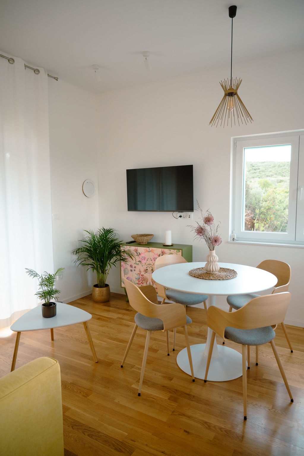 House can accommodate 4 guests. Beds are situated in 1 sleeping rooms, but also in the living room, within 27m2. Guests can use a private terrace to enjoy the warm summer evenings. The house offers the sea view. For full enjoyment and relaxation there is a private barbecue for this accommodation guests only. This accommodation unit welcomes pets at an additional charge. INCLUDED IN THE PRICE: tourist tax, final cleaning, air-conditioning, parking, internet, boat mooring, baby cot, iron, ironing board, hairdryer, sunchairs. OPTIONAL ADDITIONAL COSTS: pets (€10.00 per night). The availability of additional services for your chosen dates of stay, as well as their prices (if none are listed) must be checked ahead of time. Any additional services not shown in the price calculation are payable directly to the property owner and only if used by the visitor. Discounts to the base price: free day 14=13 (for reservations of 14 or more days you get one free day for the stay until 31122026).