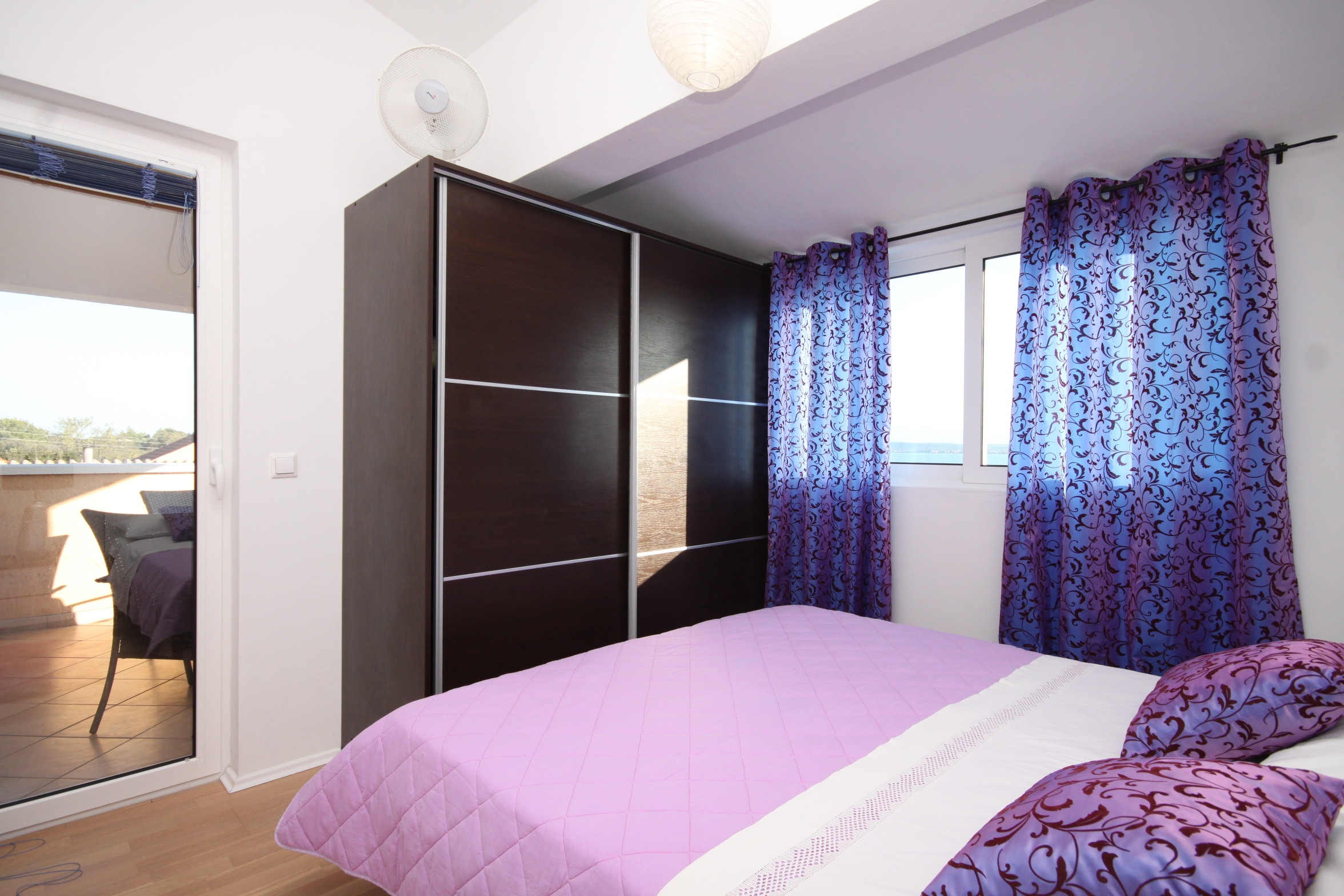 Apartment can accommodate 4 guests. Beds are situated in 1 sleeping rooms, but also in the living room, within 39m2. Guests can use a private terrace to enjoy the warm summer evenings. The apartment offers the sea view. Food can be prepared using barbecue which is shared with other guests too. This accommodation unit welcomes pets at an additional charge. INCLUDED IN THE PRICE: tourist tax, final cleaning, air-conditioning, parking, internet, baby cot, iron, ironing board, hairdryer. OBLIGATORY ADDITIONAL COSTS: short stay fee (surcharge depending on a number of booked nights: 30% - 1, 20% - 2, 10% - 3). OPTIONAL ADDITIONAL COSTS: pets (€5.00 per night). The availability of additional services for your chosen dates of stay, as well as their prices (if none are listed) must be checked ahead of time. Any additional services not shown in the price calculation are payable directly to the property owner and only if used by the visitor. Discounts to the base price: free day 14=13 (for reservations of 14 or more days you get one free day for the stay until 31122026).