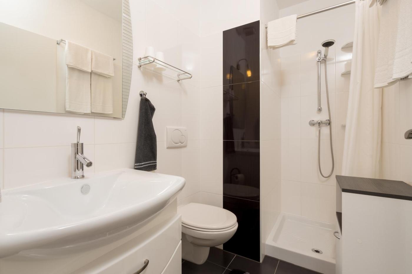 One-Bedroom Apartment. Boasting a private entrance, this air-conditioned apartment comes with 1 living room, 1 separate bedroom and 1 bathroom with a shower and a hairdryer. In the fully equipped kitchen, guests will find a stovetop, a refrigerator, kitchenware and a tea and coffee maker. Featuring a terrace with garden views, this apartment also features soundproof walls and a flat-screen TV with satellite channels. The unit has 2 beds.