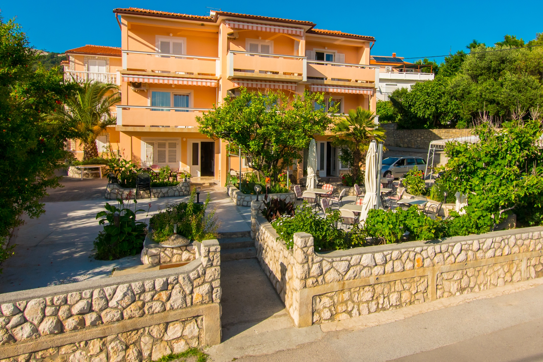 House 24825 in the town of Banjol, Rab - Kvarner contains accommodation units of type Apartment (3), Studio flat (1) and is 60 m away from the sea. The nearest beach to this accommodation is a pebble beach. The house is categorized as "Pensions". Other guests will most likely be present in the house during your holiday, as it contains several apartments. The owners will reside in the house during your stay. The house owner is under no obligation to accept additional persons and pets that were not stated in the reservation request and it is necessary to report them in advance.AMENITIES Infield (Well-kept), Courtyard (350m2, Sitting area), Parking lot (Number of parking spaces: 12, Distance from the house: In the courtyard), Barbecue: shared, Breakfast, WiFi Internet, Laundry service, Boat mooring (Distance from the house: 100 m, Type of boat berth: shore), Hairdryer, Iron, Ironing board, Baby cot LOCATION AND ACCESS Facility is situated near a local road Local road between the property and the beach Car access possible: Yes The facility is situated in relatively quiet surroundings DISTANCES Sea: 60 m Beach: 60 m Center: 3.5 km Urgent medical care: 3.5 km Pharmacy: 2.5 km ATMBank machine: 800 m Tourist info: 1.8 km Bus station: 3 km Gas station: 350 m