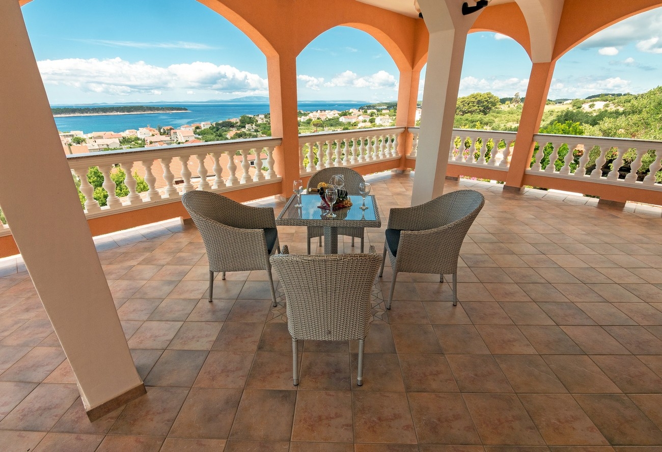 Apartment can accommodate 6 guests. Beds are situated in 2 sleeping rooms, but also in the living room, within 67m2. Guests can use a private terrace to enjoy the warm summer evenings. The apartment offers the sea view. Food can be prepared using barbecue which is shared with other guests too. Shared pool is on disposal during stay. INCLUDED IN THE PRICE: tourist tax, final cleaning, air-conditioning, pool, parking, internet, baby cot, iron, hairdryer, sunshade, sunchairs. OBLIGATORY ADDITIONAL COSTS: short stay fee (surcharge depending on a number of booked nights: 30% - 1, 20% - 2, 10% - 3). OPTIONAL ADDITIONAL COSTS: breakfast (€13.00, a 50% discount for children aged 4 to 12 years, Children up to age 4 free of charge), boat mooring (€5.00 per night), additional bed (€10.00 per night). The availability of additional services for your chosen dates of stay, as well as their prices (if none are listed) must be checked ahead of time. Any additional services not shown in the price calculation are payable directly to the property owner and only if used by the visitor.