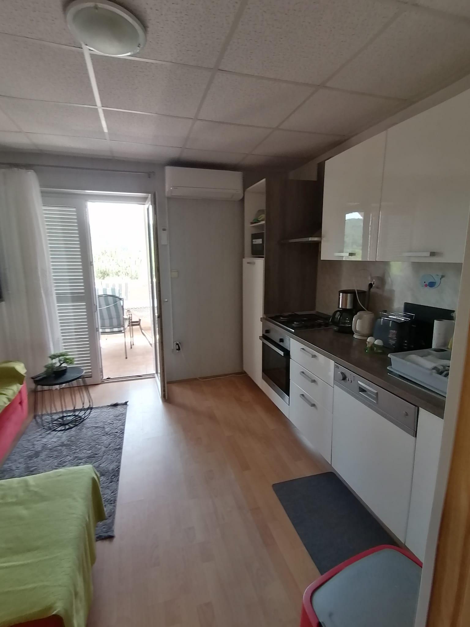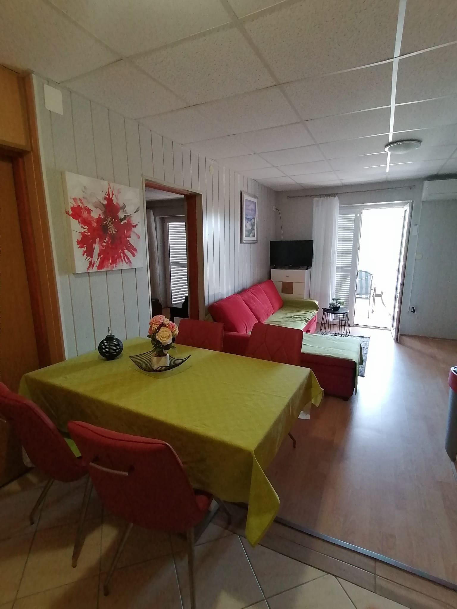 Apartment can accommodate 5 guests. Beds are situated in 2 sleeping rooms, but also in the living room, within 44m2. Guests can use a private terrace to enjoy the warm summer evenings. Food can be prepared using barbecue which is shared with other guests too. INCLUDED IN THE PRICE: tourist tax, final cleaning, air-conditioning, parking, internet, laundry, baby cot, iron, ironing board, hairdryer. OBLIGATORY ADDITIONAL COSTS: short stay fee (surcharge depending on a number of booked nights: 30% - 1, 20% - 2, 10% - 3). The availability of additional services for your chosen dates of stay, as well as their prices (if none are listed) must be checked ahead of time. Any additional services not shown in the price calculation are payable directly to the property owner and only if used by the visitor. Discounts to the base price: free day 21=19 (for reservations of 21 or more days you get 2 free days for the stay until 31122026).