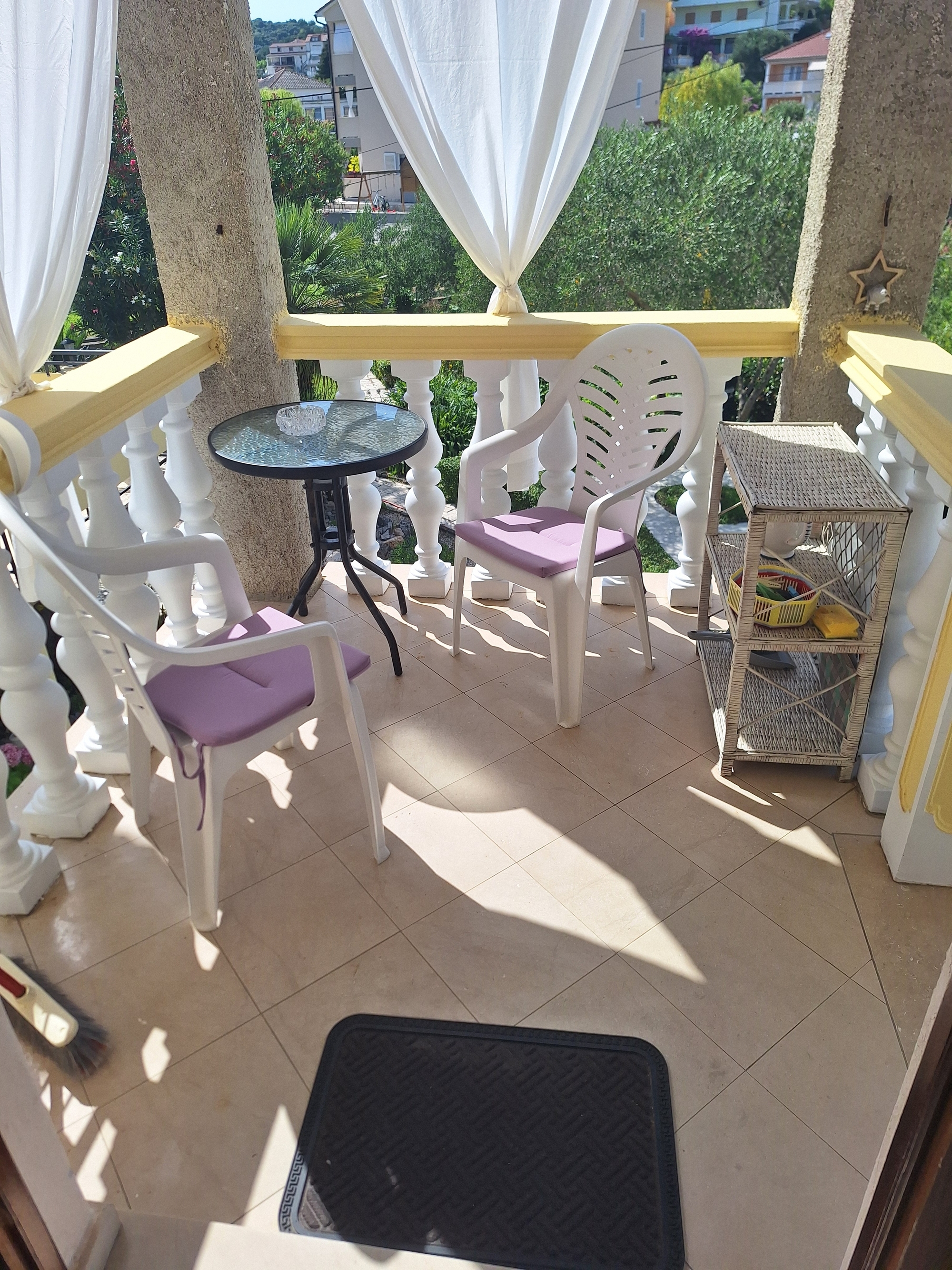 Apartment can accommodate 3 guests. Beds are situated in 2 sleeping rooms, within 50m2. Guests can use a private balcony to enjoy the warm summer evenings. Food can be prepared using barbecue which is shared with other guests too. Reserved accommodation unit has a shared terrace. INCLUDED IN THE PRICE: tourist tax, final cleaning, air-conditioning, parking, internet, iron, ironing board, hairdryer. OPTIONAL ADDITIONAL COSTS: boat mooring (€5.00 per night). The availability of additional services for your chosen dates of stay, as well as their prices (if none are listed) must be checked ahead of time. Any additional services not shown in the price calculation are payable directly to the property owner and only if used by the visitor.